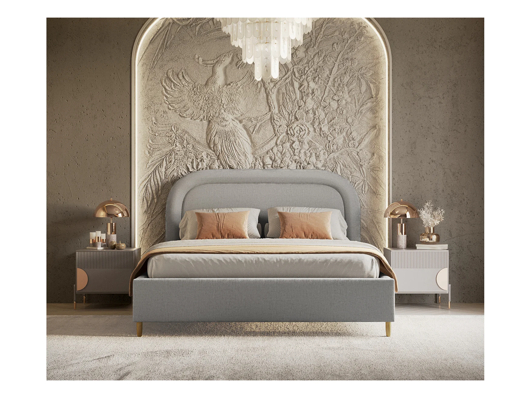 Polsterbett Mija - 120 x 200 cm - Chenille-Stoff - hellgrau