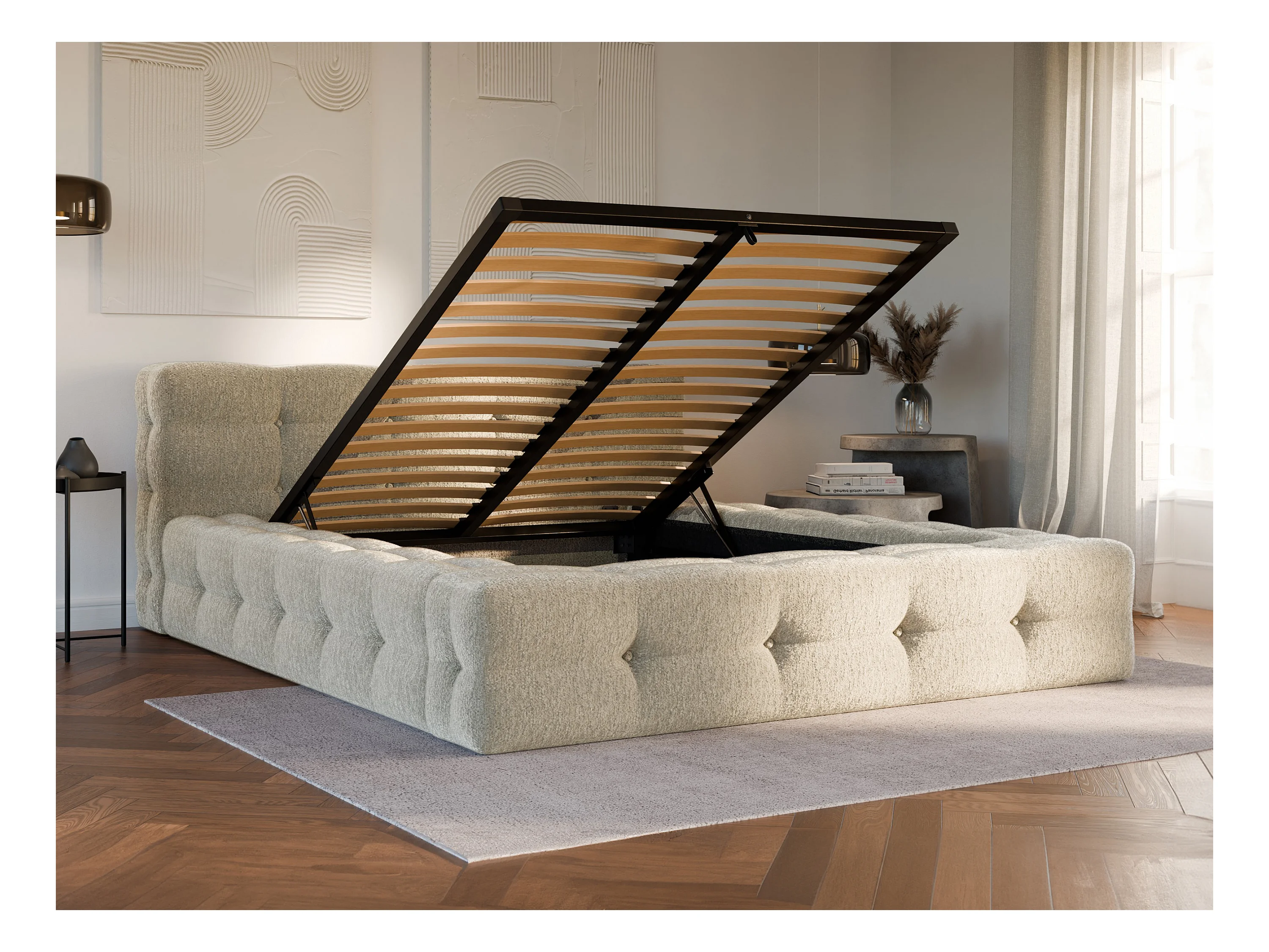 Polsterbett mit Bettkasten - 140 x 190 cm - Bouclé-Stoff - Beige - LERUCO von Pascal Morabito