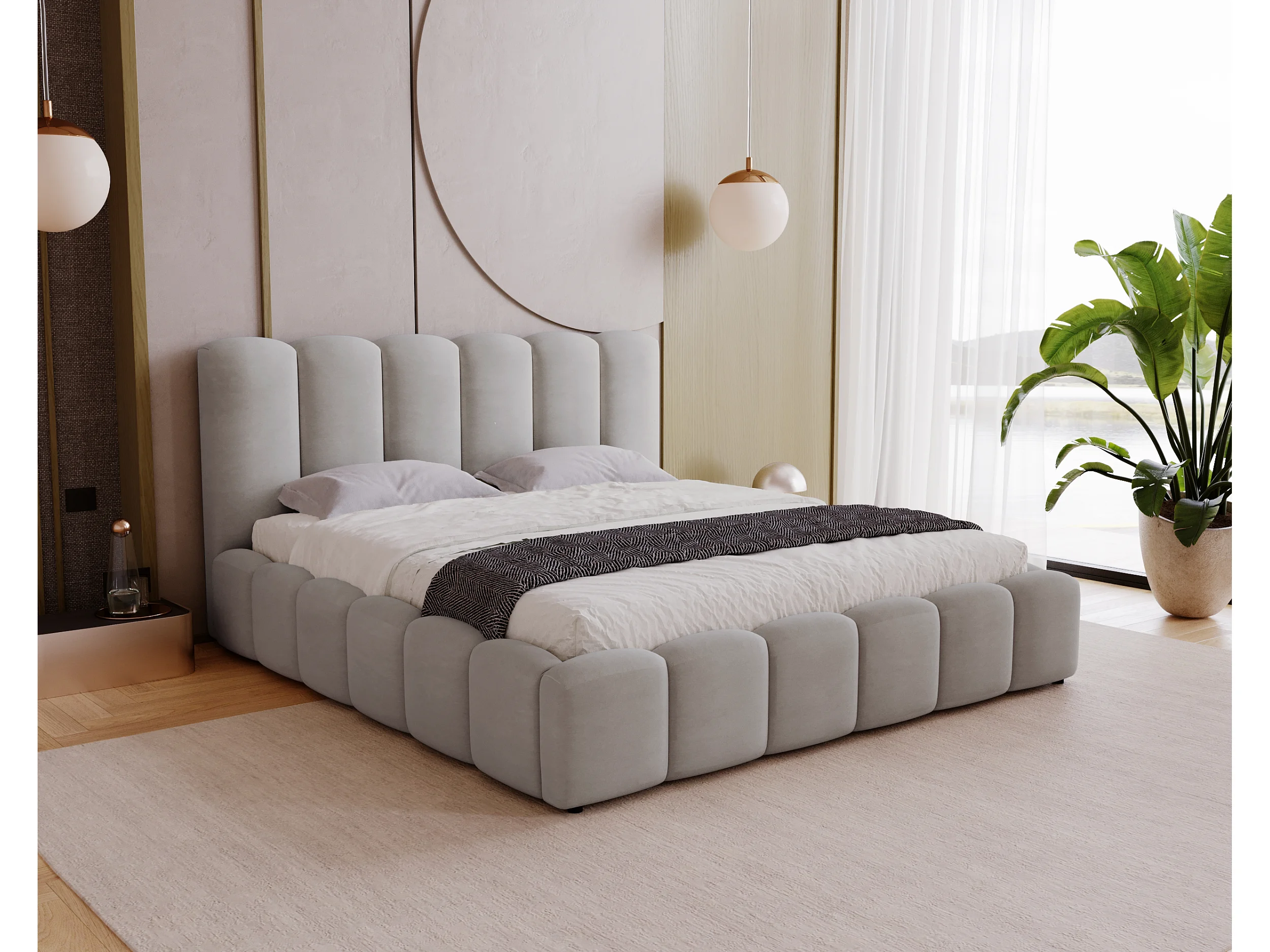 Polsterbett mit Bettkasten 140x200 Florent - Samtstoff, Metall-Lattenrost - Hellgrau (Magic Velvet 2218)