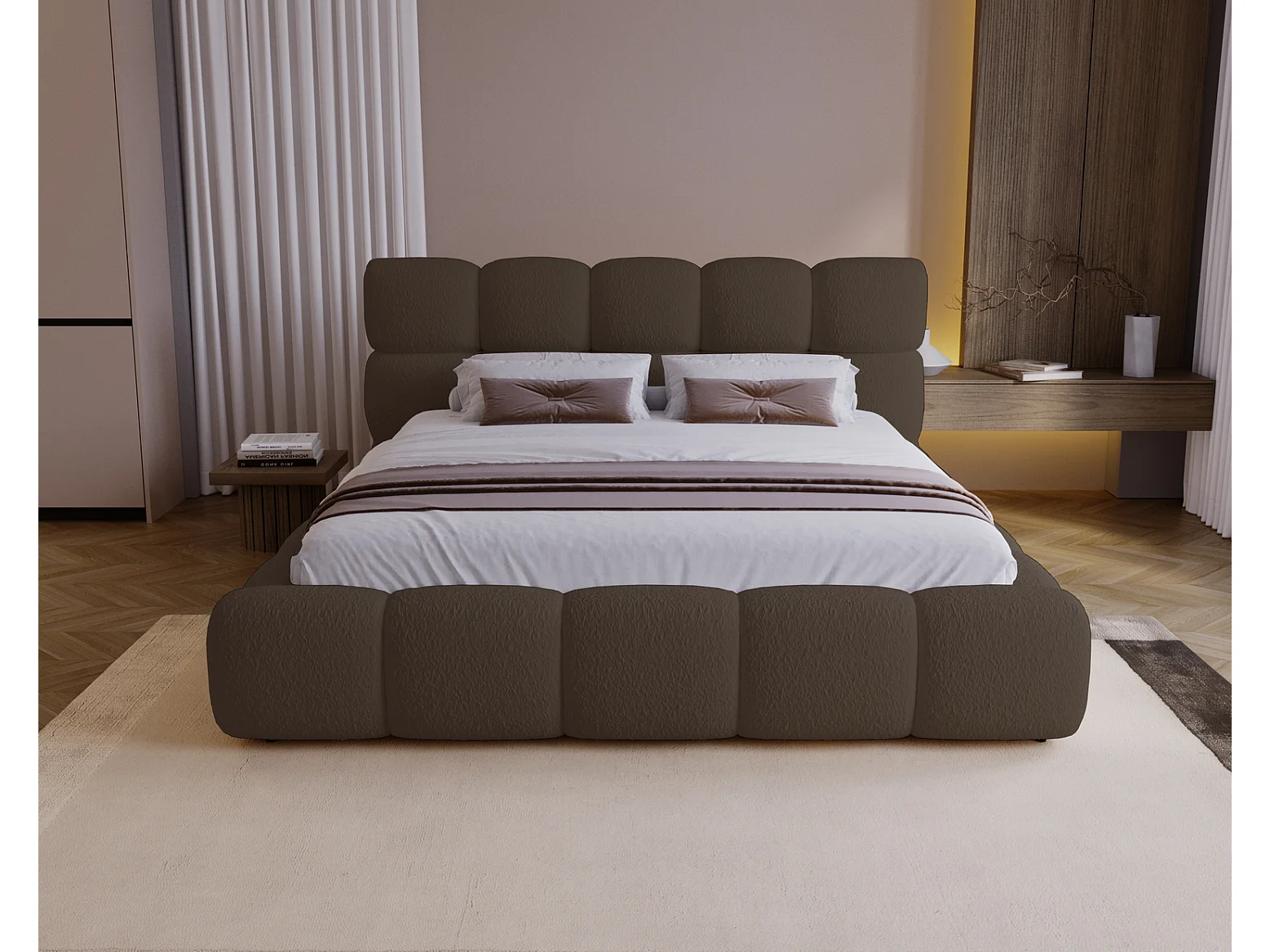 Polsterbett mit Bettkasten 200x200 Lucca - Stoff Bouclé, Lattenrost, Braun (Lambi 4)