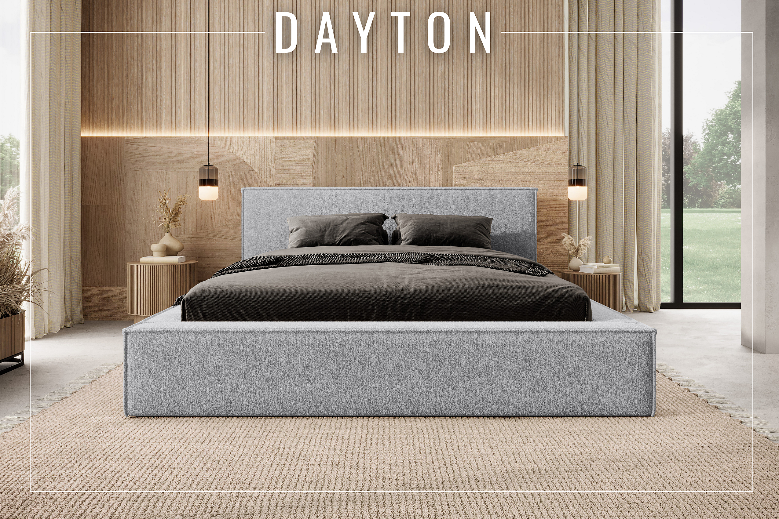 Bett - 200 x 260 - Bouclé - Silber - AKELA