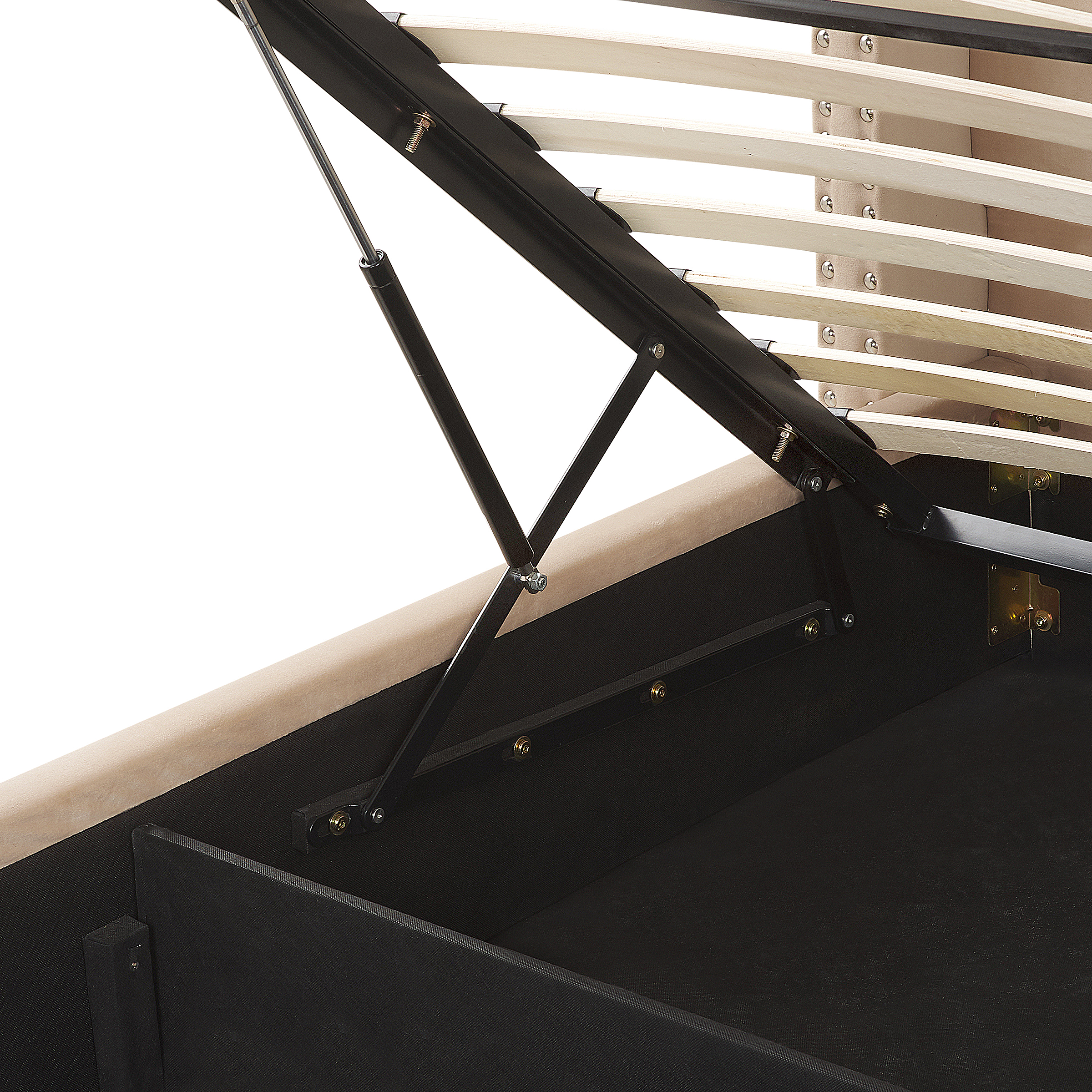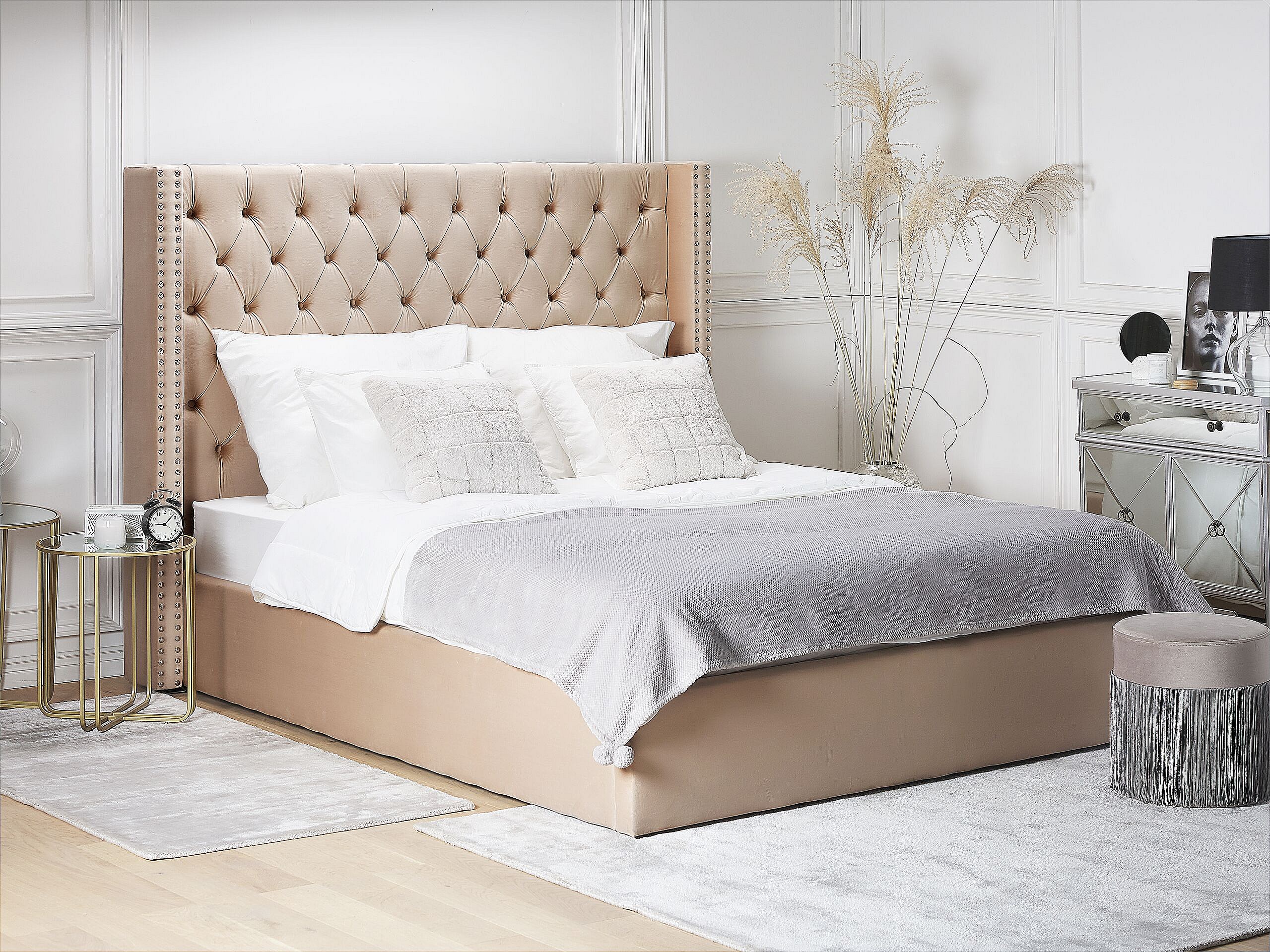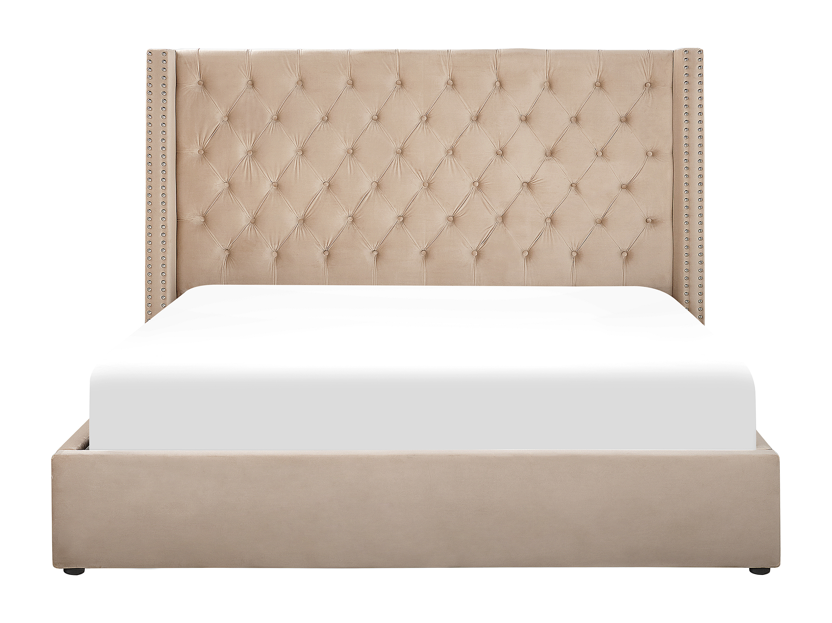 Bequemes Bett Samtstoff hohes Kopfteil in Beige 160 x 200 cm Bettkasten Lubbon