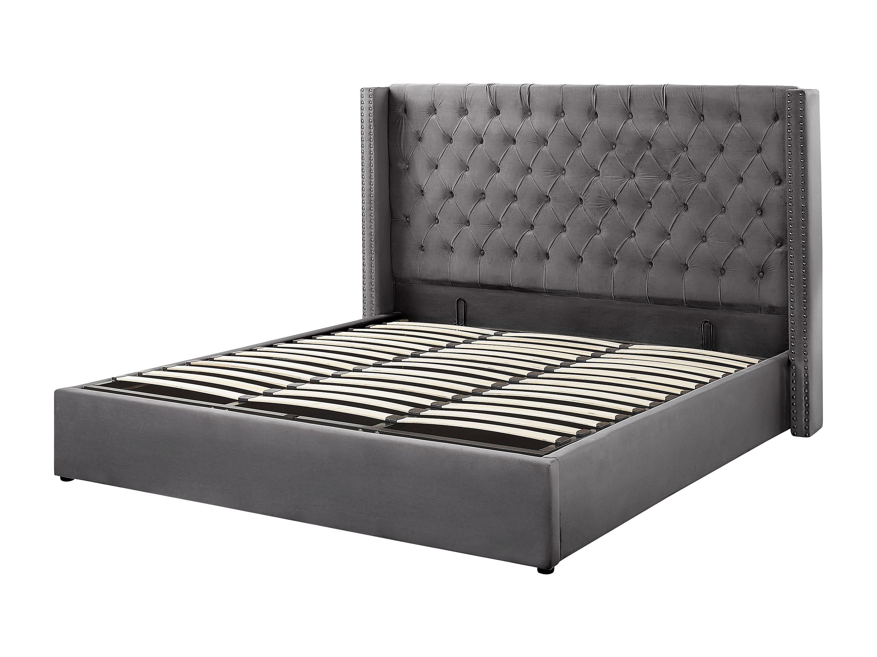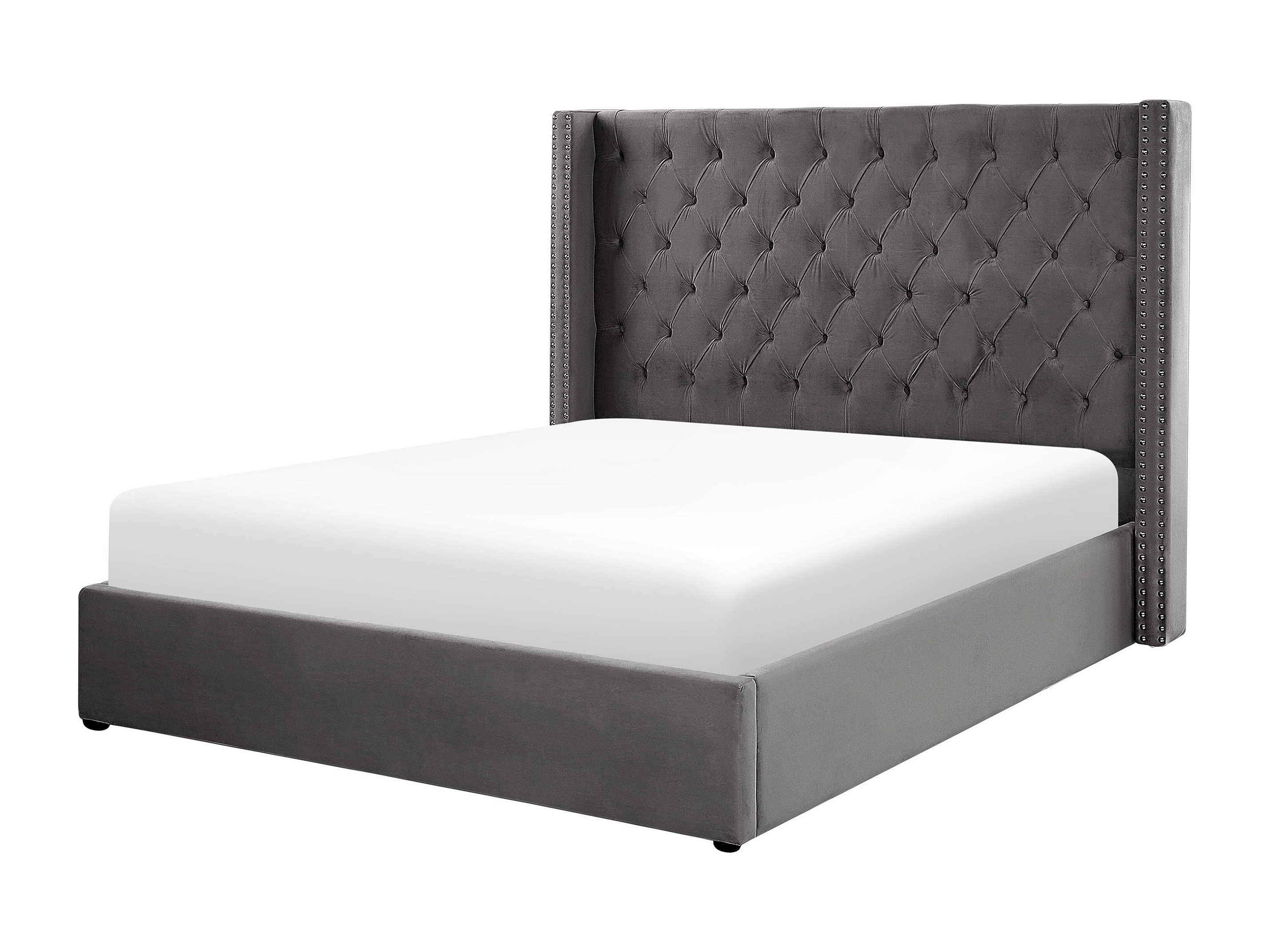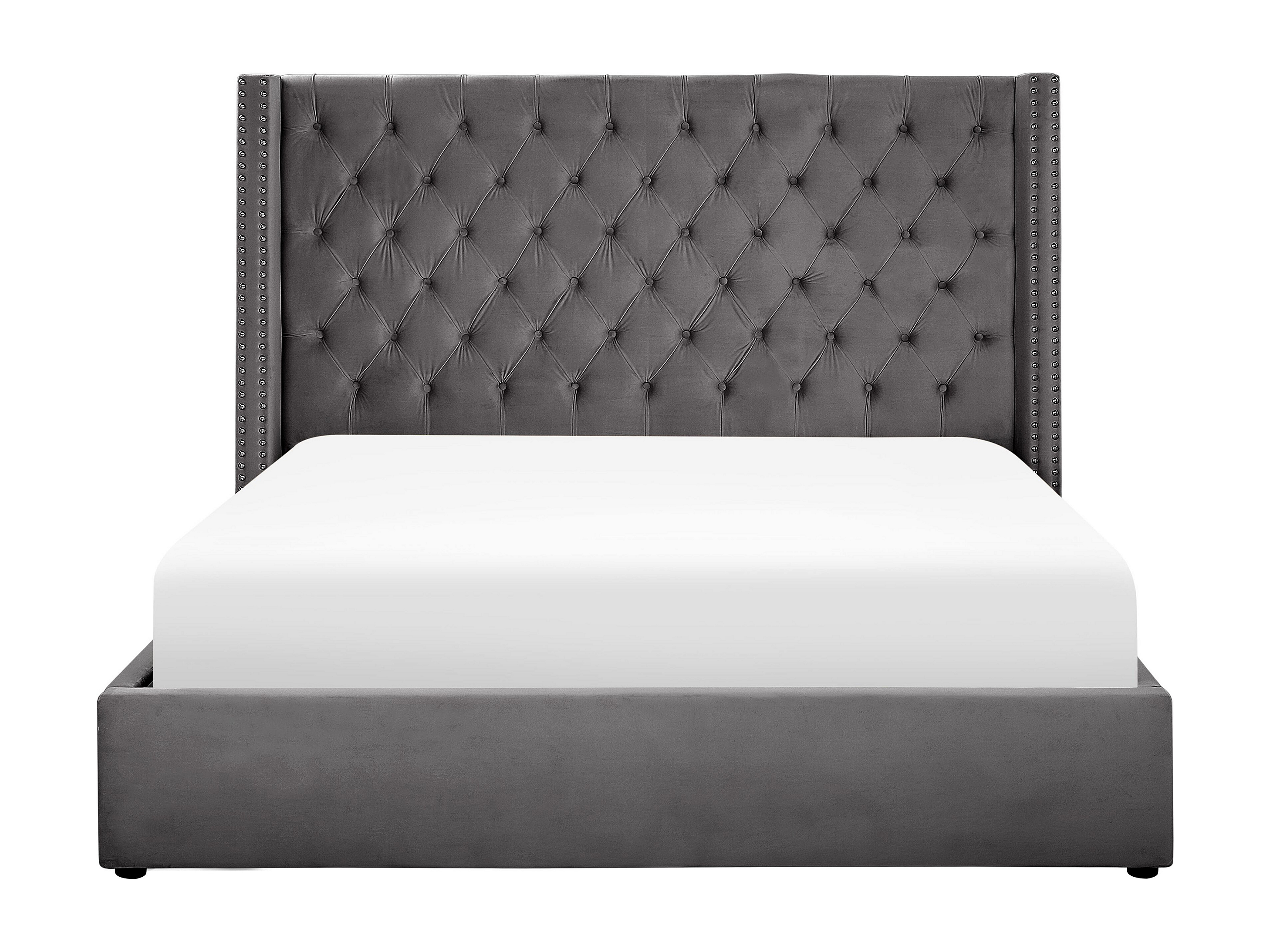 Bequemes Bett Bettkasten Samtstoff hohes Kopfteil in Grau 180 x 200 cm Lubbon