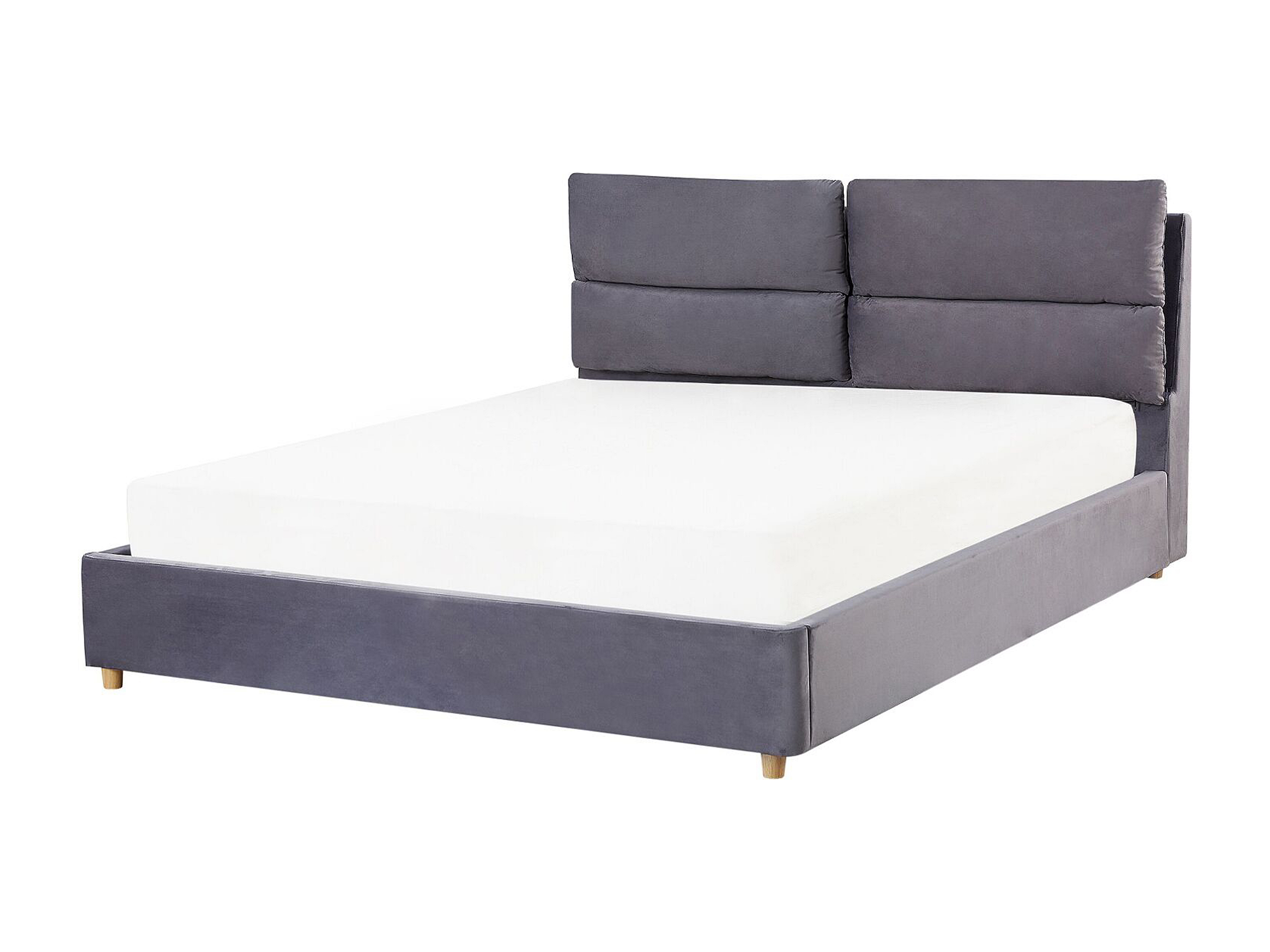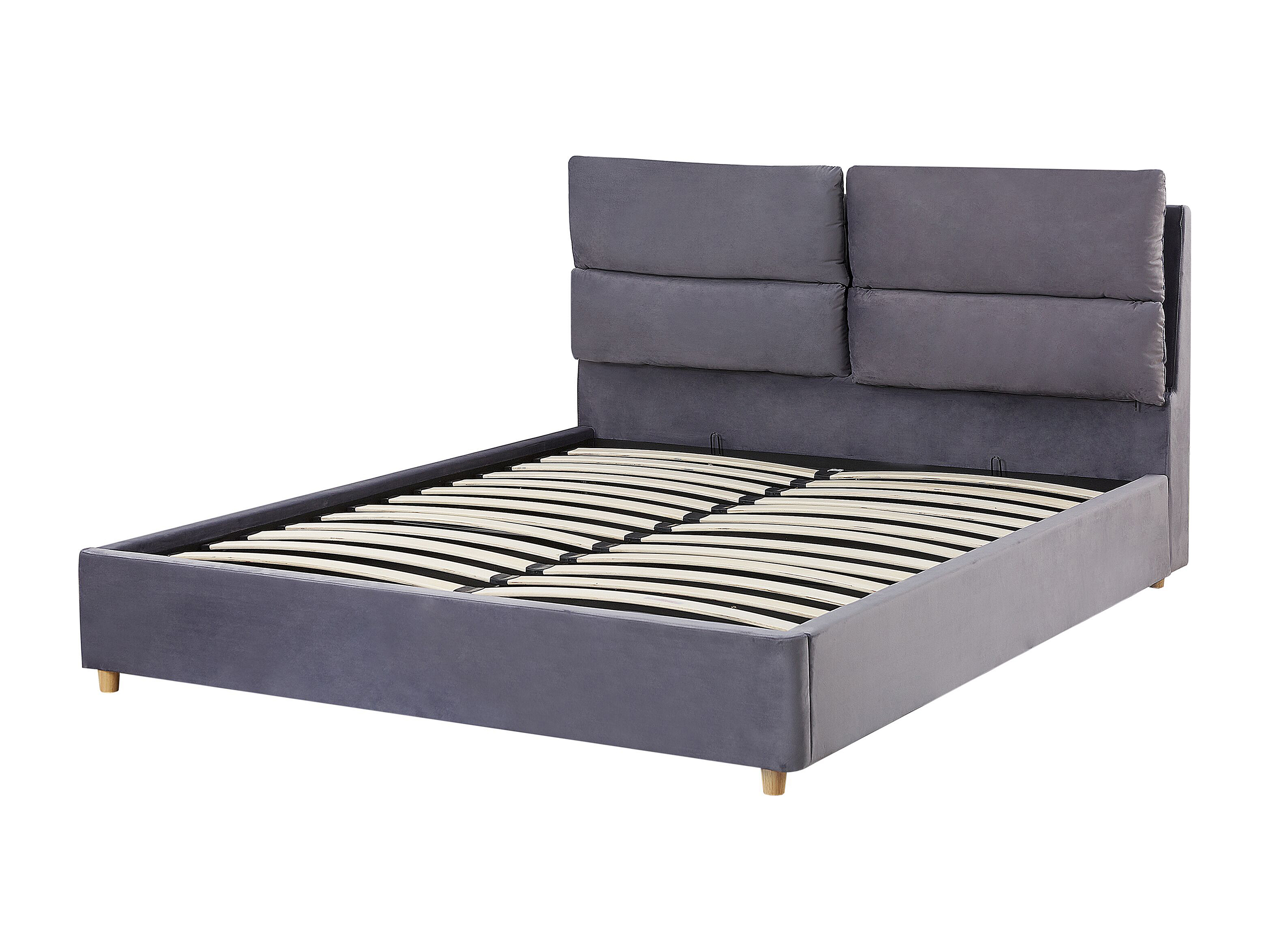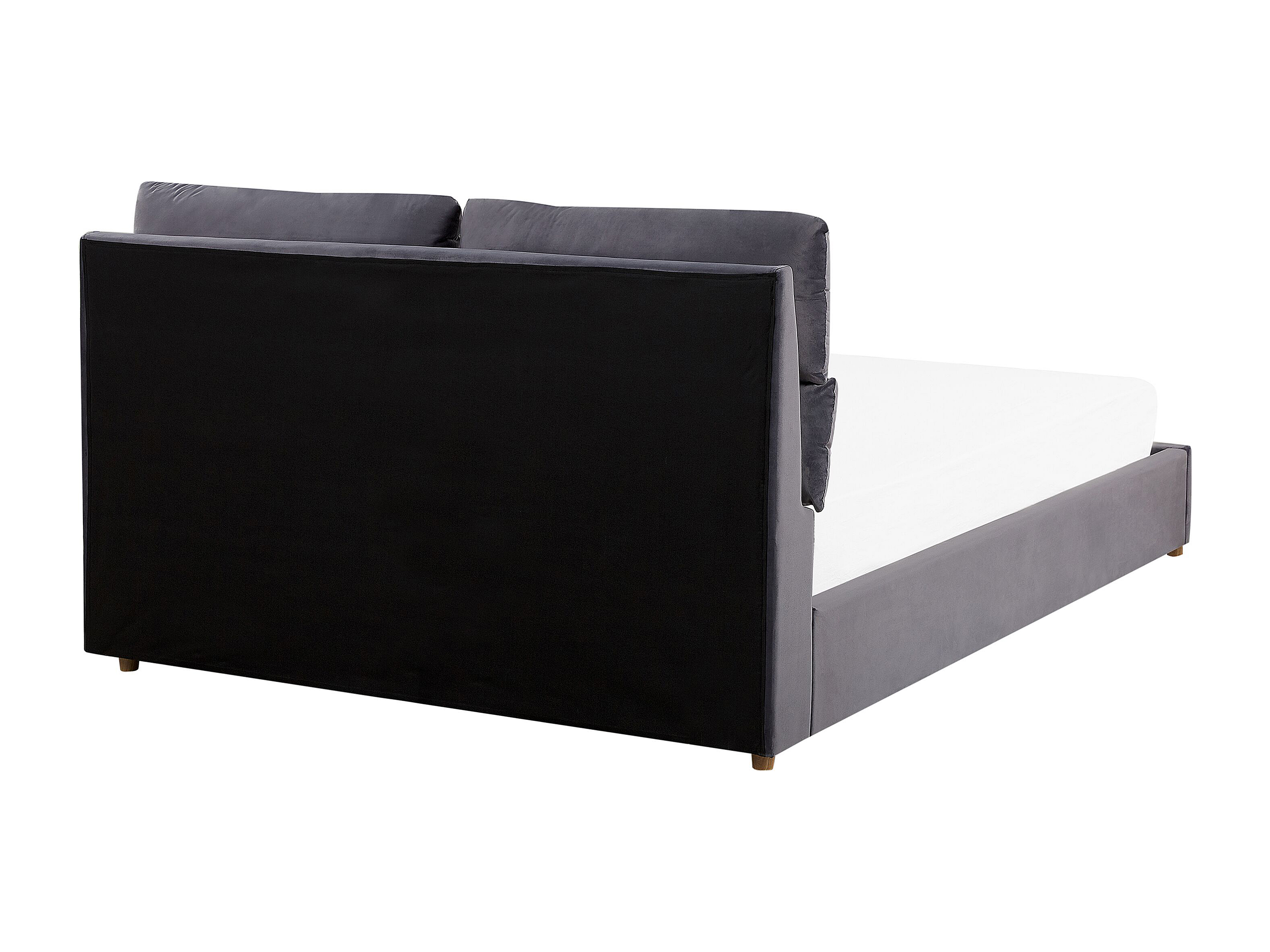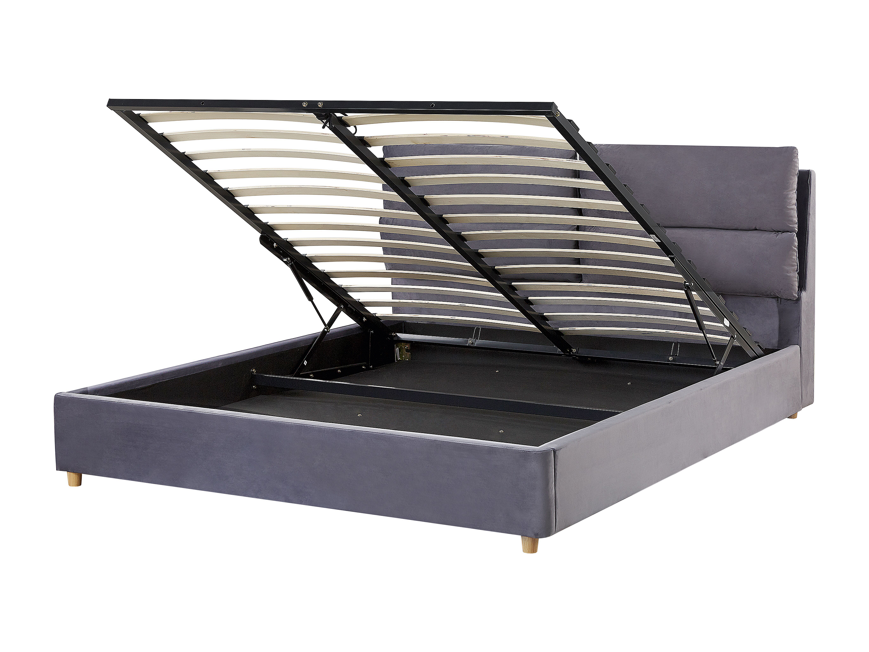 Schickes Doppelbett Grau Samtstoff Massivholz Bettkasten Lattenrost 160 x 200 cm