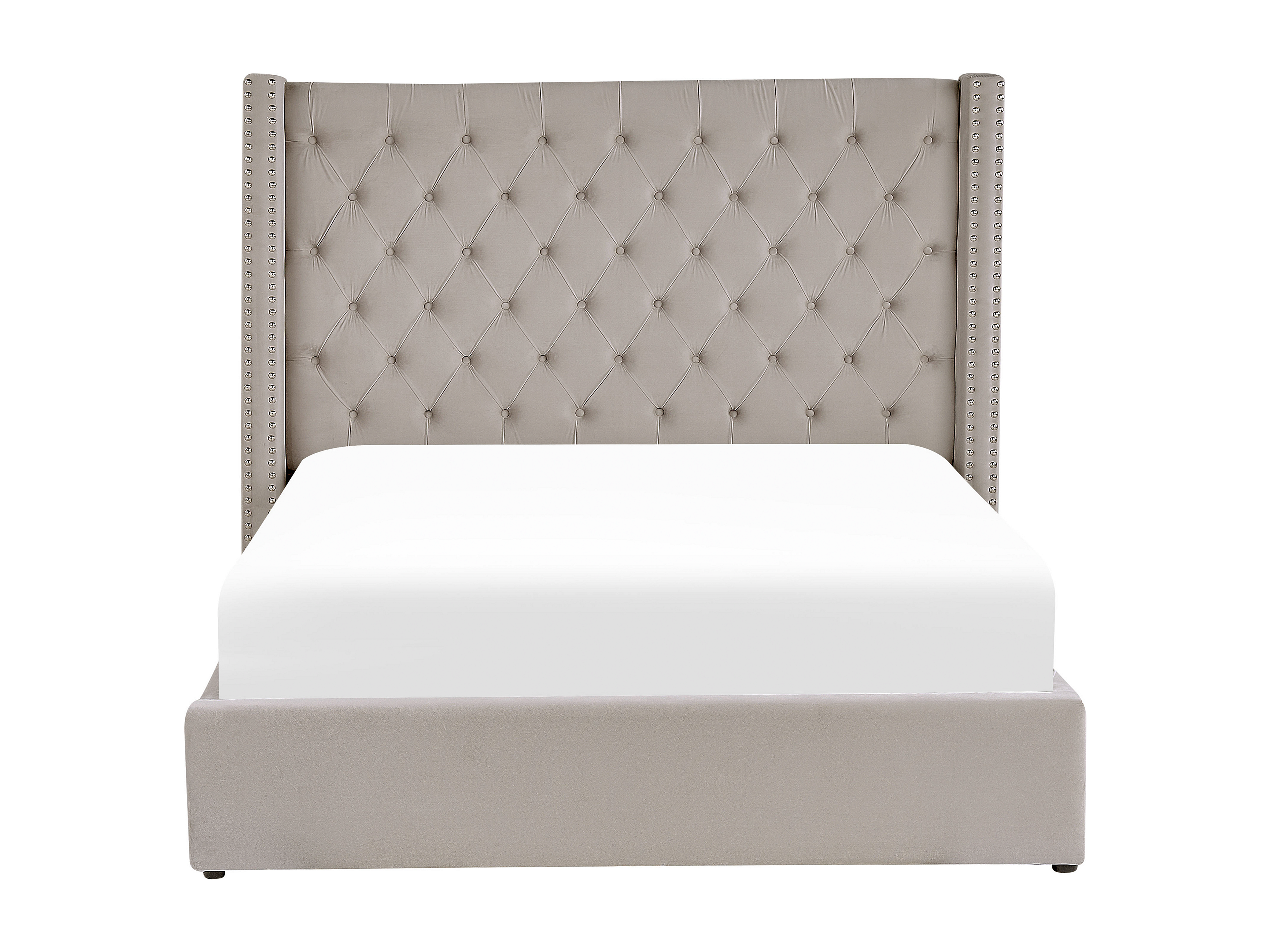 Polsterbett Samtstoff hohes Kopfteil helles Grau 160 x 200 cm Bettkasten Lubbon
