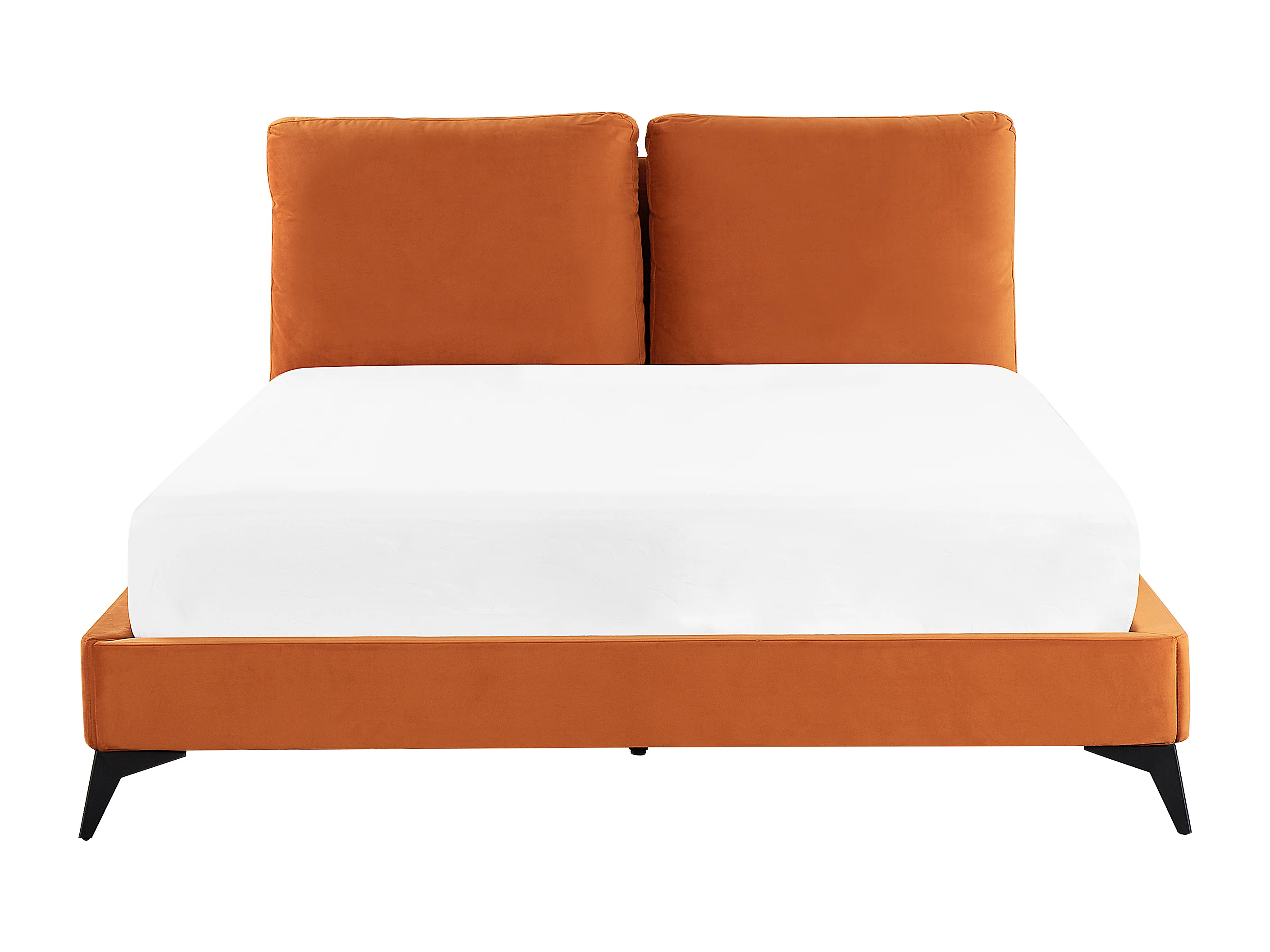 Elegantes Polsterbett in Orange Samtstoff mit Lattenrost 160 x 200 cm Melle