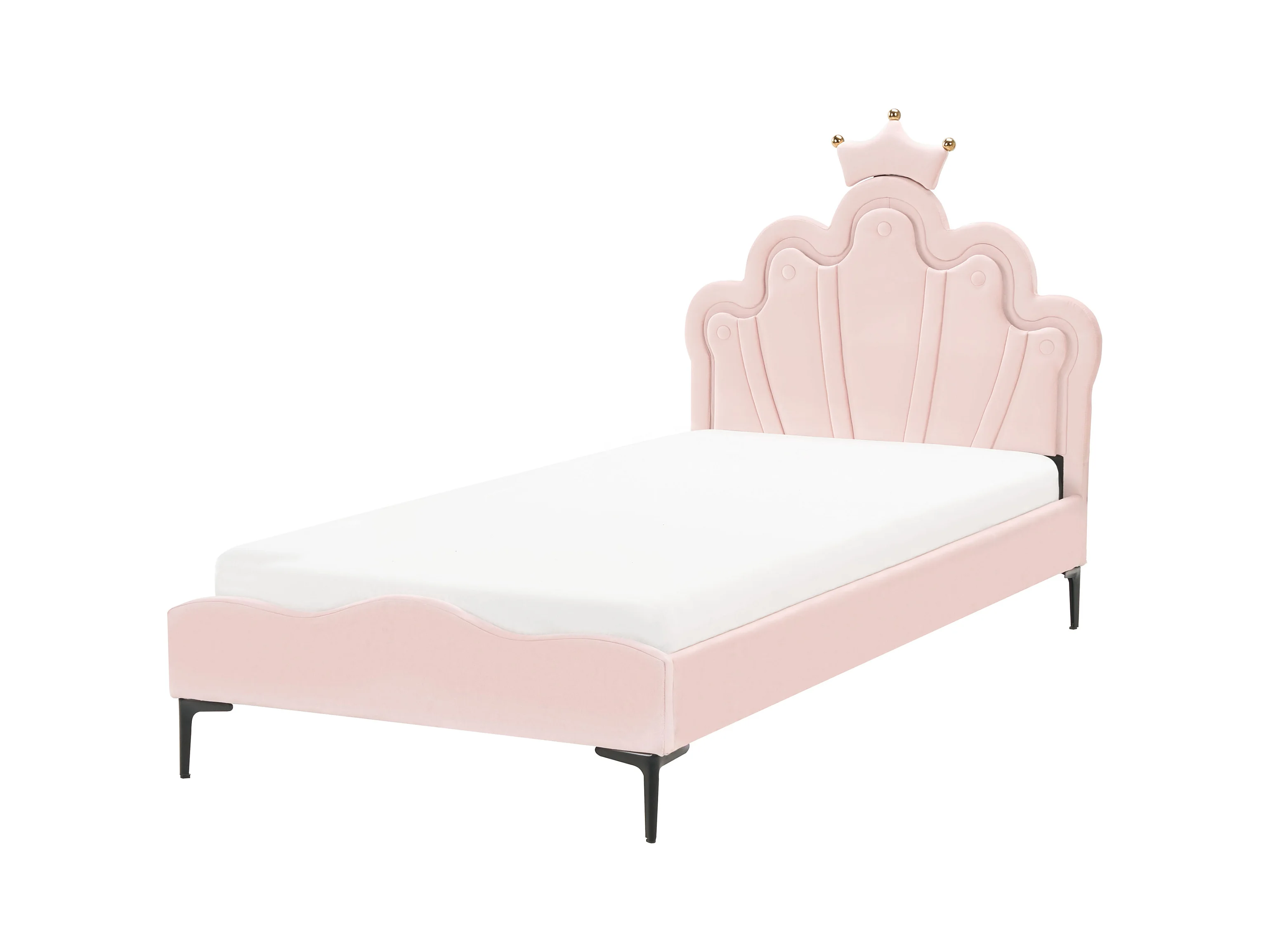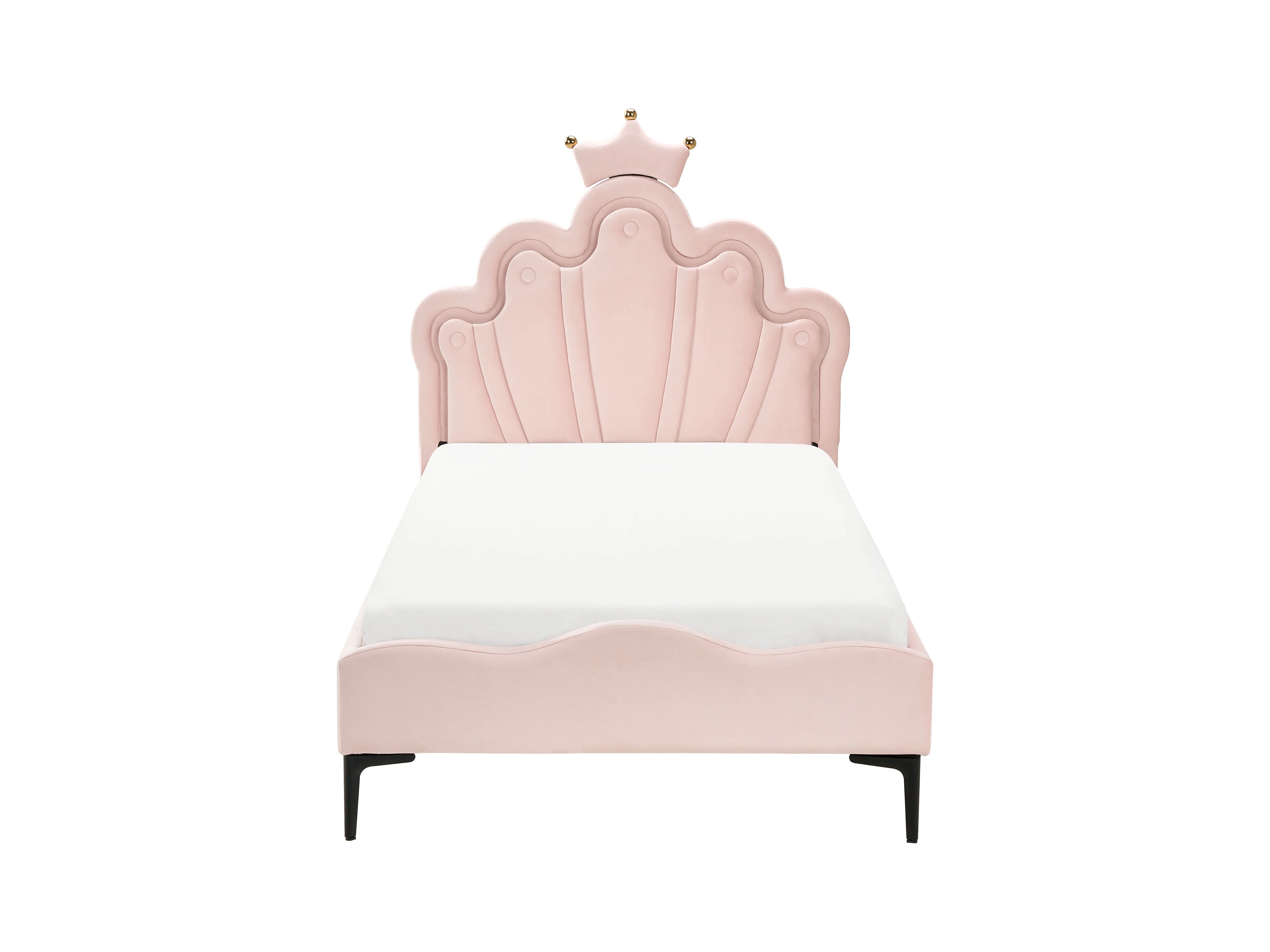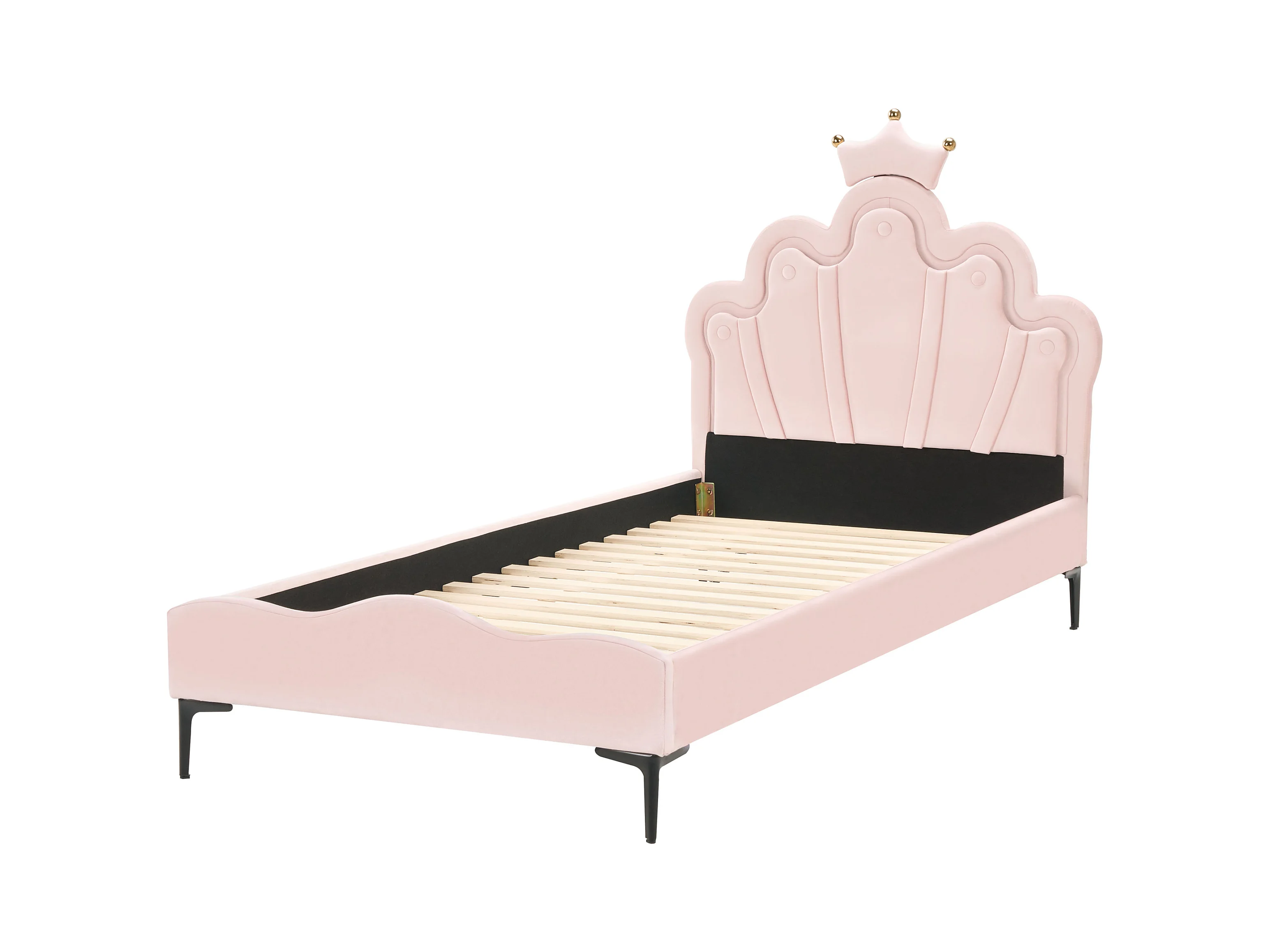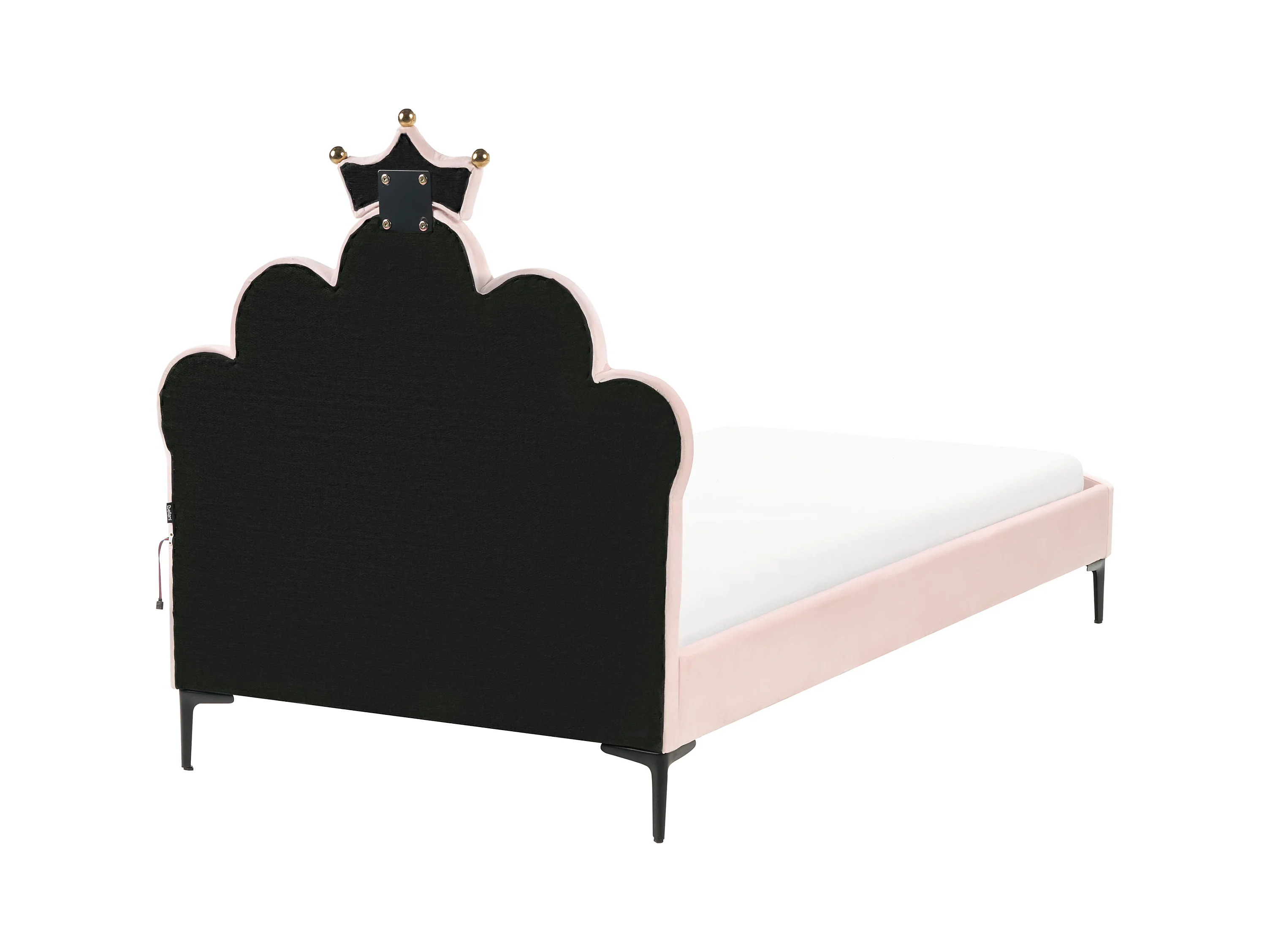 Polsterbett Samtstoff rosa Lattenrost 90 x 200 cm LED-Beleuchtung bunt RUBIAN