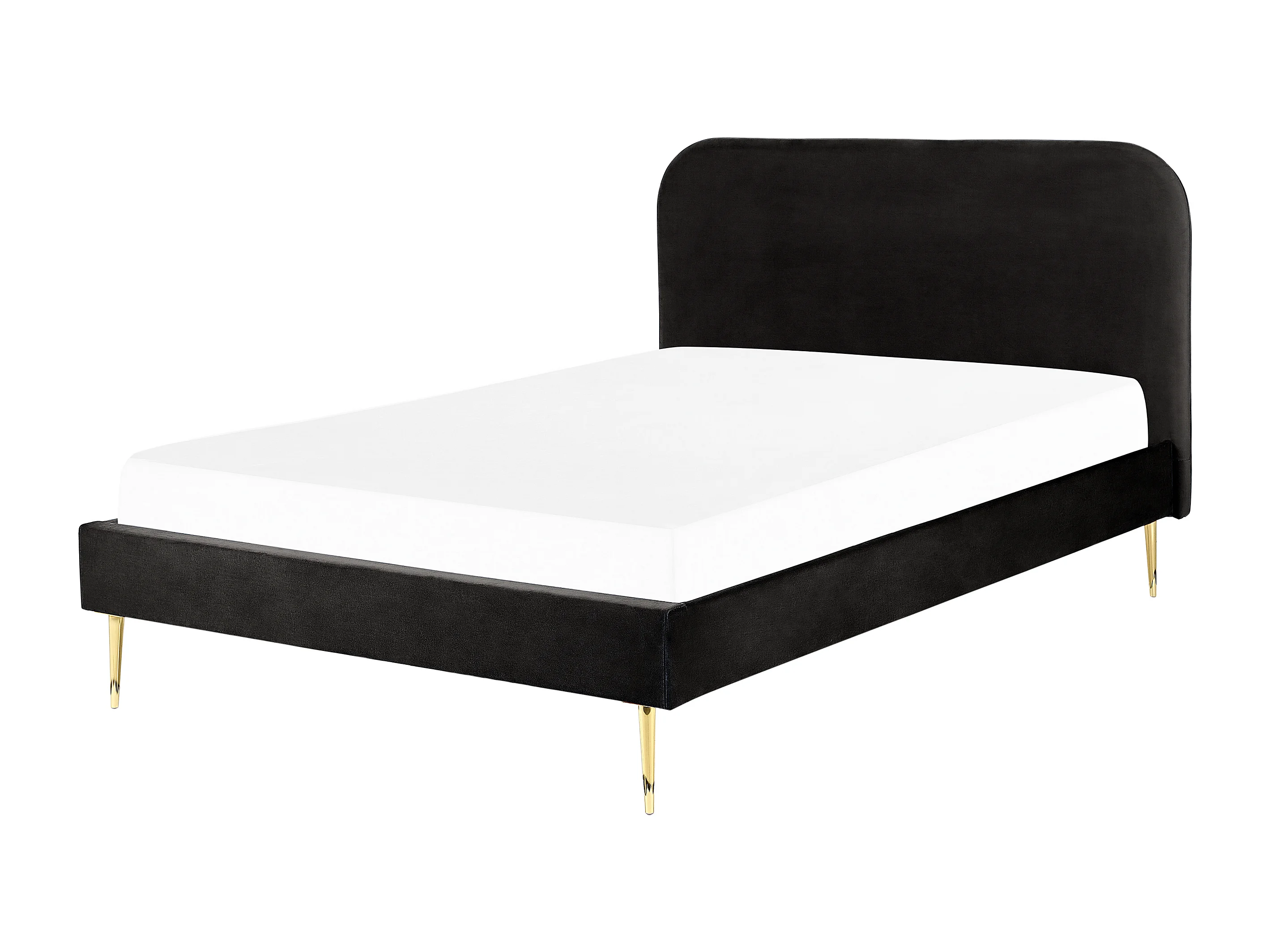 Polsterbett Samtstoff schwarz mit Lattenrost 140 x 200 cm Metallfüße gold Flayat