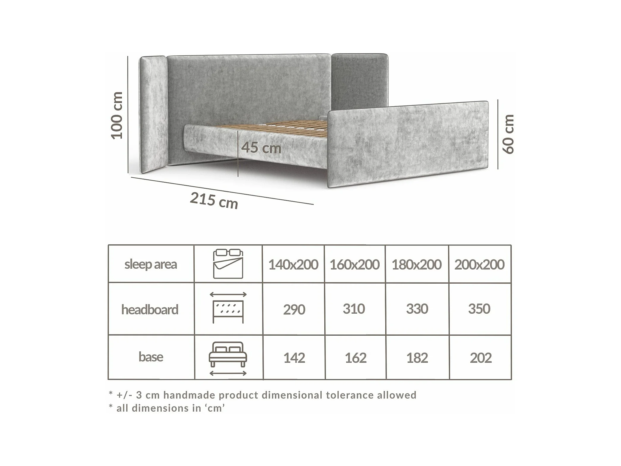 Polsterbett 180x200 mit Veloursbezug – Grau – COMOVES