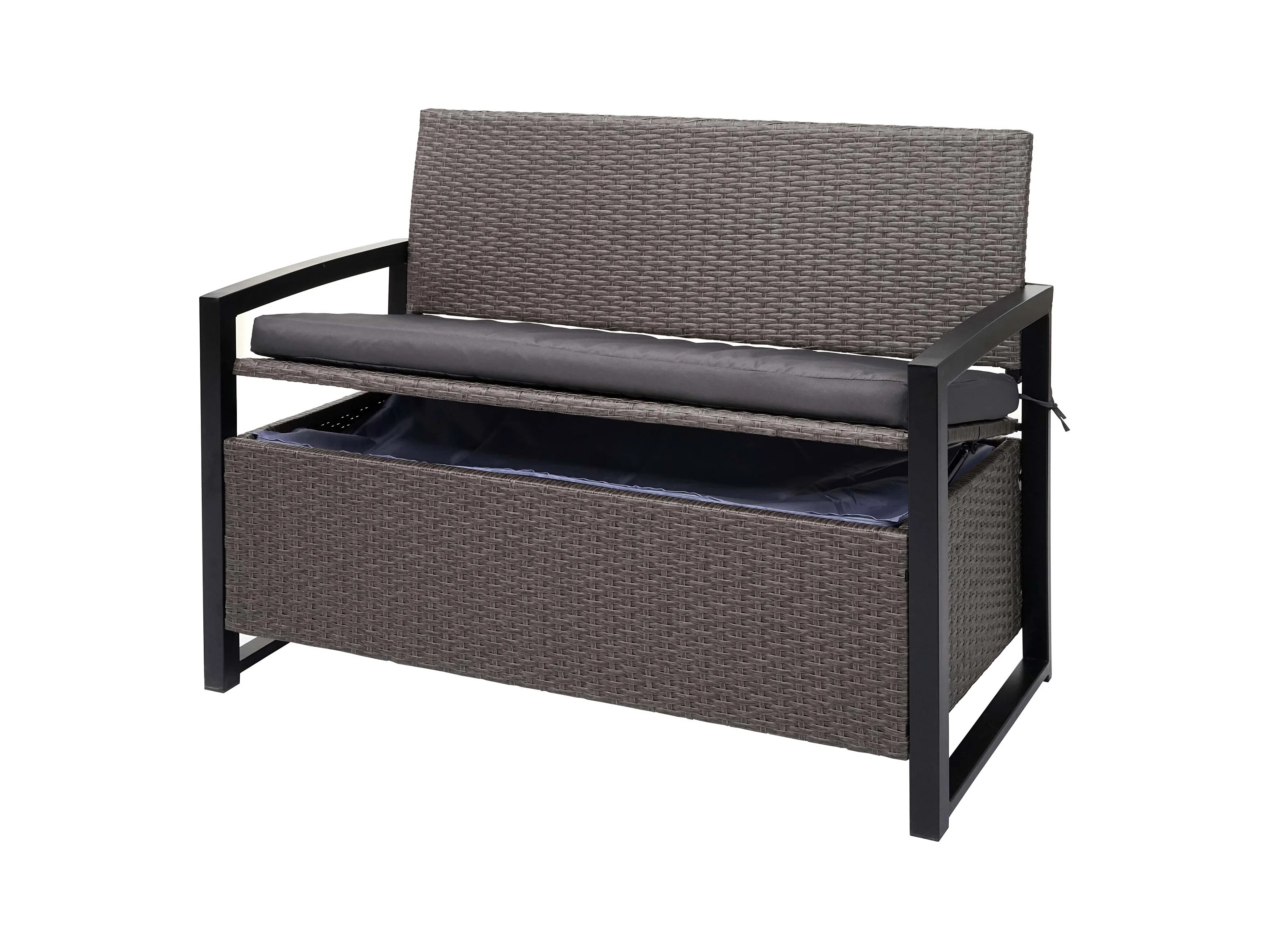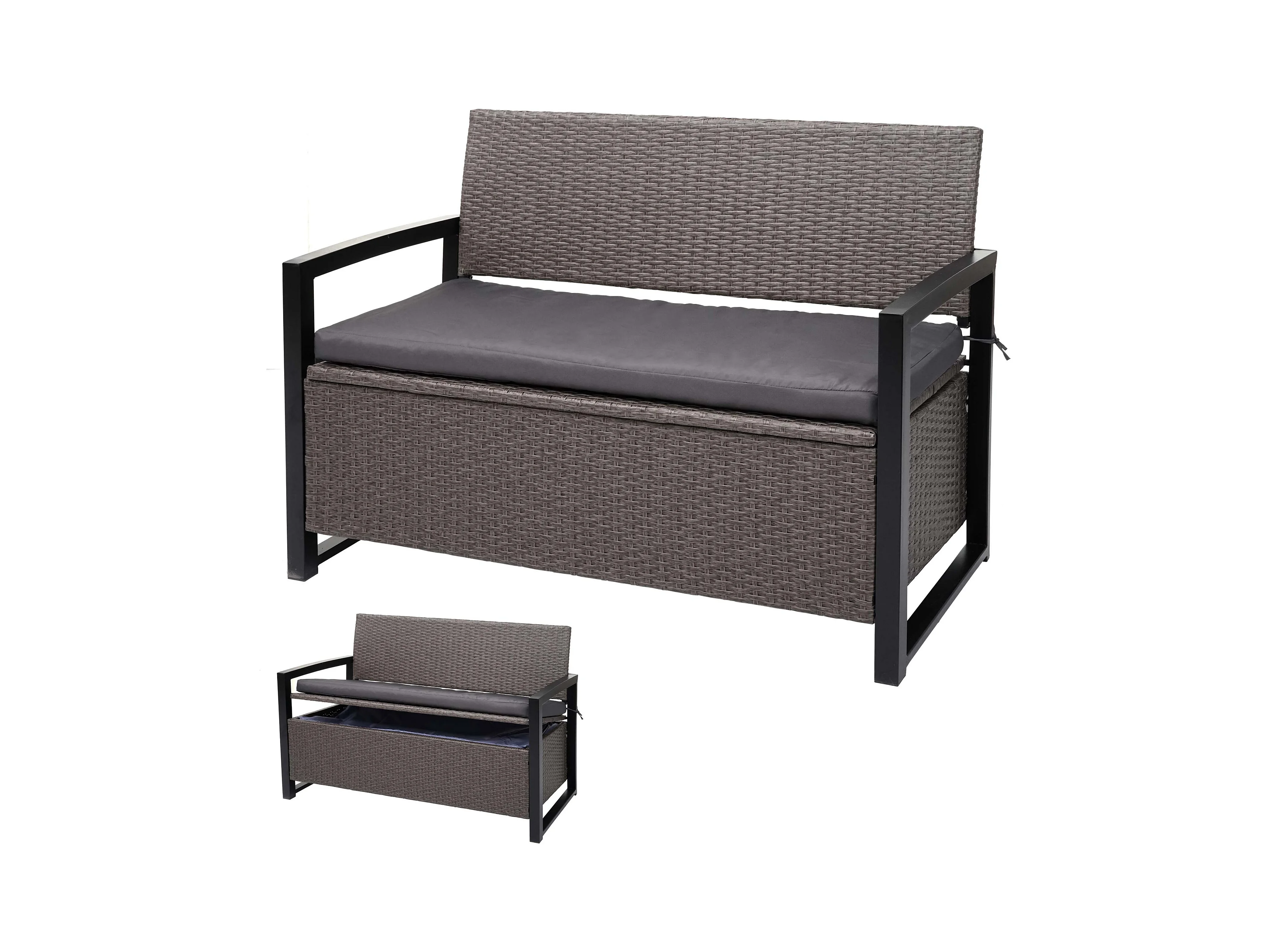 Poly-Rattan 2er Sitzbank MCW-F39, Grau-meliert, Kissen grau