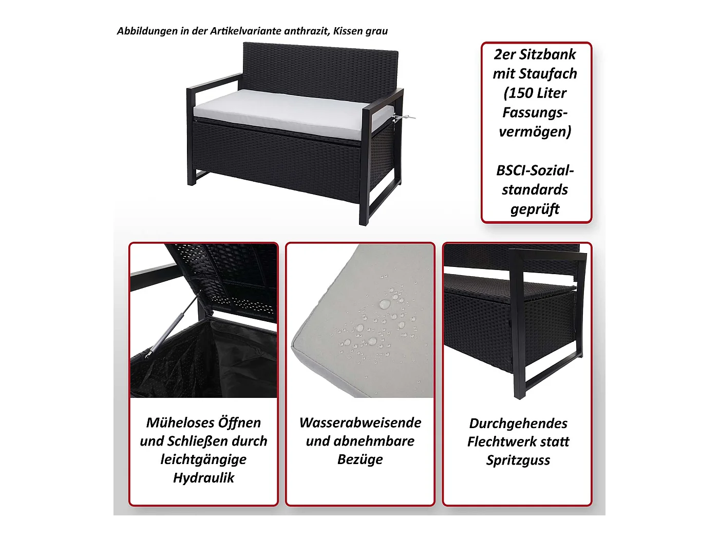 Poly-Rattan Gartenbank Hamar, Anthrazit, Kissen creme
