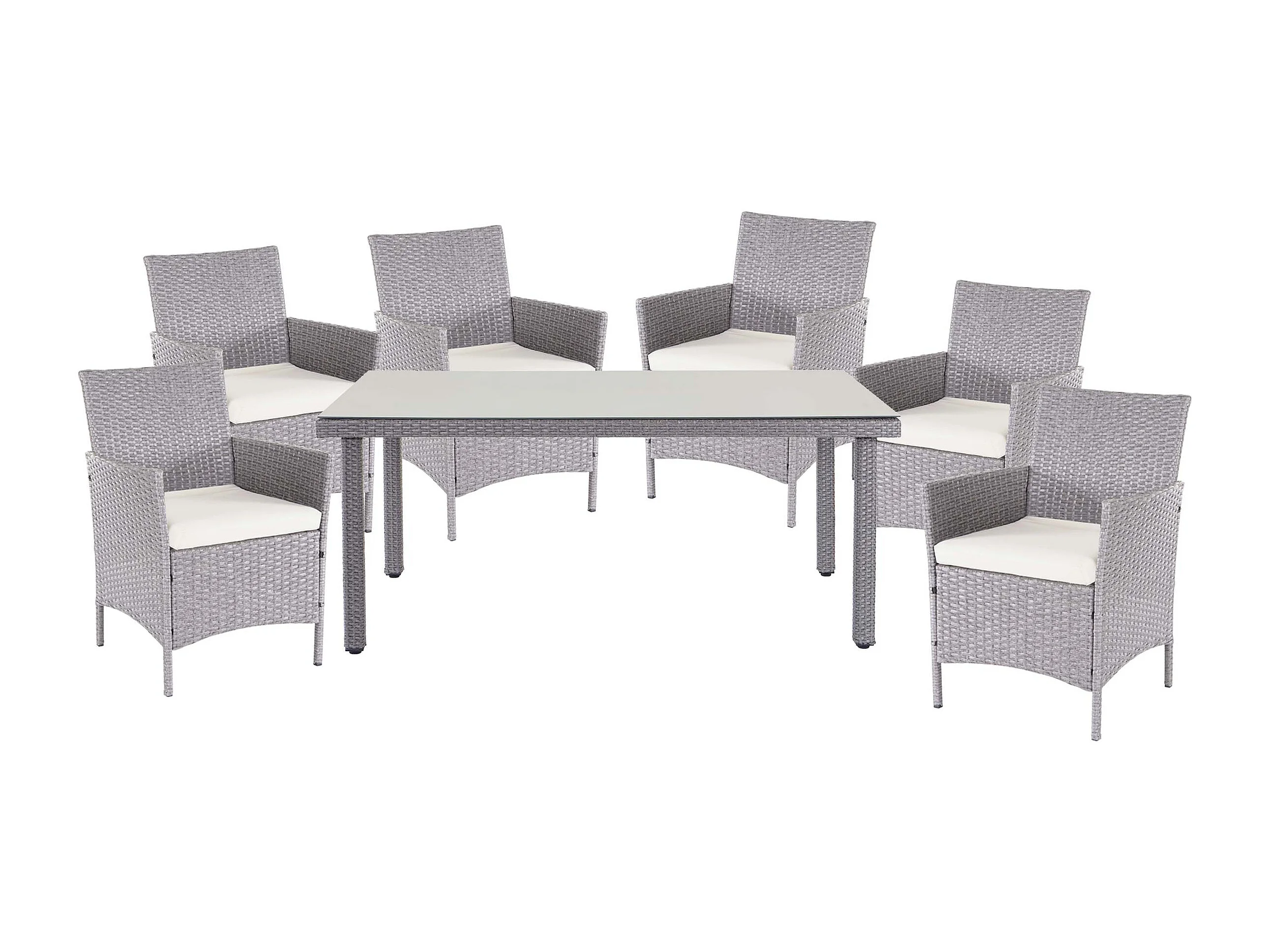 Poly-Rattan-Garnitur Hamar (7-teilig), Grau, Kissen creme