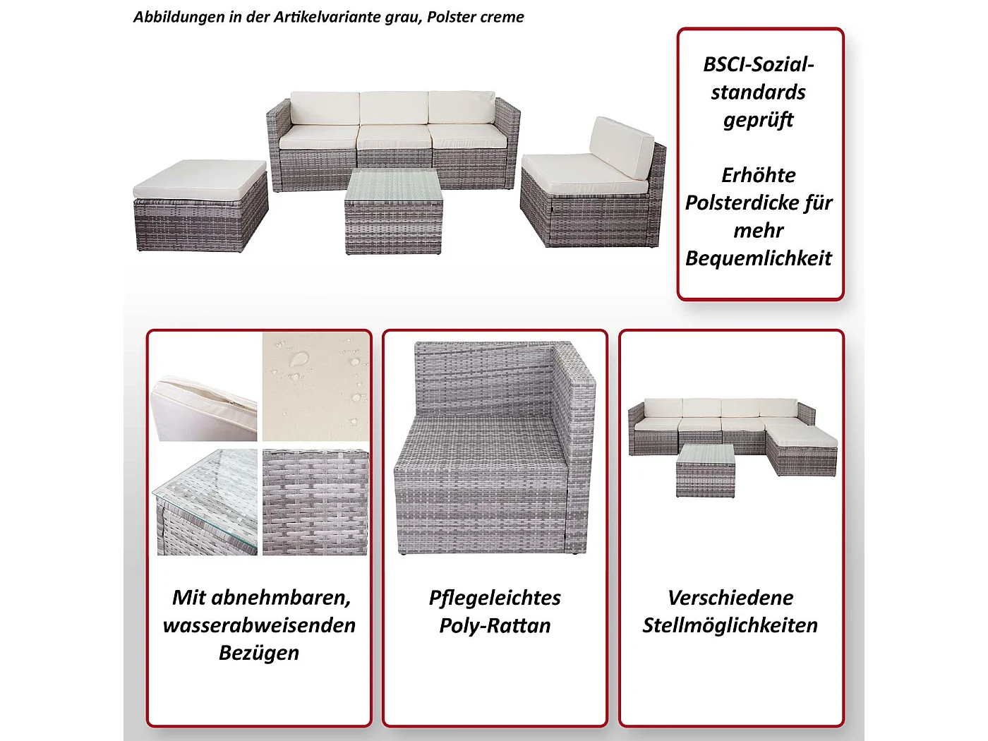 Poly-Rattan-Garnitur MCW-D24, Grau, Polster creme