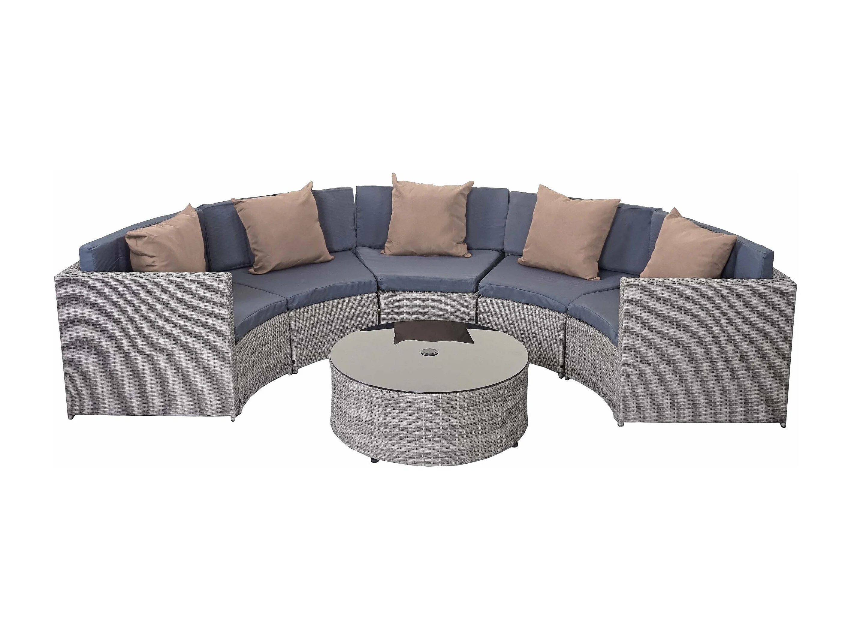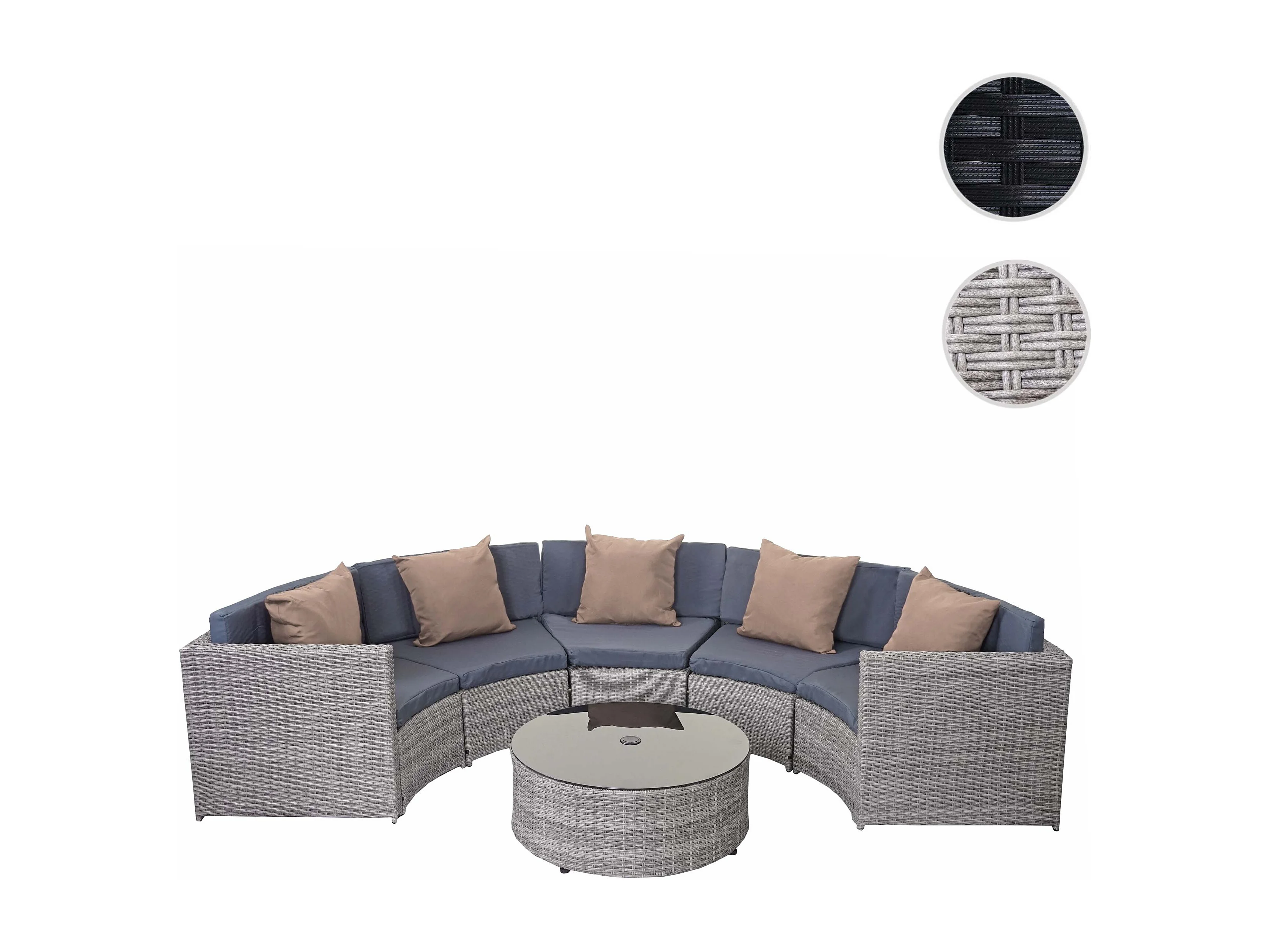 Poly-Rattan Garnitur MCW-E17 rund, Grau, Polster dunkelgrau, Kissen beige