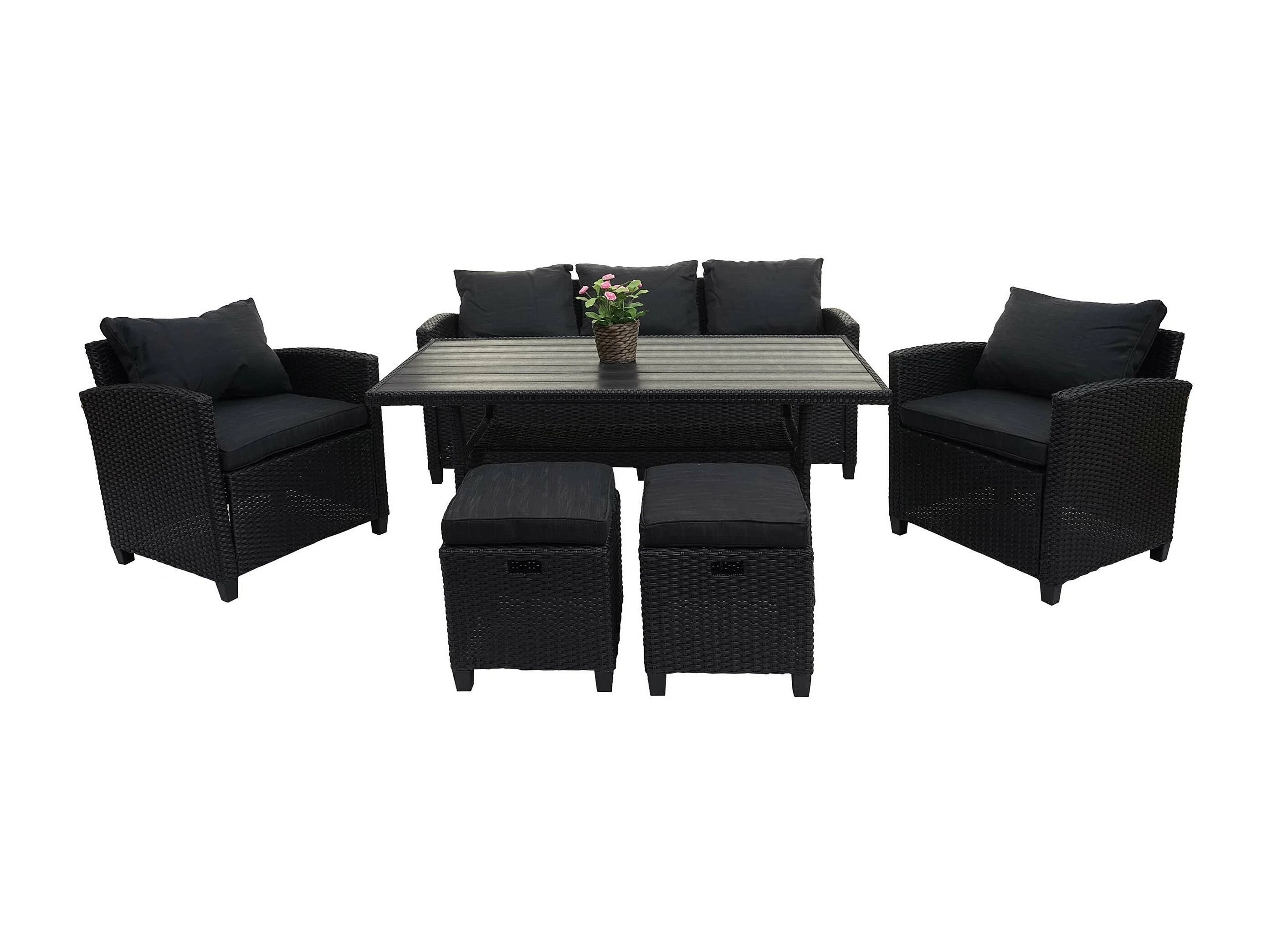 Poly-Rattan Garnitur MCW-E95 (6-teilig), Schwarz, Kissen anthrazit