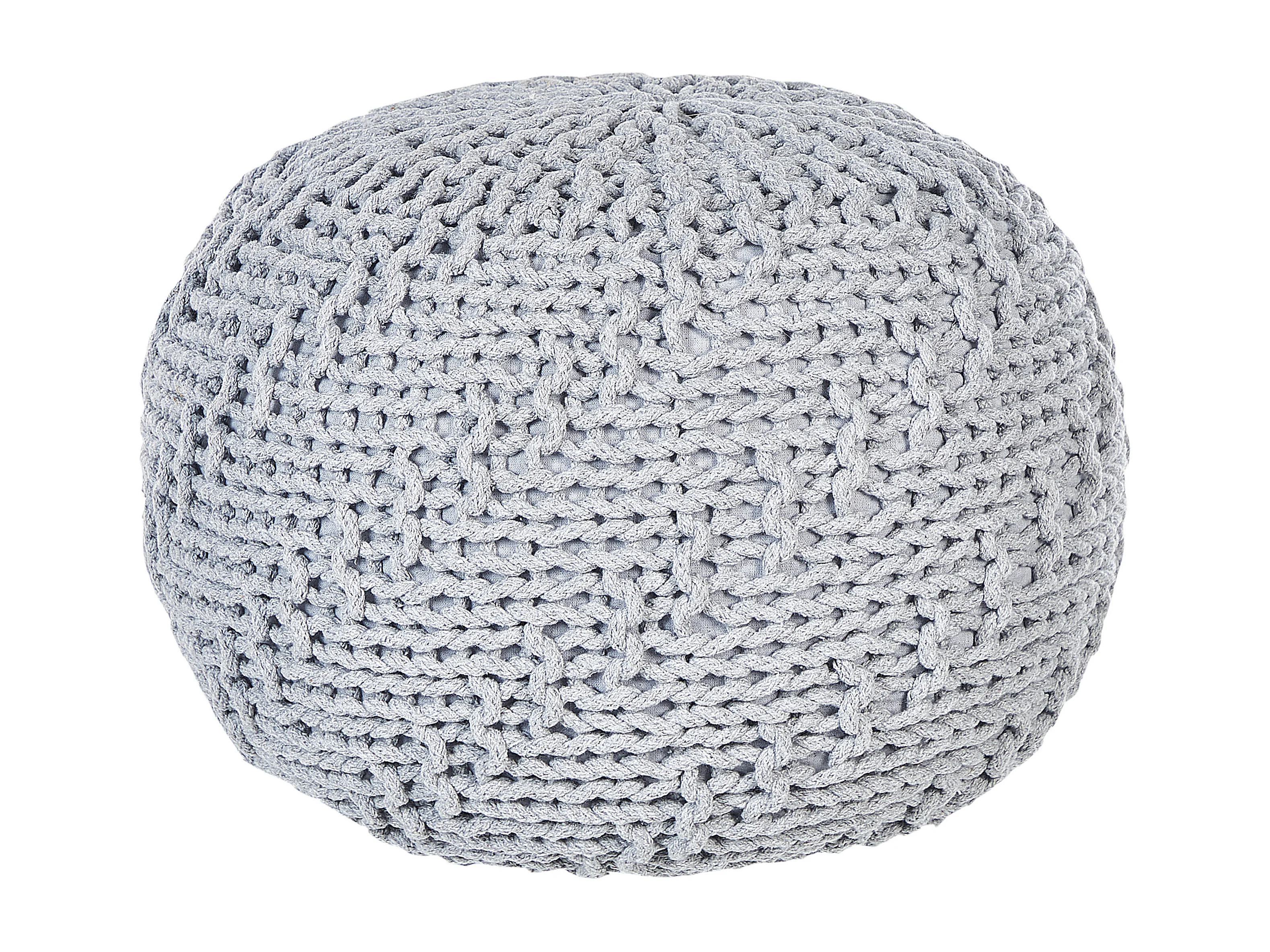 Runder Pouf Ottomane Baumwolle grau 50 x 50 x 35 cm gestrickt Boho Priene