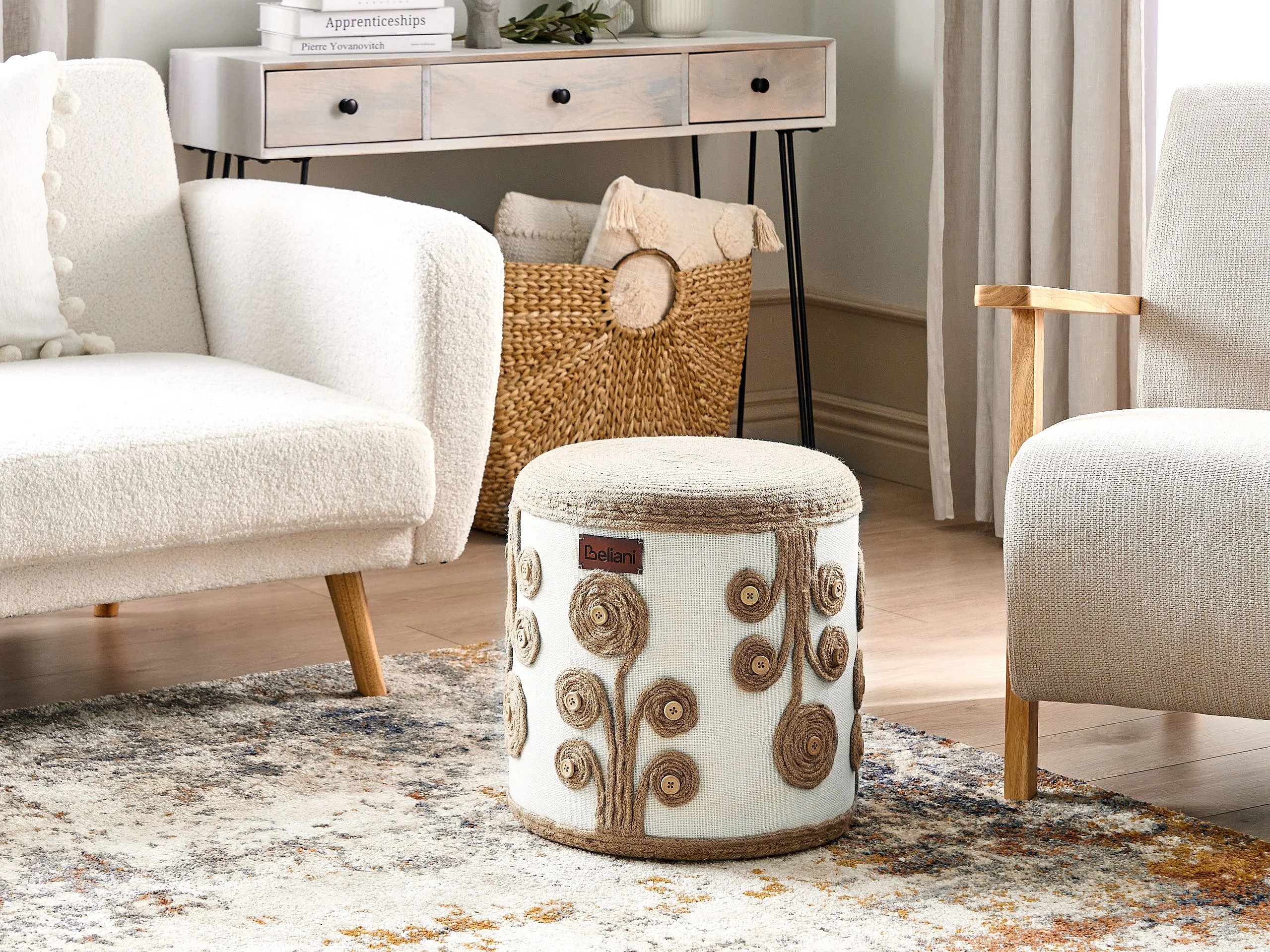 Pouf DIMAN Jute Weiss 40 cm 40 cm 40 cm