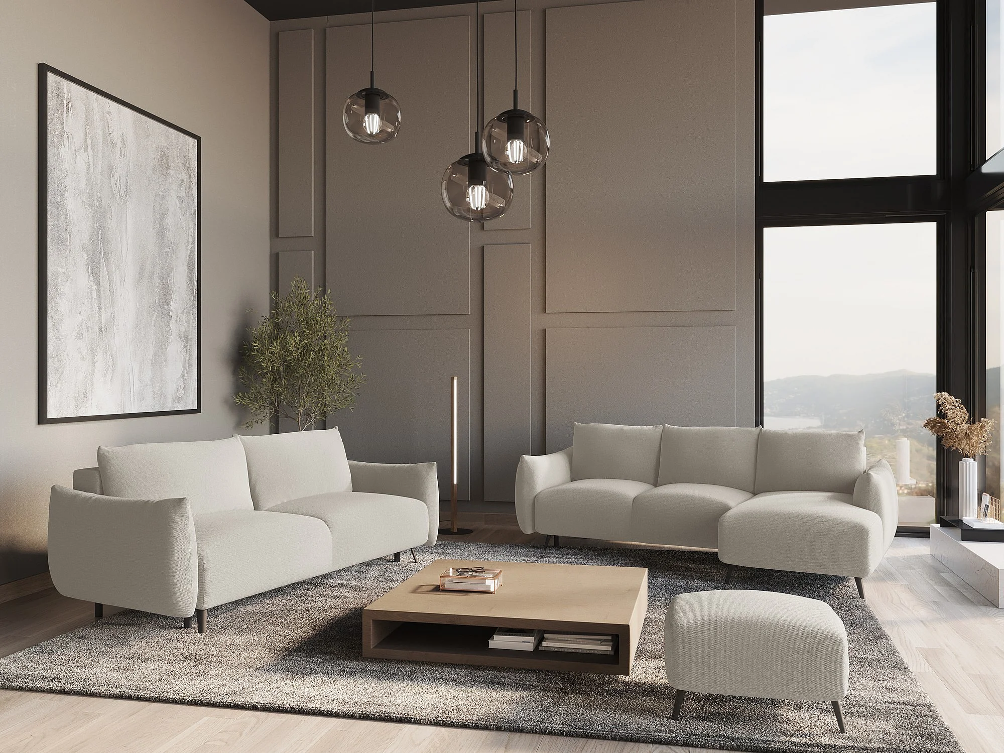 Pouf - Hocker - Chenille - Silber - MALIE