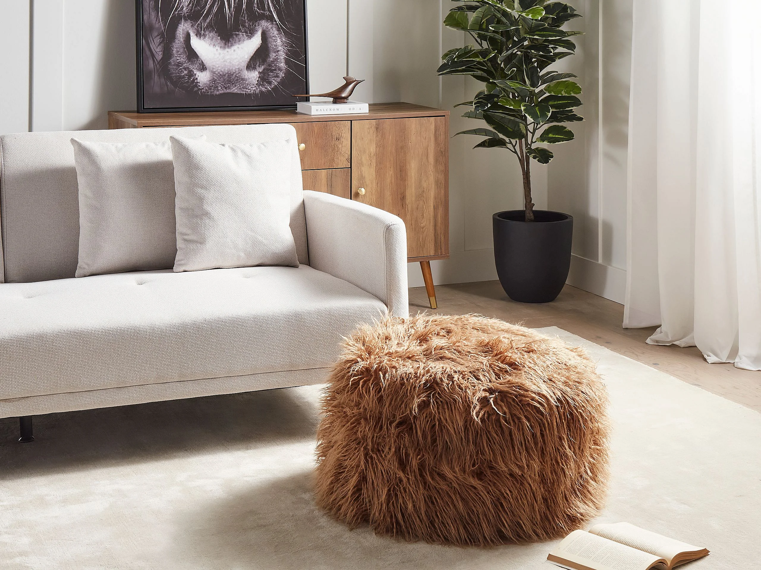 Pouf Kunstfell braun 50 x 50 x 30 cm quadratisch flauschig mit Füllung Tukki