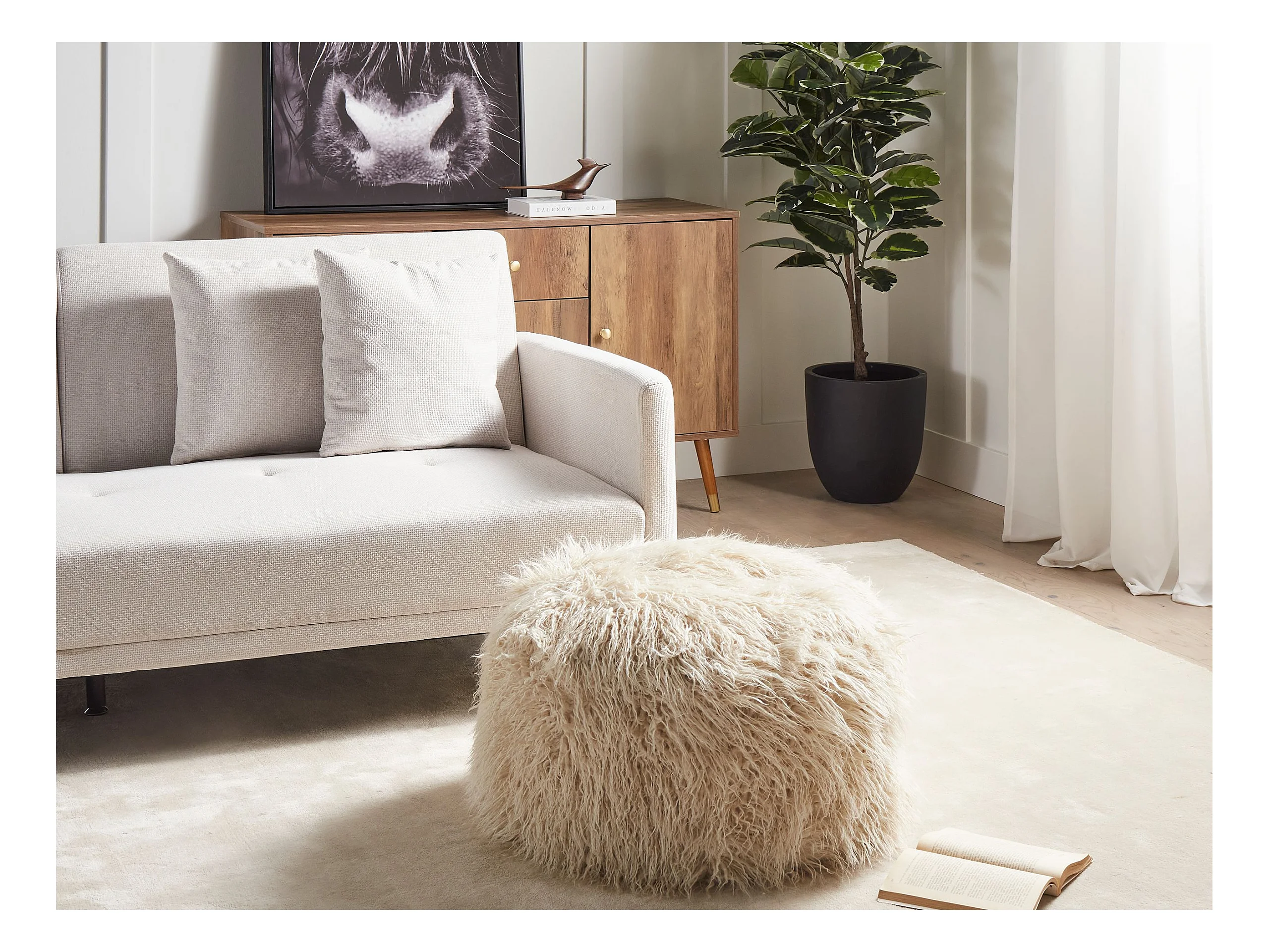 Pouf MUKKI Webpelz Beige 50 cm 50 cm 30 cm