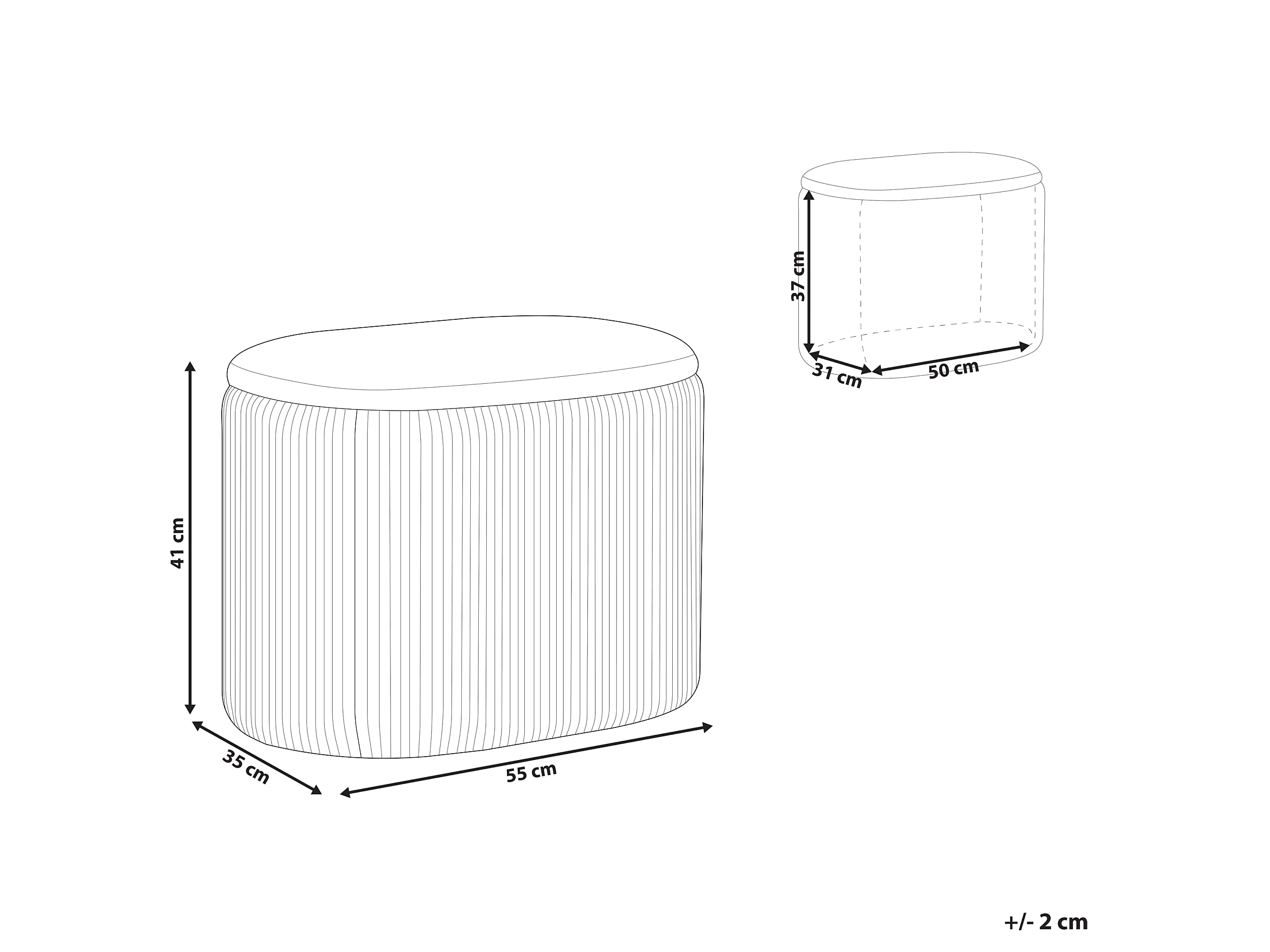 Pouf mit Stauraum Samtstoff Beige oval 55x35 cm plissiert Modern Richland