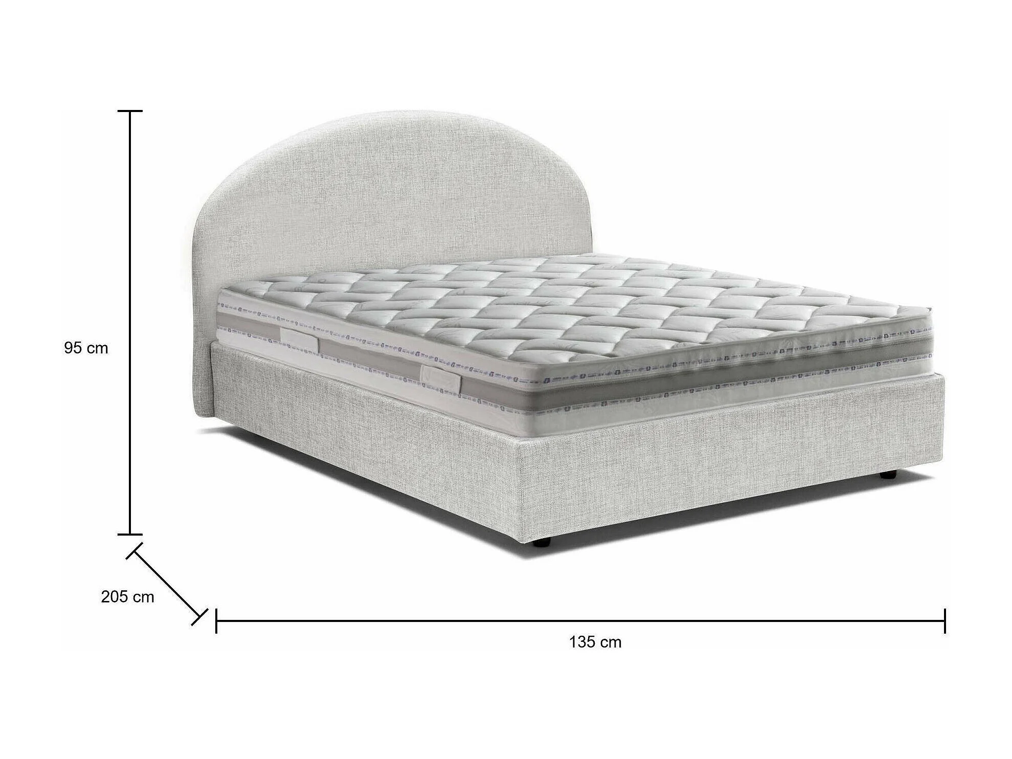 Quadratisches und halbes Bett Dbogda, Containerbett mit Stoffbespannung, 100% Made in Italy, Frontöffnung, inklusive Matratze Cm 120x190, Weiß