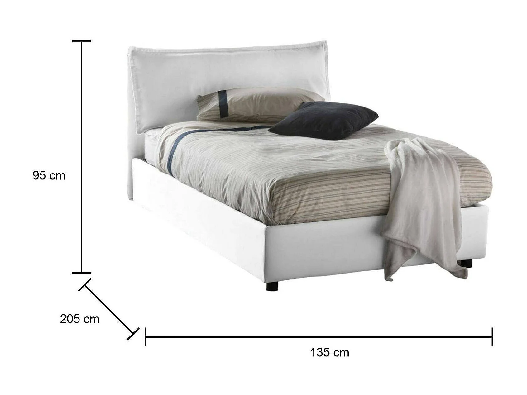 Quadratisches und halbes Bett Deusebi, Containerbett mit Stoffbespannung, 100% Made in Italy, Frontöffnung, passend für Matratze Cm 120x190, Weiß