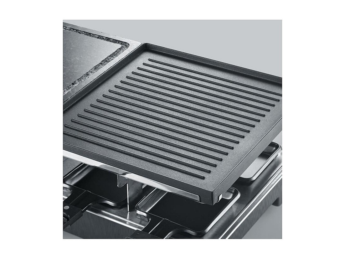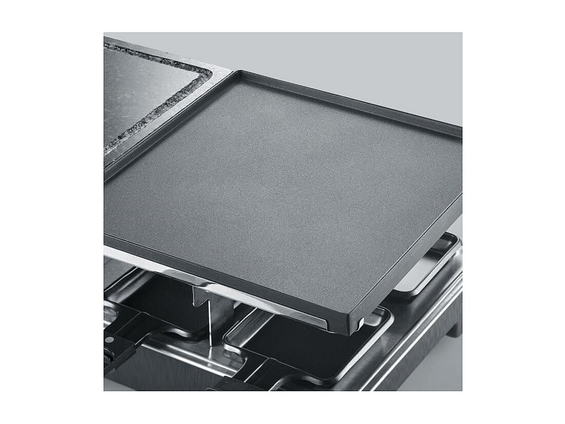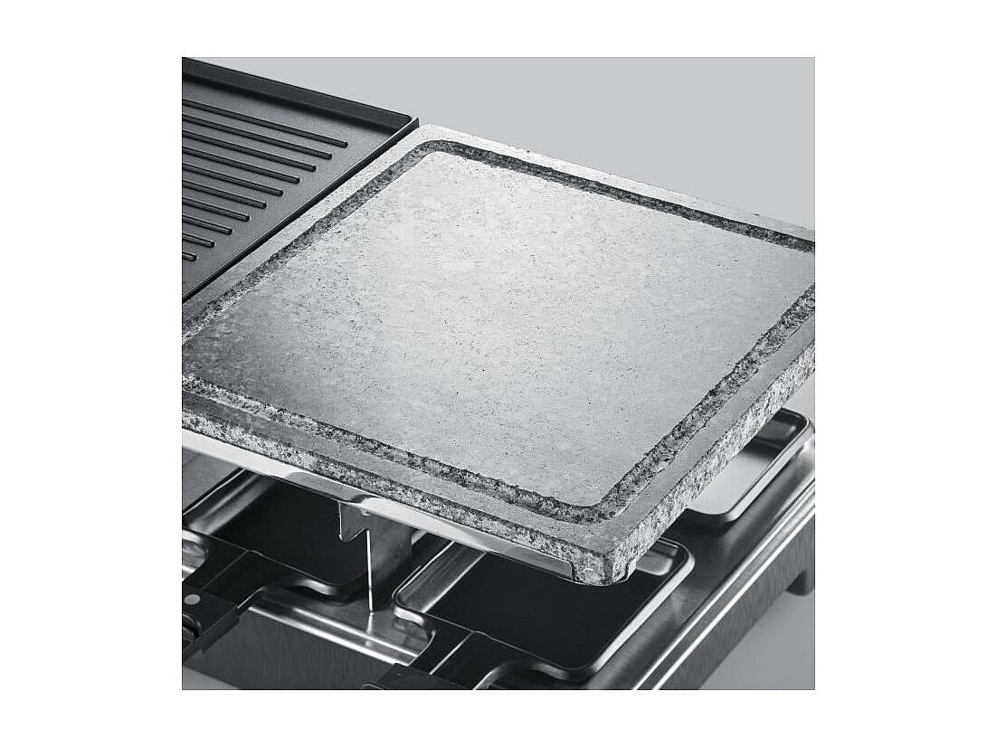 RacletteGrill – 8 Personen – natürlicher Kochstein und umkehrbare Antihaftplatte – einstellbarer Thermostat