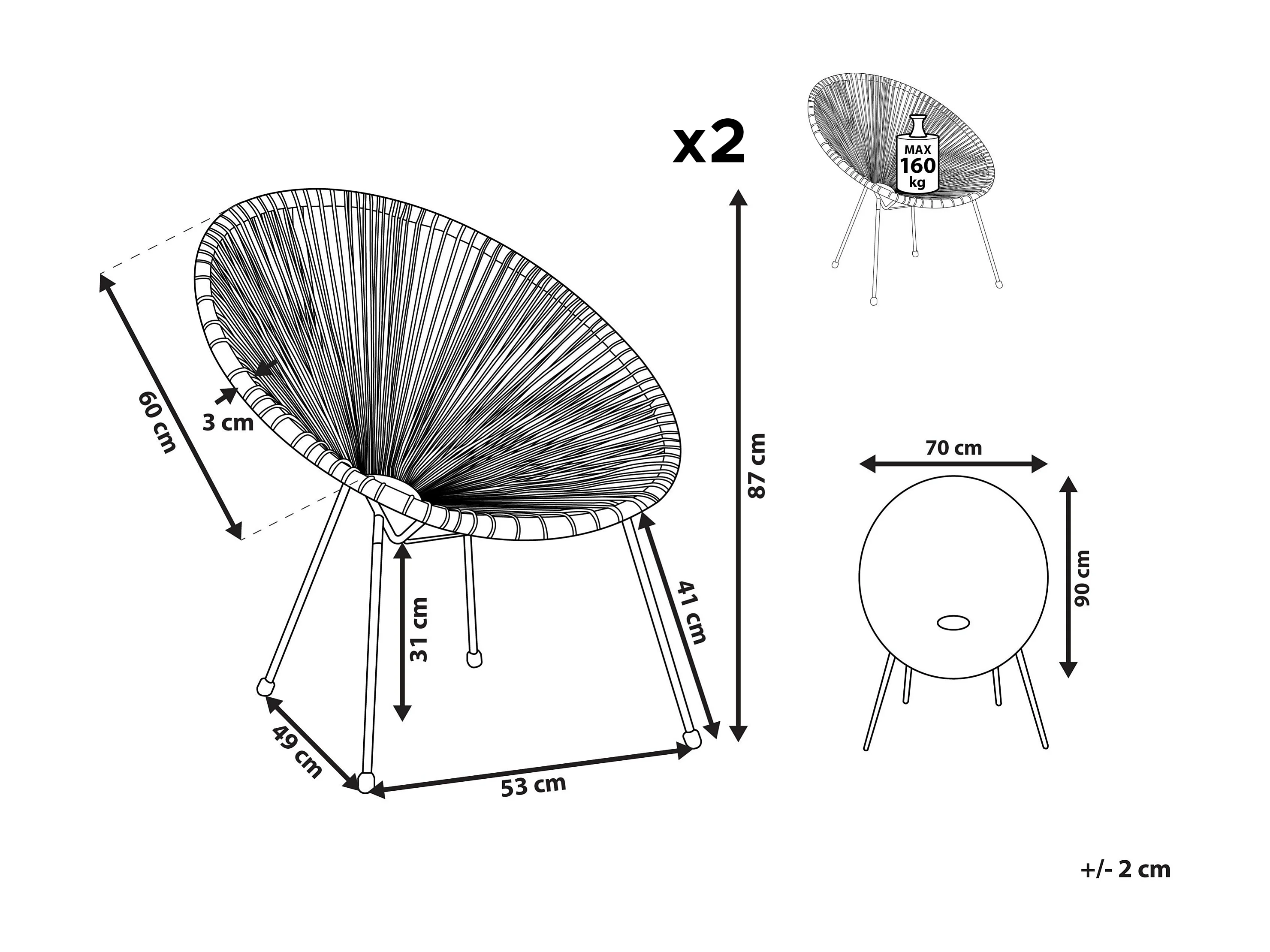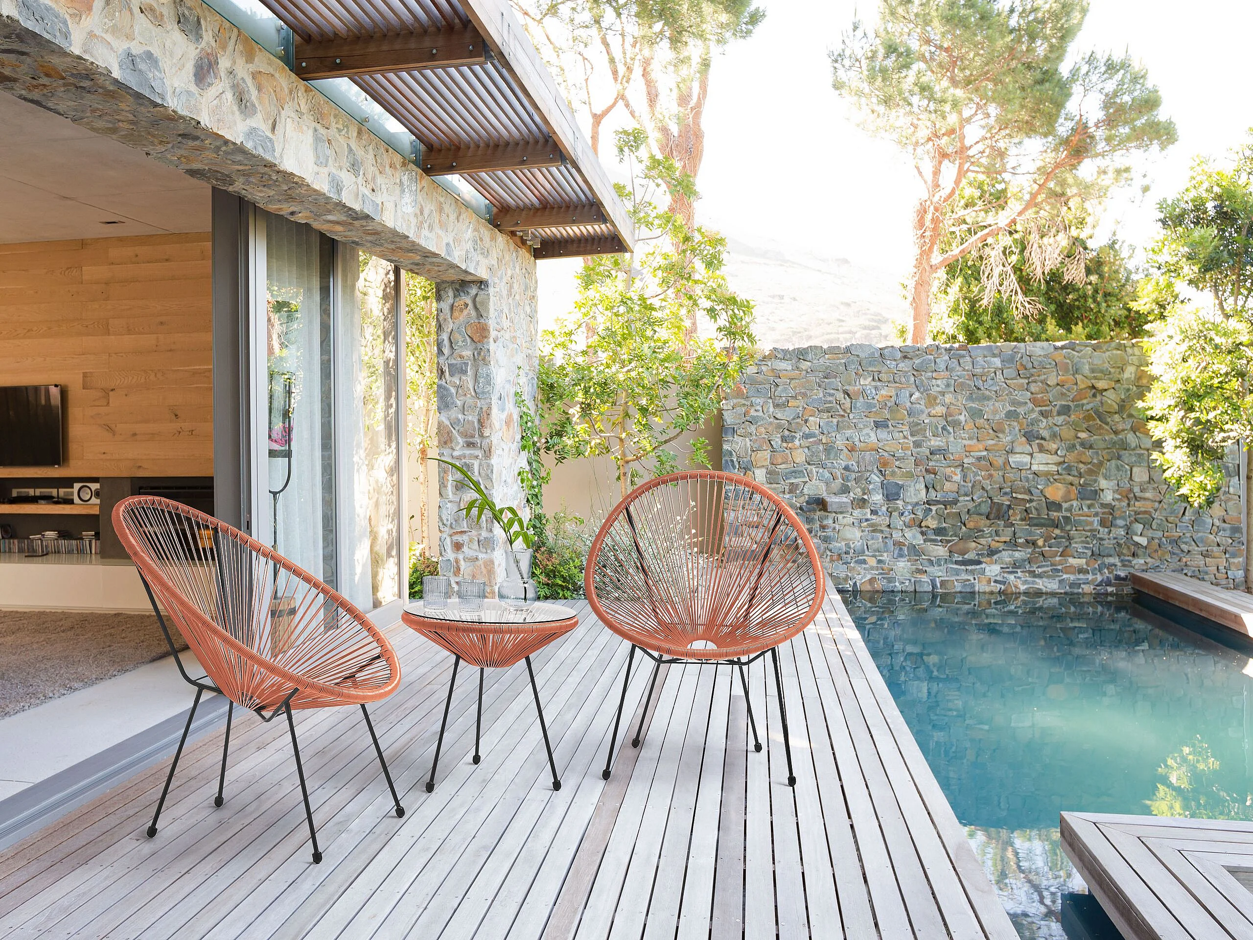 Lustiges Balkonset 2 Stühle Spaghetti Stil Rattan orange Acapulco II