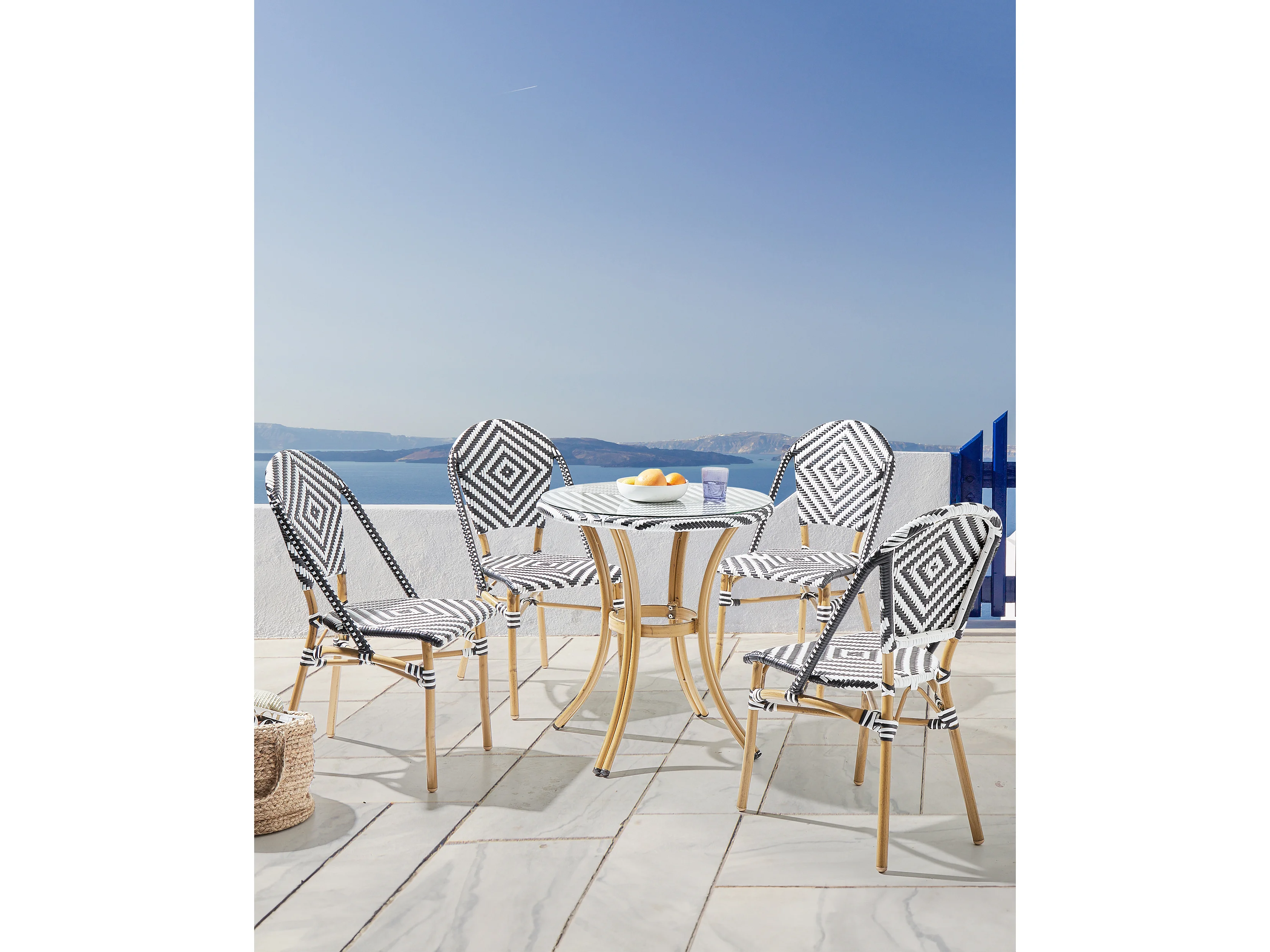 Stilvolle Rattanstühle in Schwarz und Weiß Beine in Holzoptik 4er Set Rifreddo