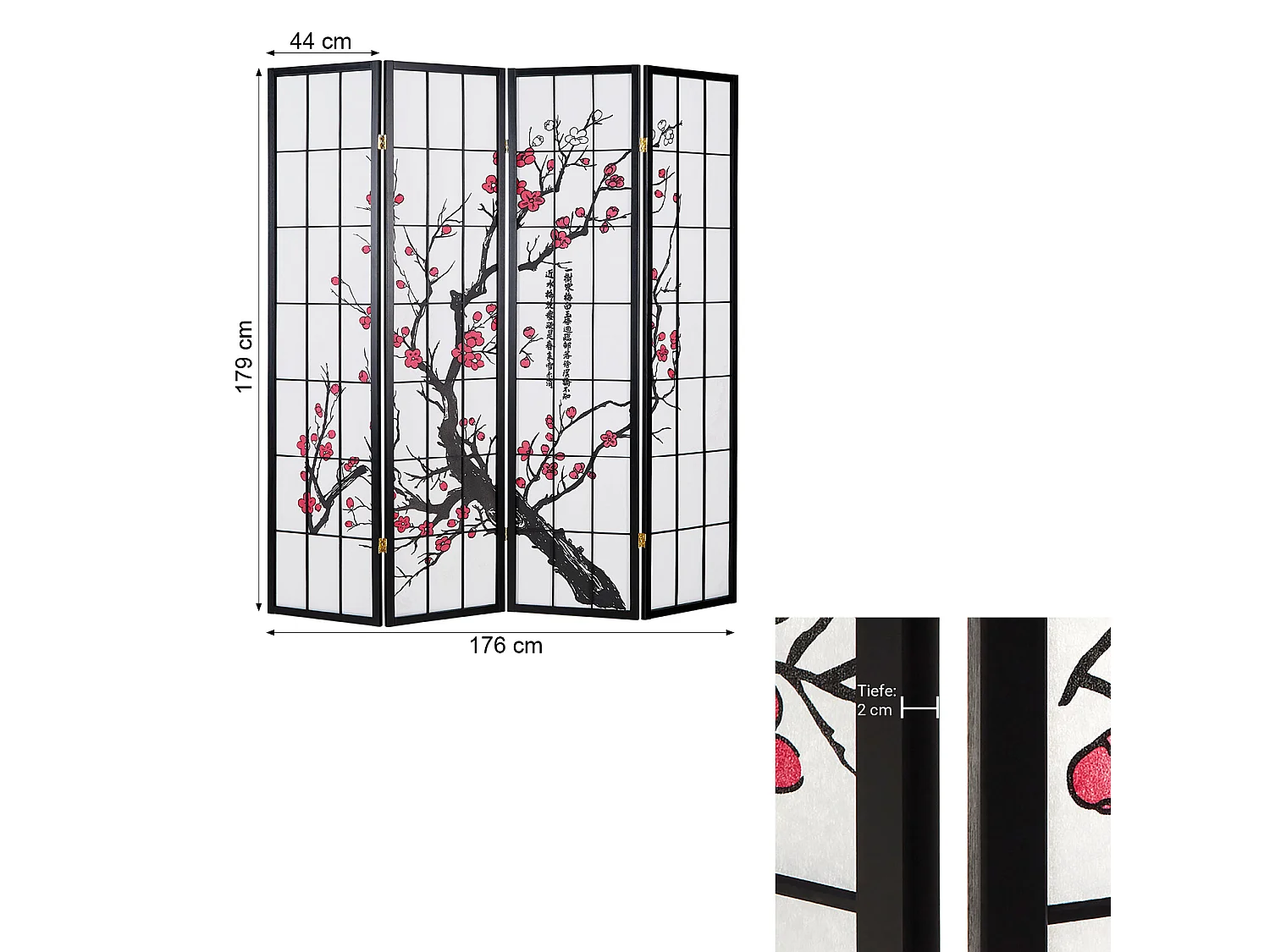 Raumteiler 176x2x179 cm schwarz Shoji
