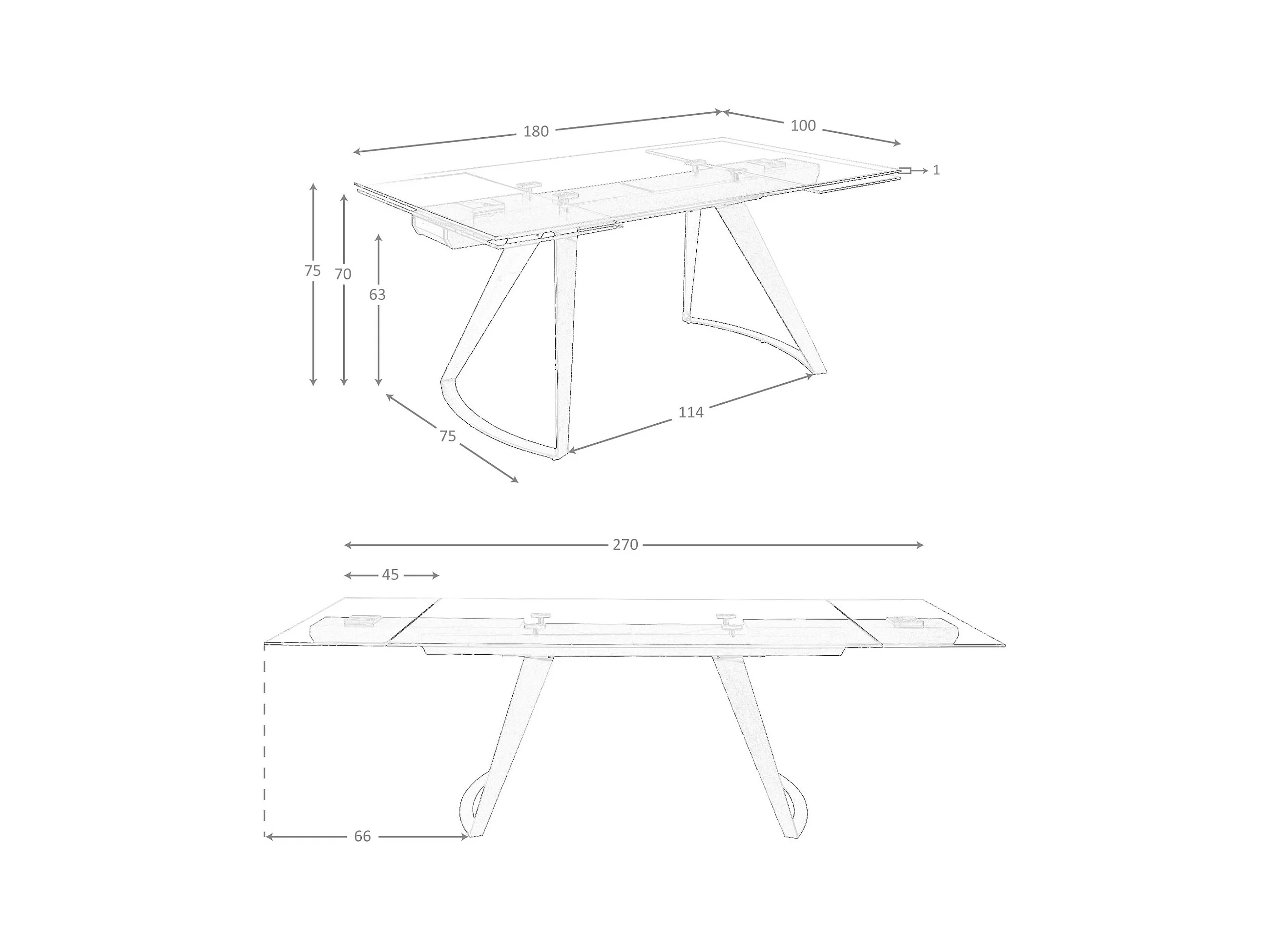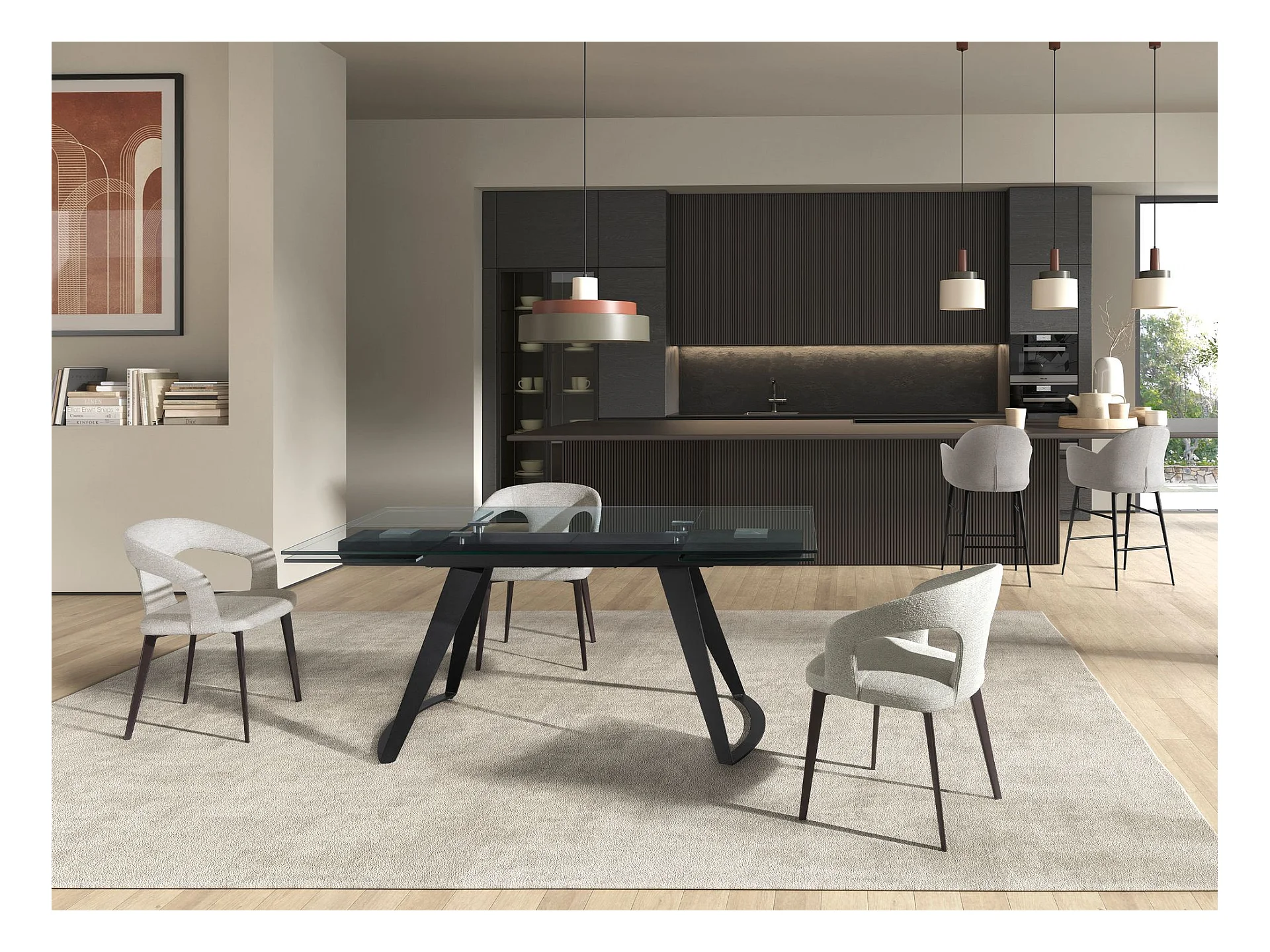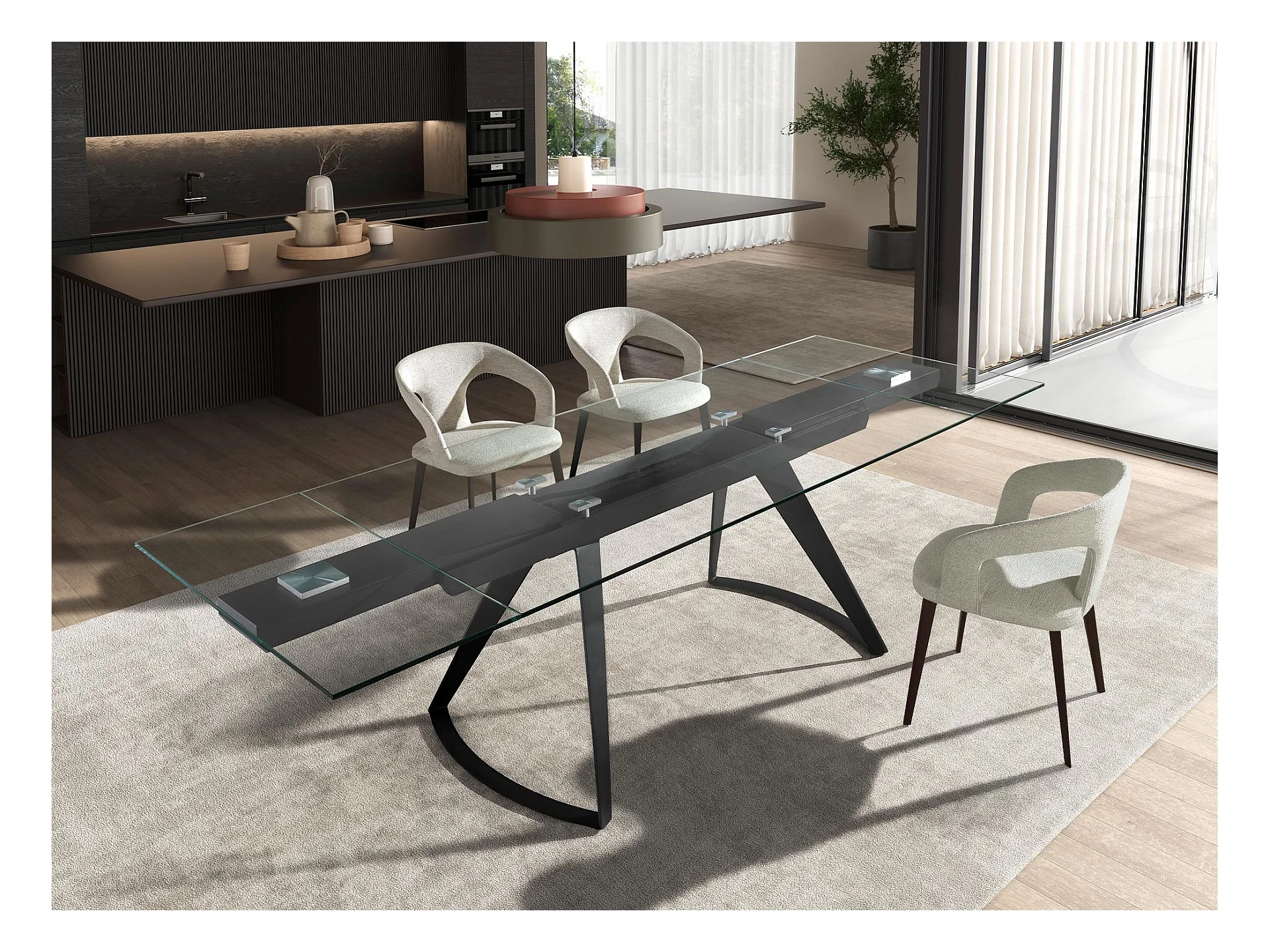 Rechteckiger ausziehbarer Esstisch aus gehärtetem Glas und schwarzem Stahl 1150 ANGEL CERDA