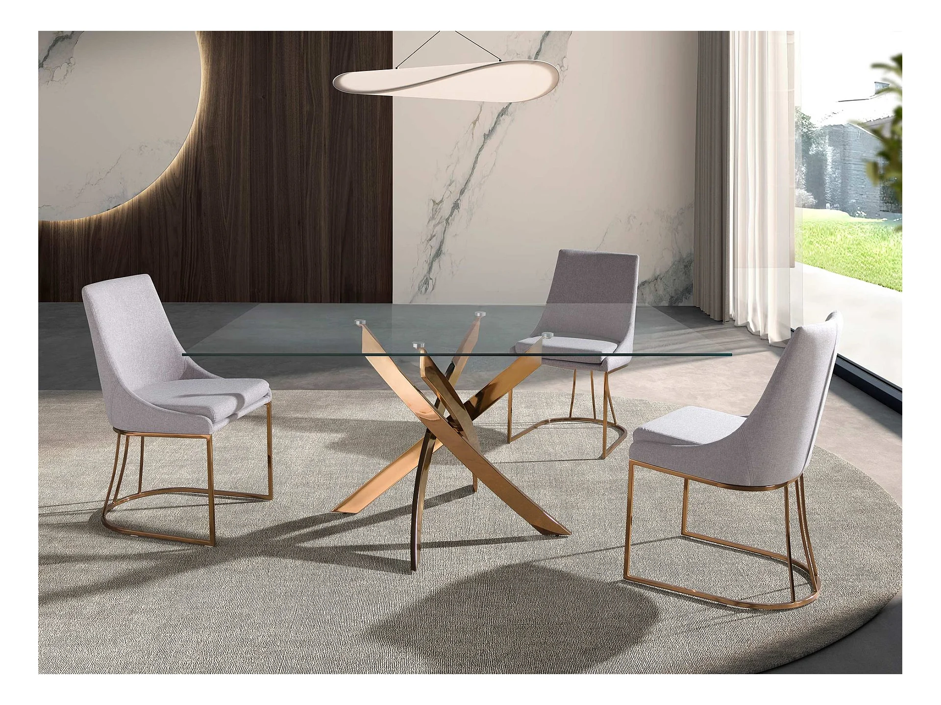 Rechteckiger Esstisch aus gehärtetem Glas und rosa Stahl 1169-150x95 ANGEL CERDA
