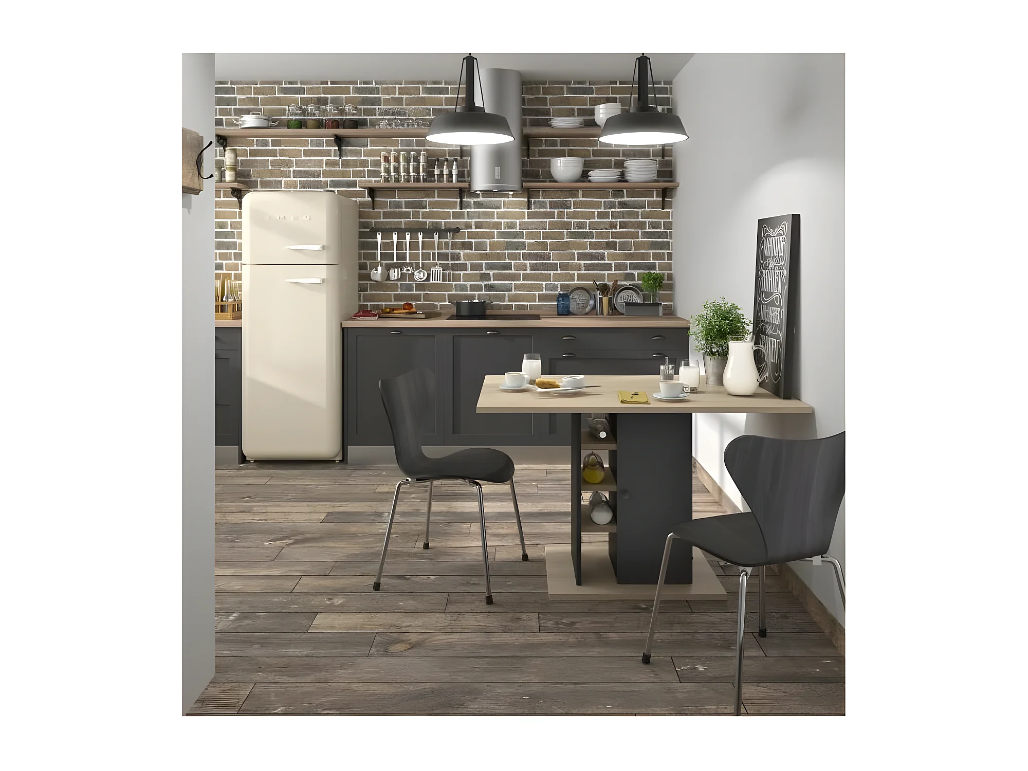 Rechteckiger Esstisch mit 1türigem Stauraum – Eichen und Schwarzdekor – 120 x 80 x Höhe 75 cm