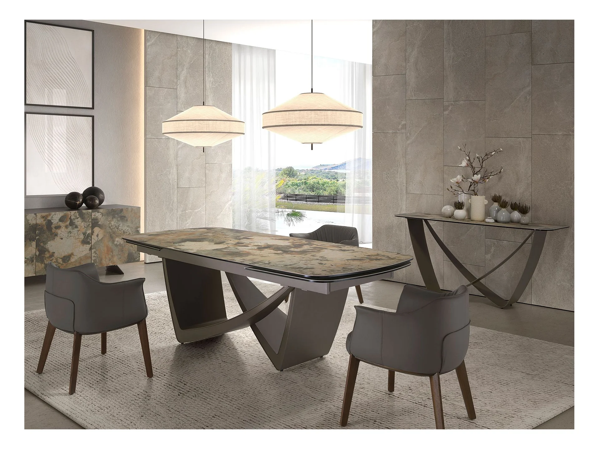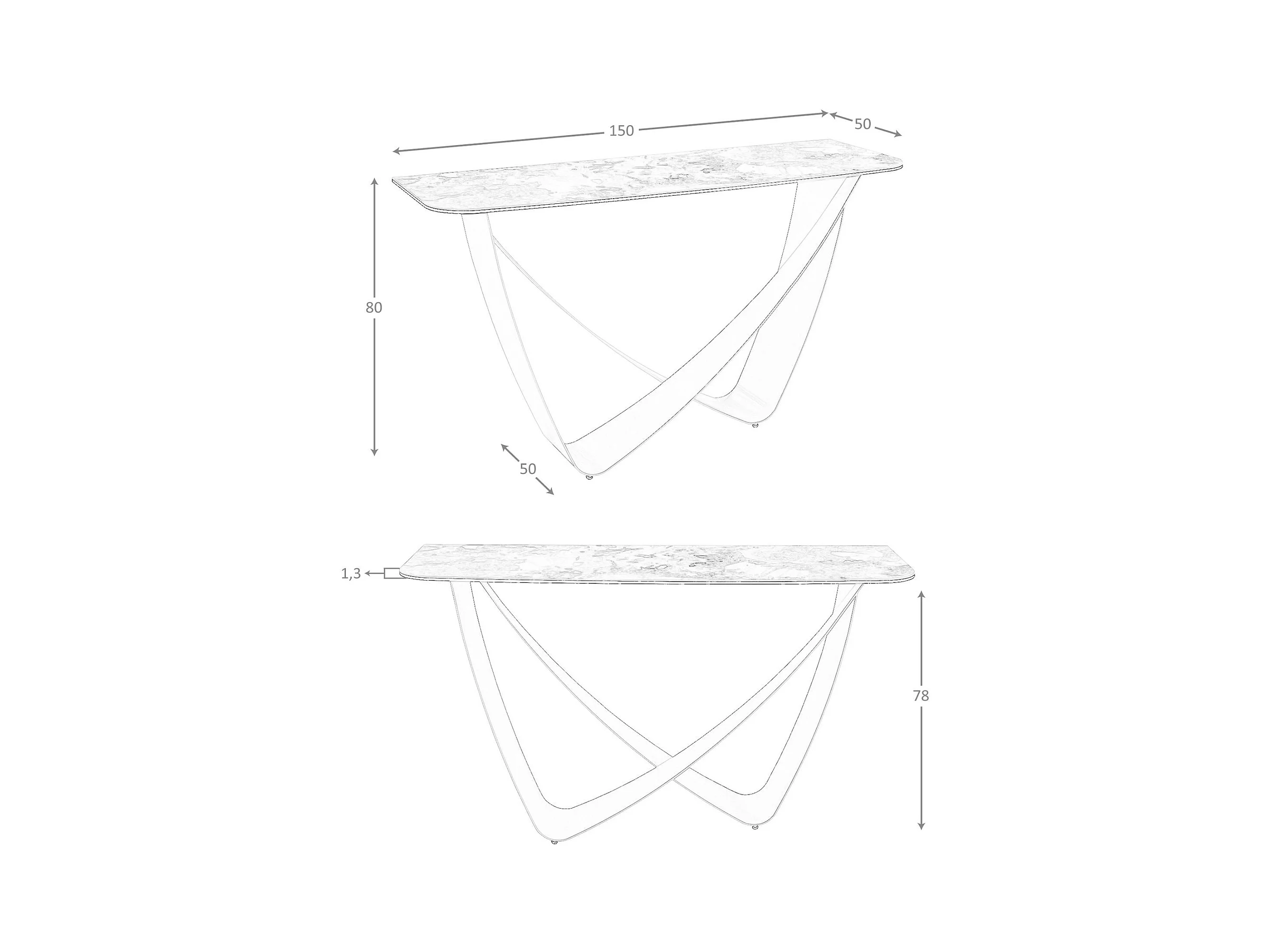 Rechteckiger Konsolentisch aus Porzellanmarmor und taupefarbenem Metallstahl