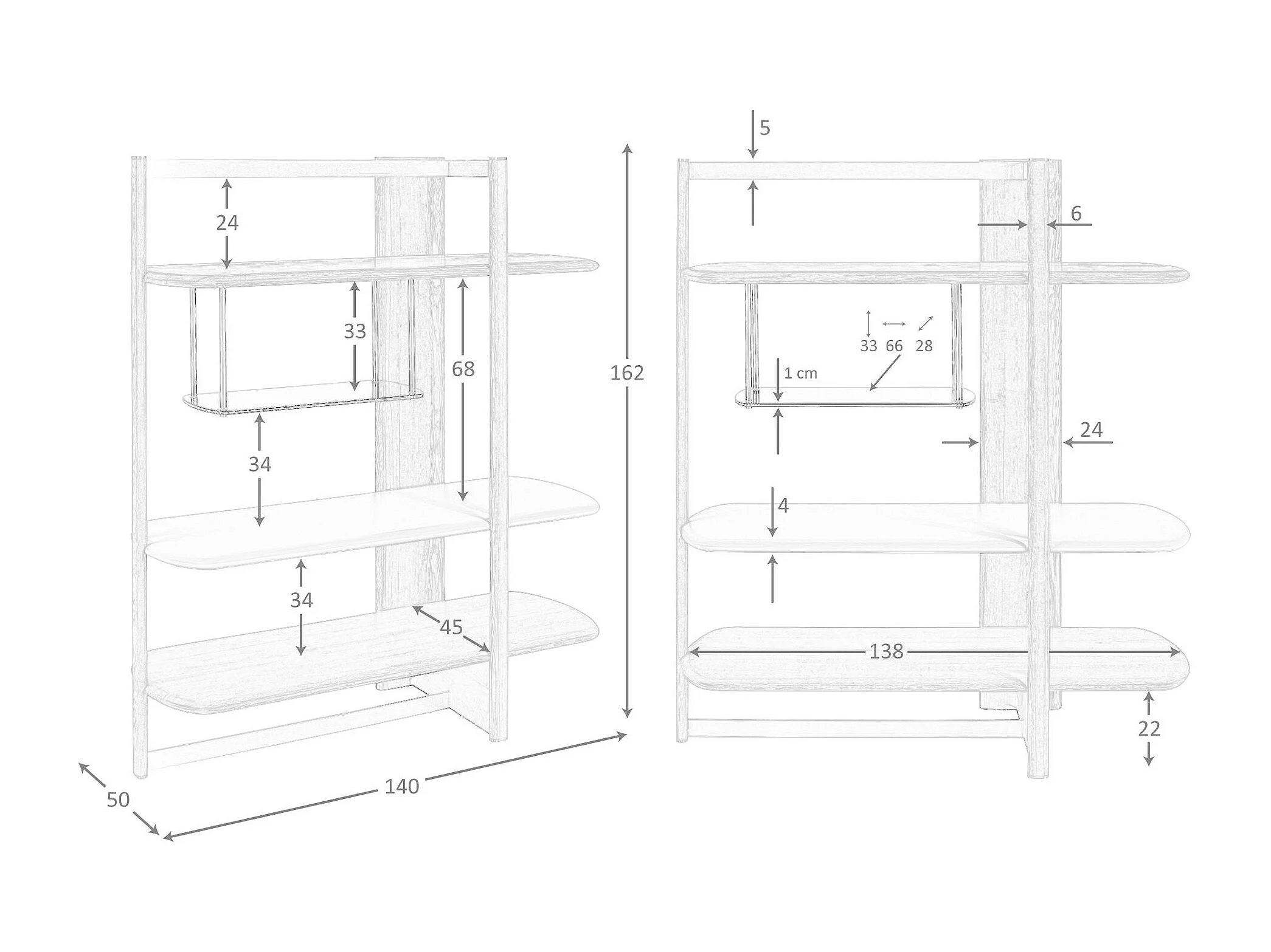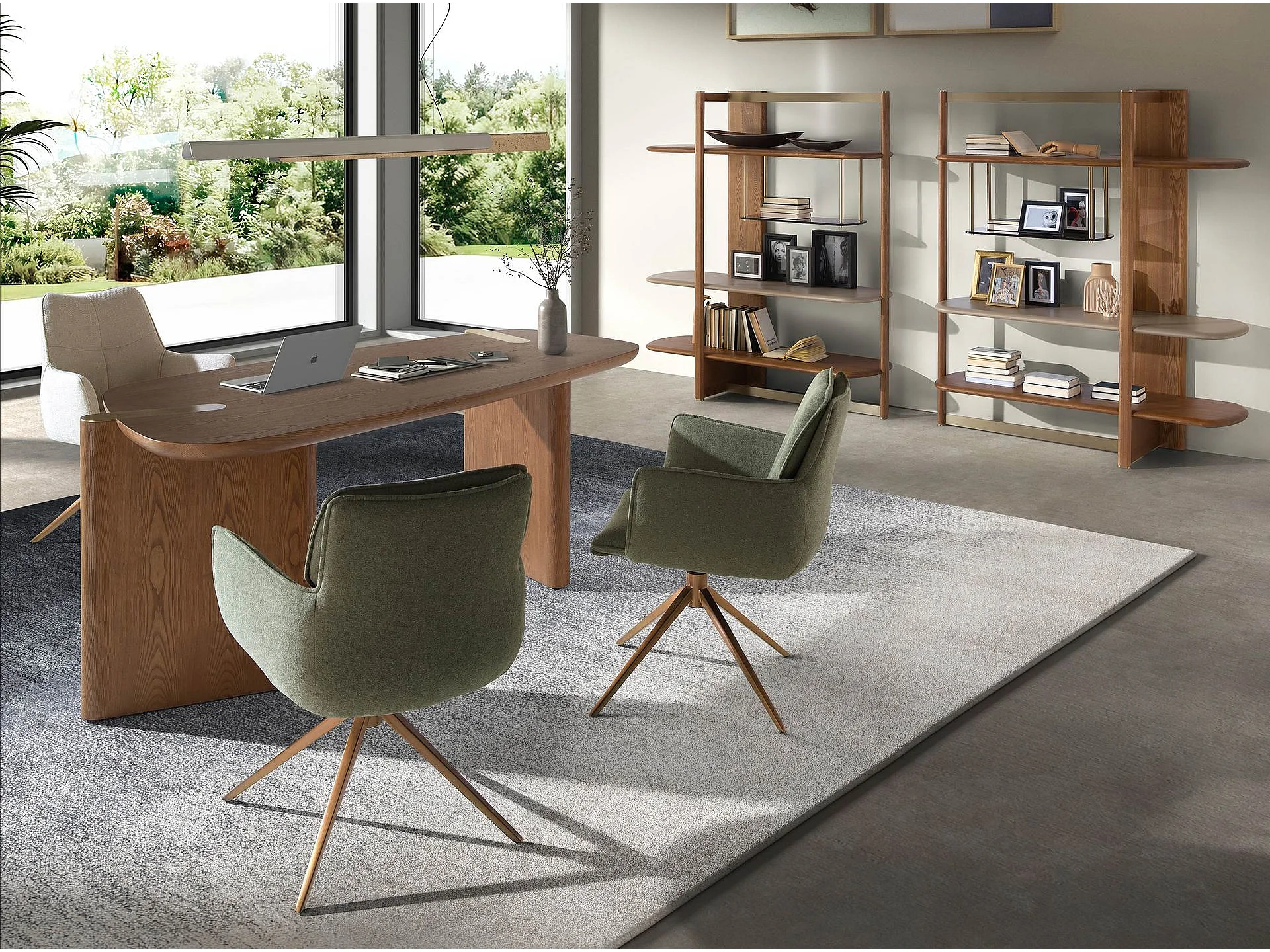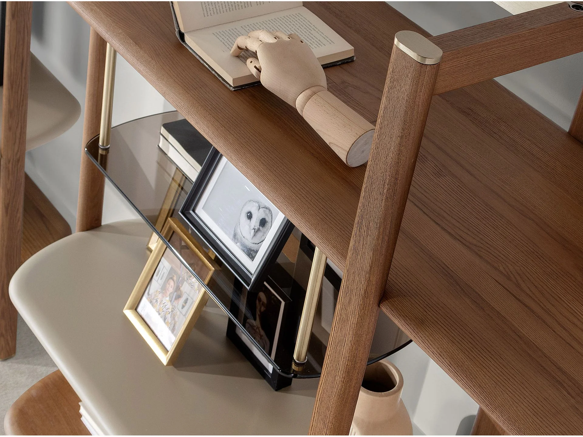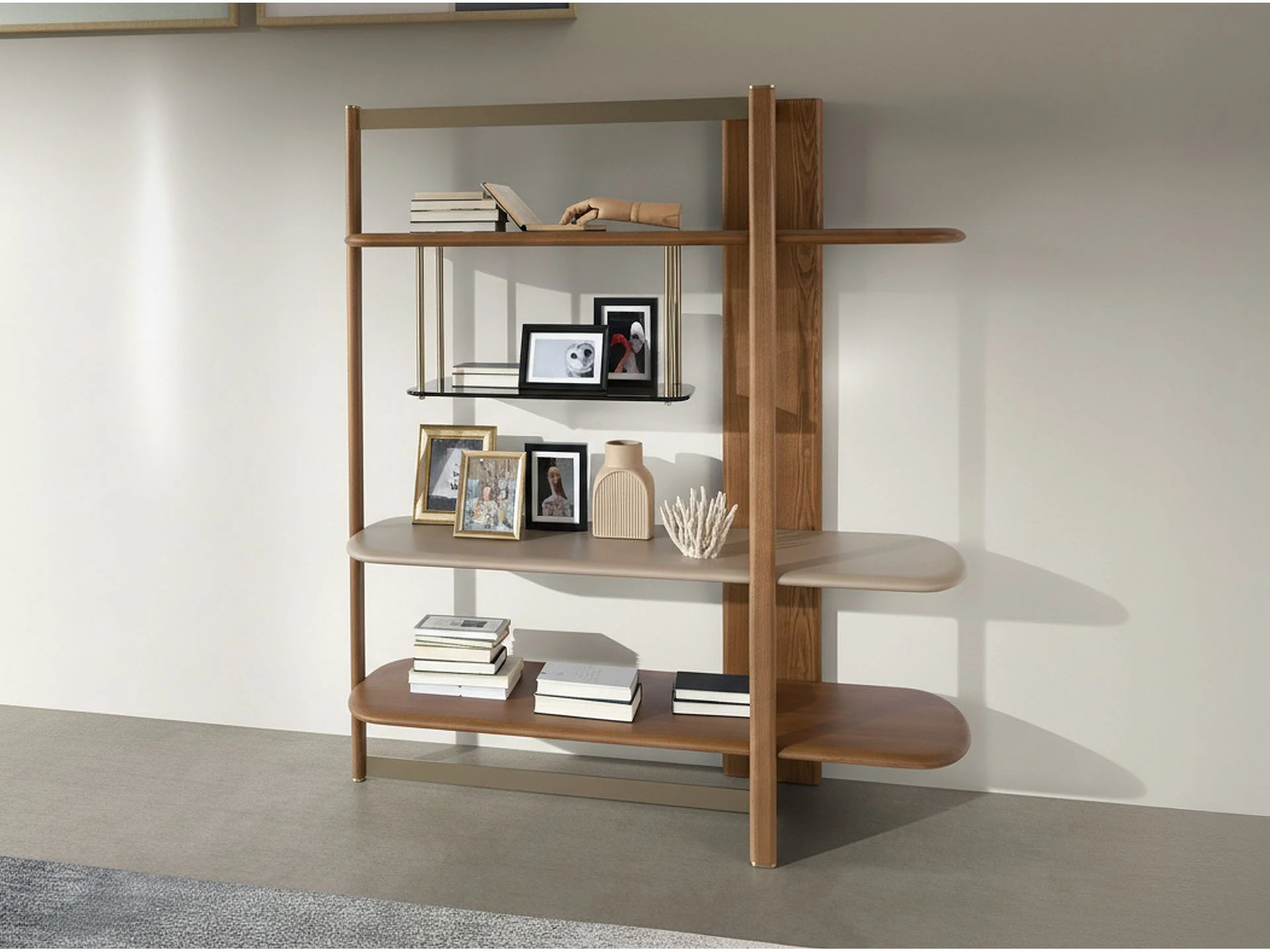 Rechtes rechteckiges Regal aus hellem Nussbaumholz und Holz in Greige-Farbe 3299 ANGEL CERDA
