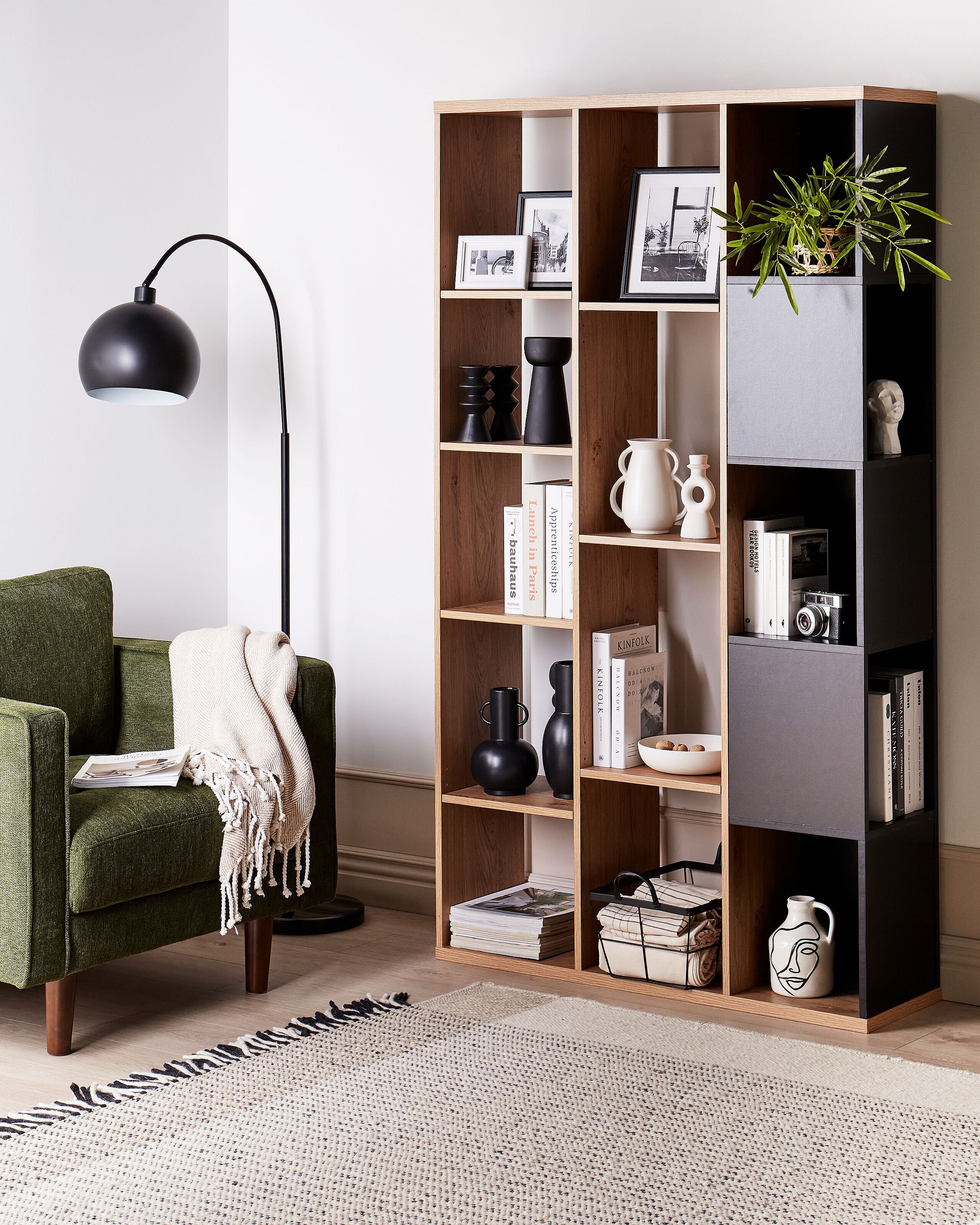 Regal heller Holzfarbton / schwarz 99 x 26 x 175 cm mit 14 Fächern modern Bangor