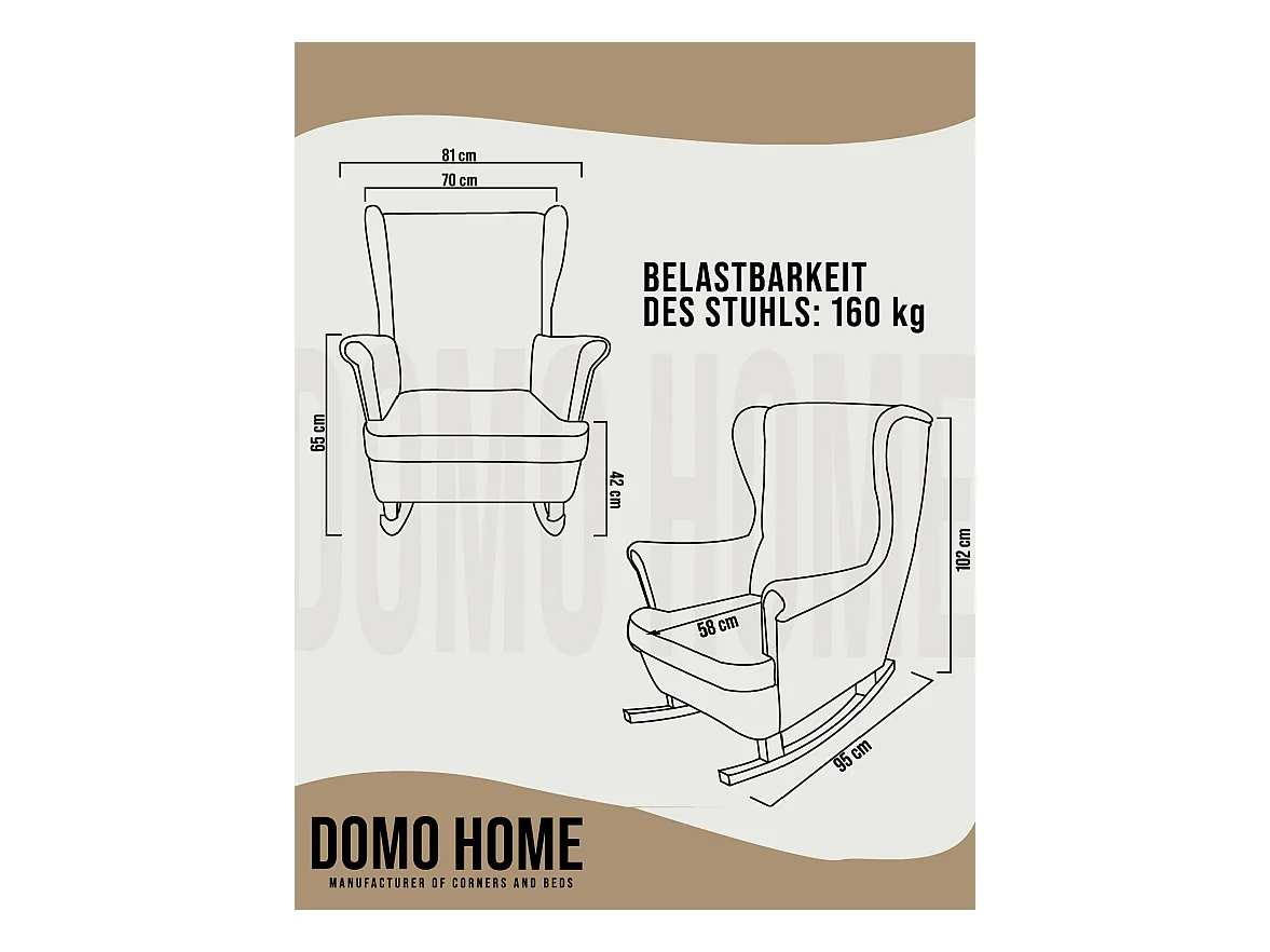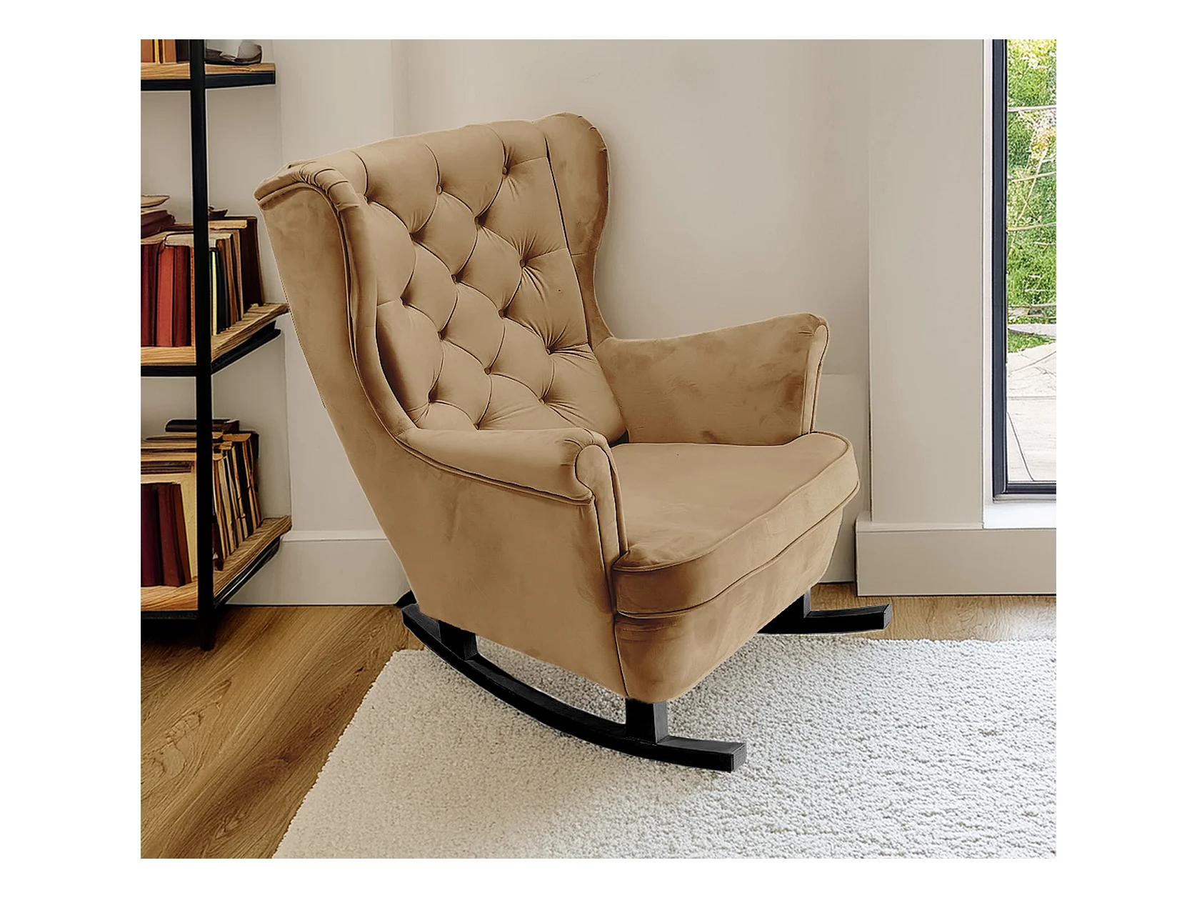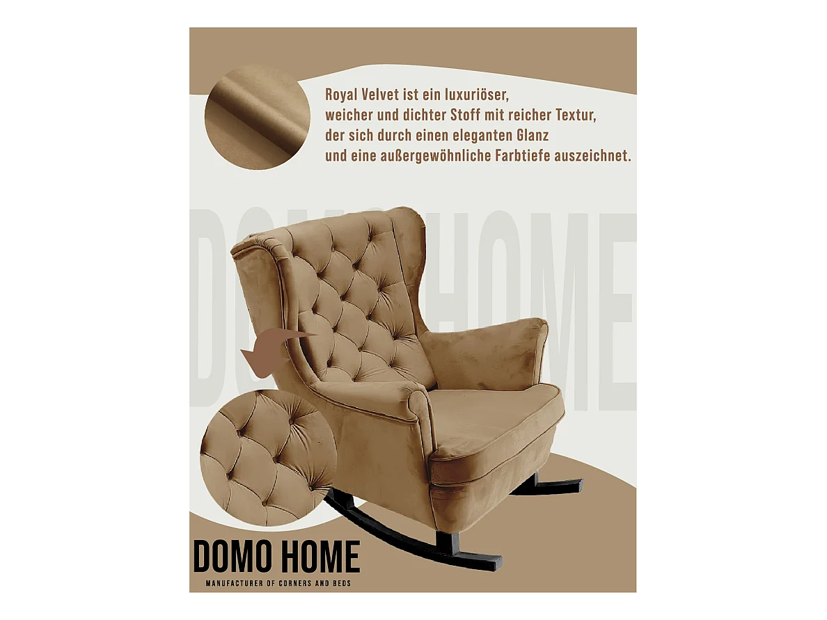 Schaukelstuhl in Samt-Optik, Armlehnen, Sessel mit Holzgleitern