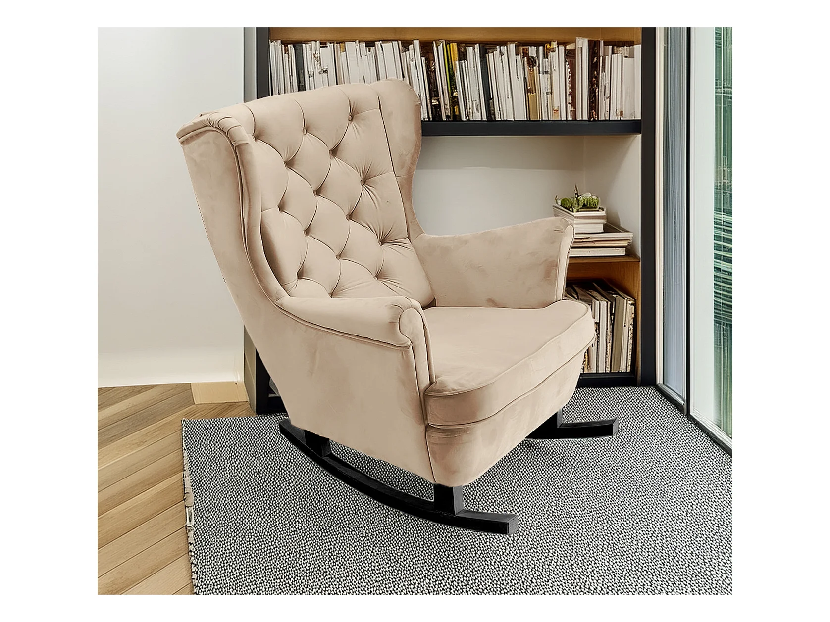 Schaukelstuhl in Samt-Optik, Armlehnen, Sessel mit Holzgleitern