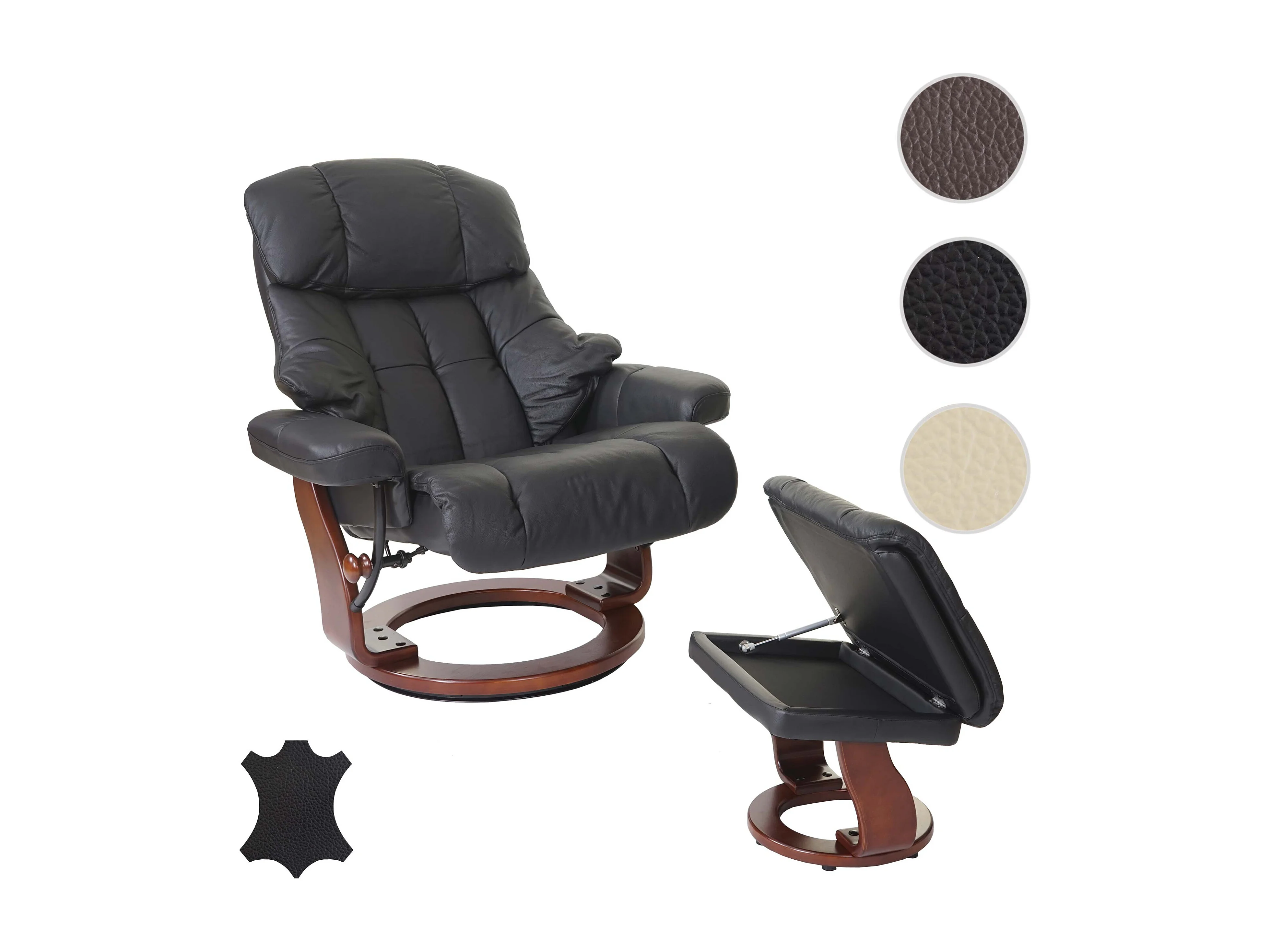 Relaxsessel Windsor XXL mit Hocker, Schwarz, Walnuss-Optik