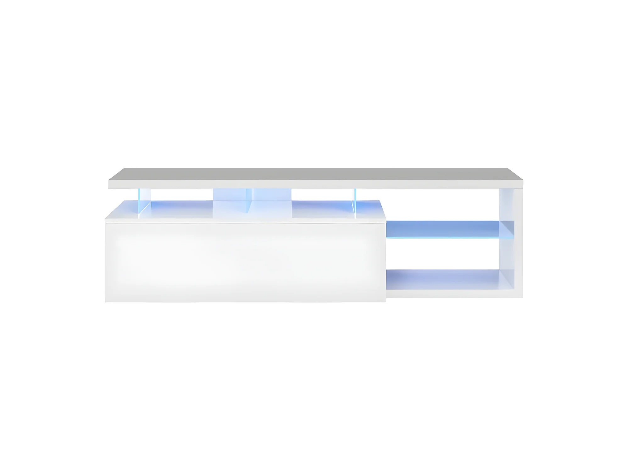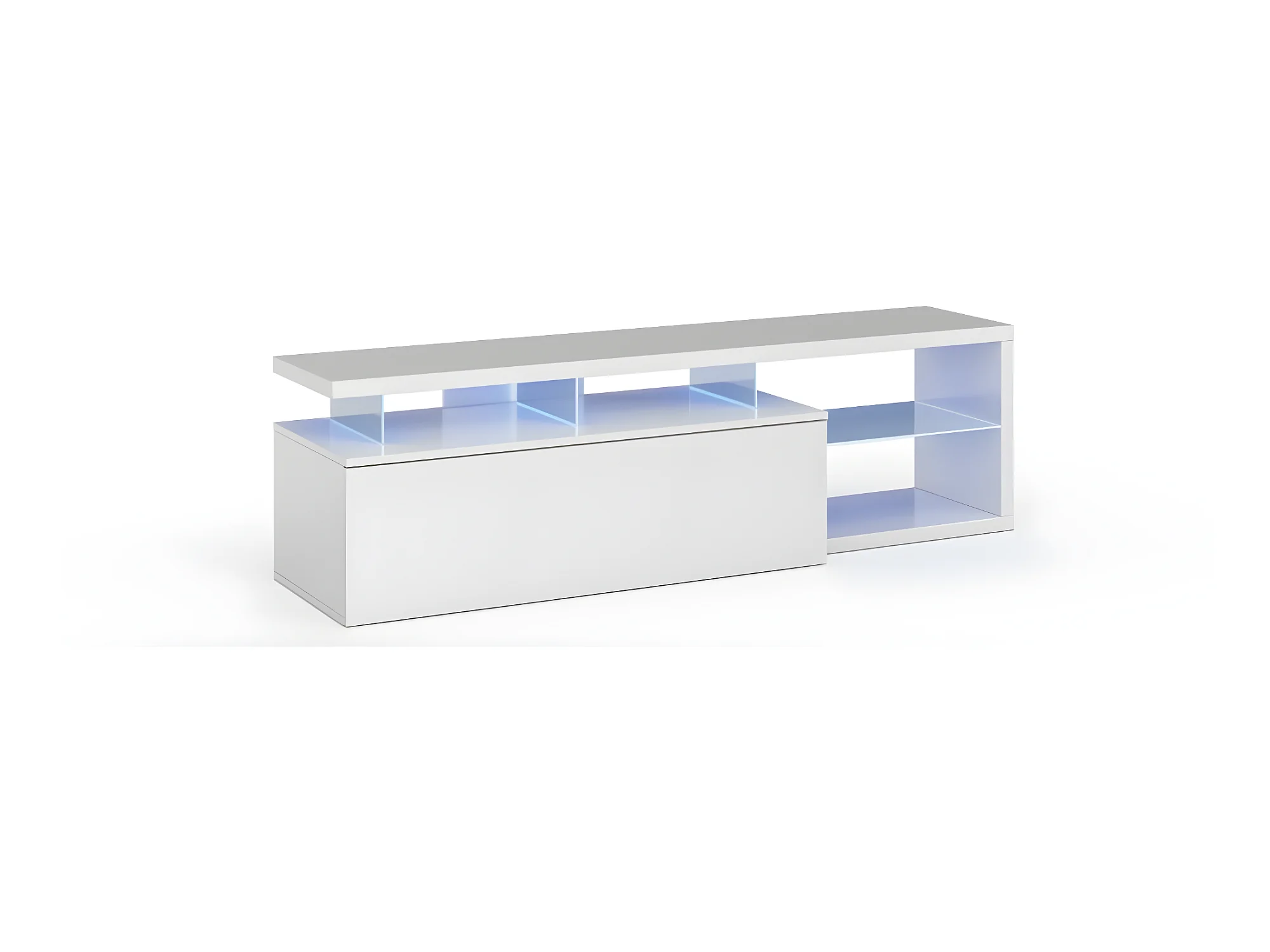 Moderner TV-Schrank mit farbiger LED – geeignet für 70-Zoll-Fernseher – 2 Türen und 3 Einlegeböden – Weiß