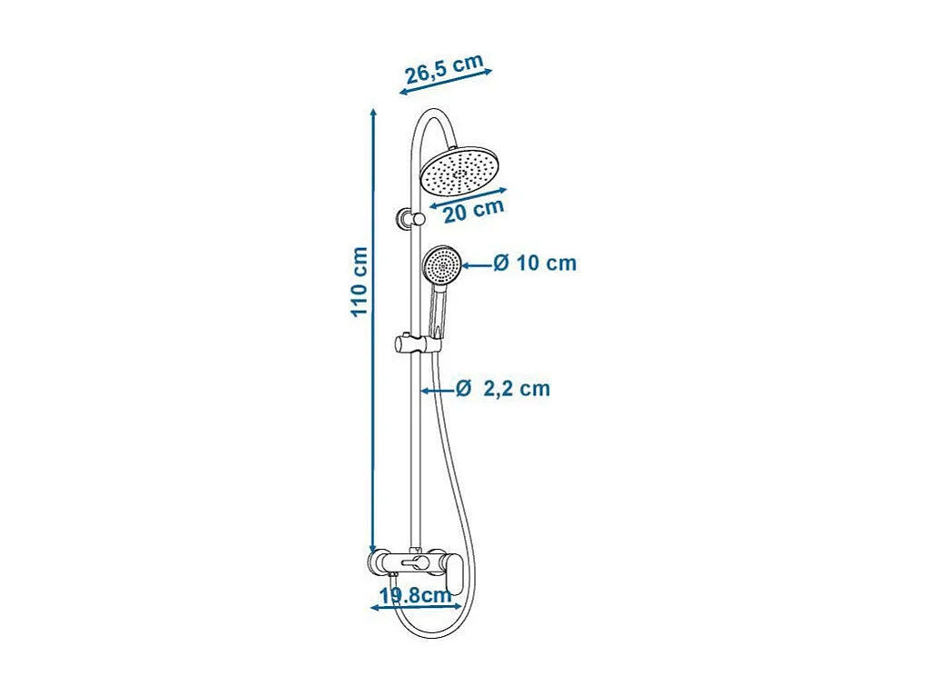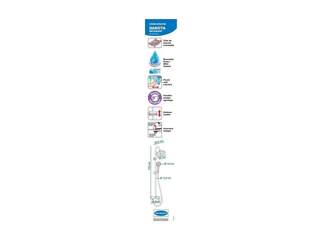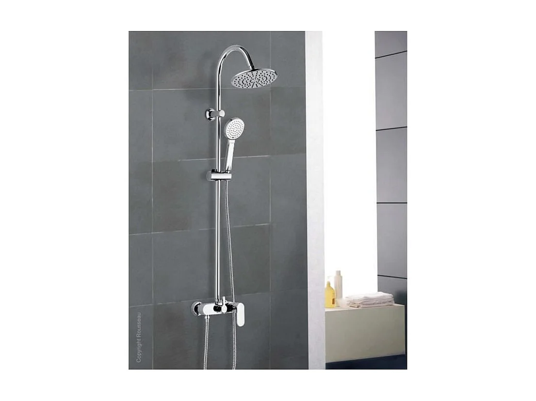 Rousseau Dakota Duschsäule verchromt mit mechanischem Mischventil, runder Kopf 200 mm, Regendusche 100 mm, Venturi-Effekt zur Wassereinsparung