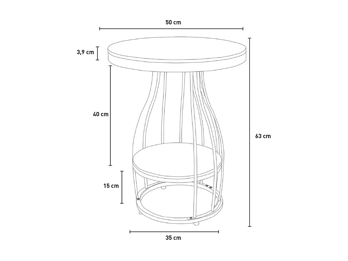 Runder Couchtisch 50x63cm goldschwarzes Metall und Marmor Neep XL - Schwarz