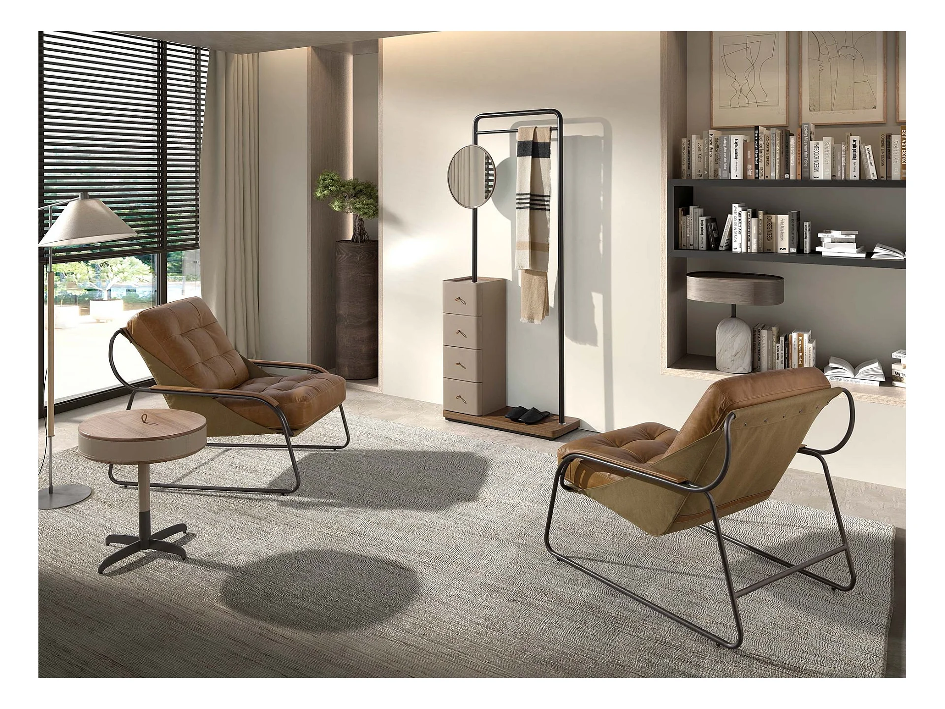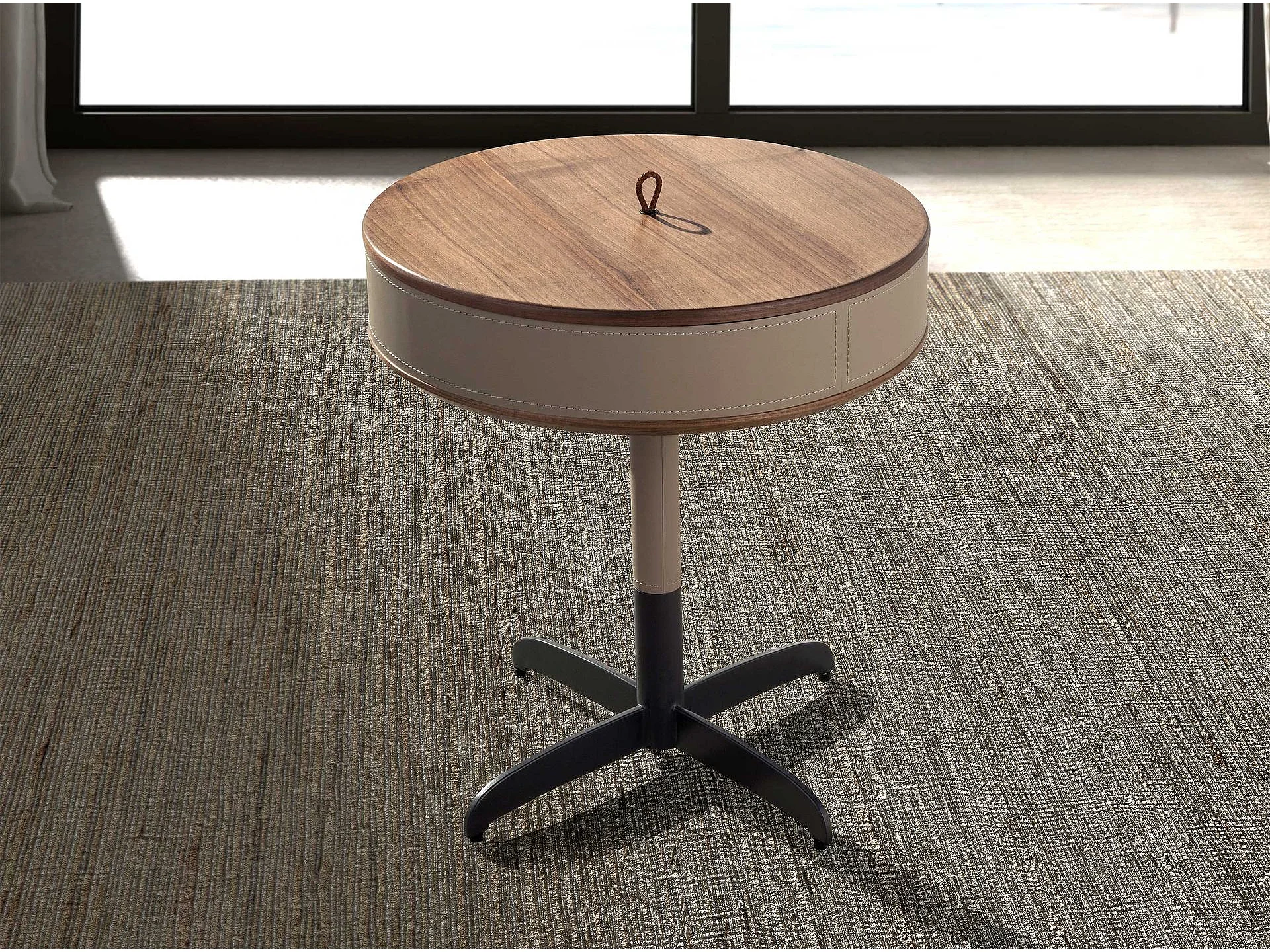 Runder Ecktisch Leder, Nussbaum und grauer Stahl 2156 ANGEL CERDA