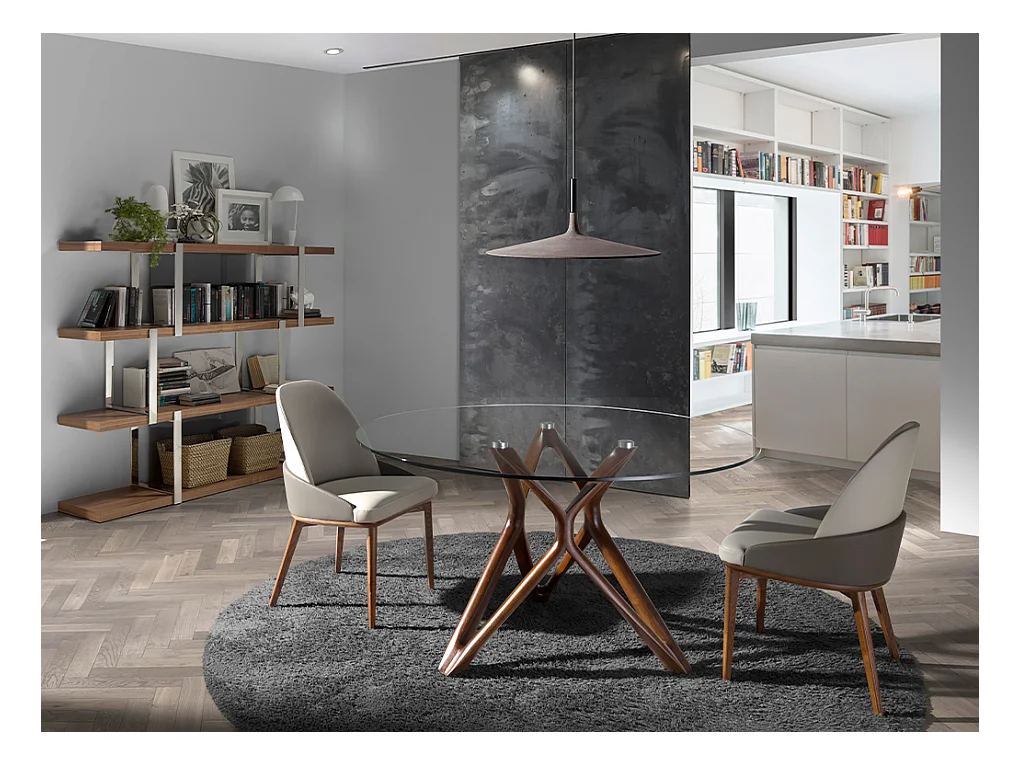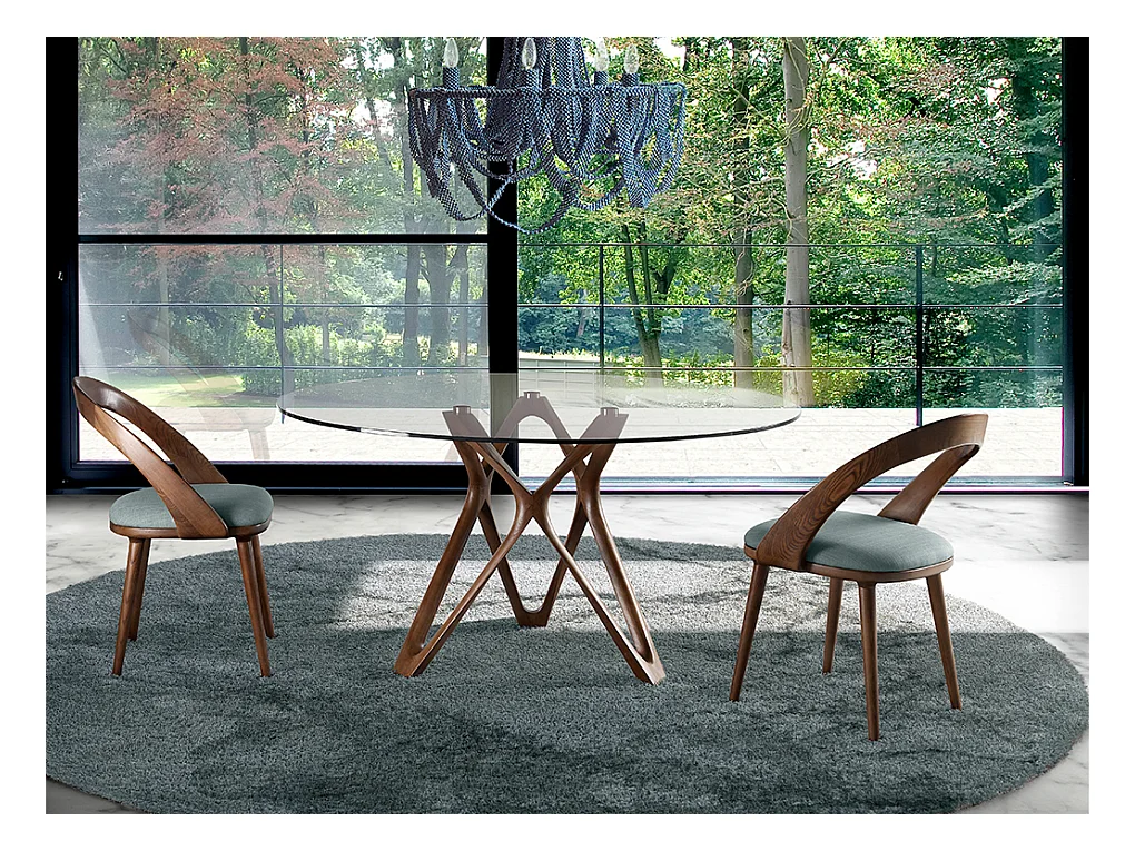 Esstisch runde gehärtetes Glas aus walnussfarbenes Holz 1108-Ø130 ANGEL CERDA