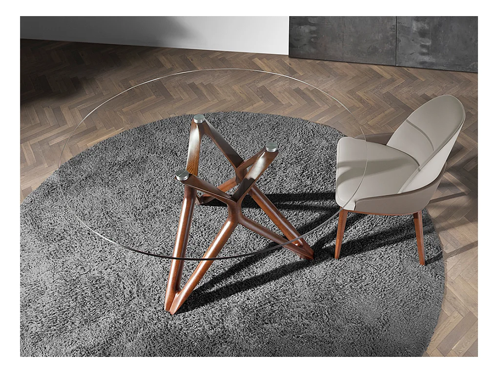 Esstisch runde gehärtetes Glas aus walnussfarbenes Holz 1020-Ø150 ANGEL CERDA