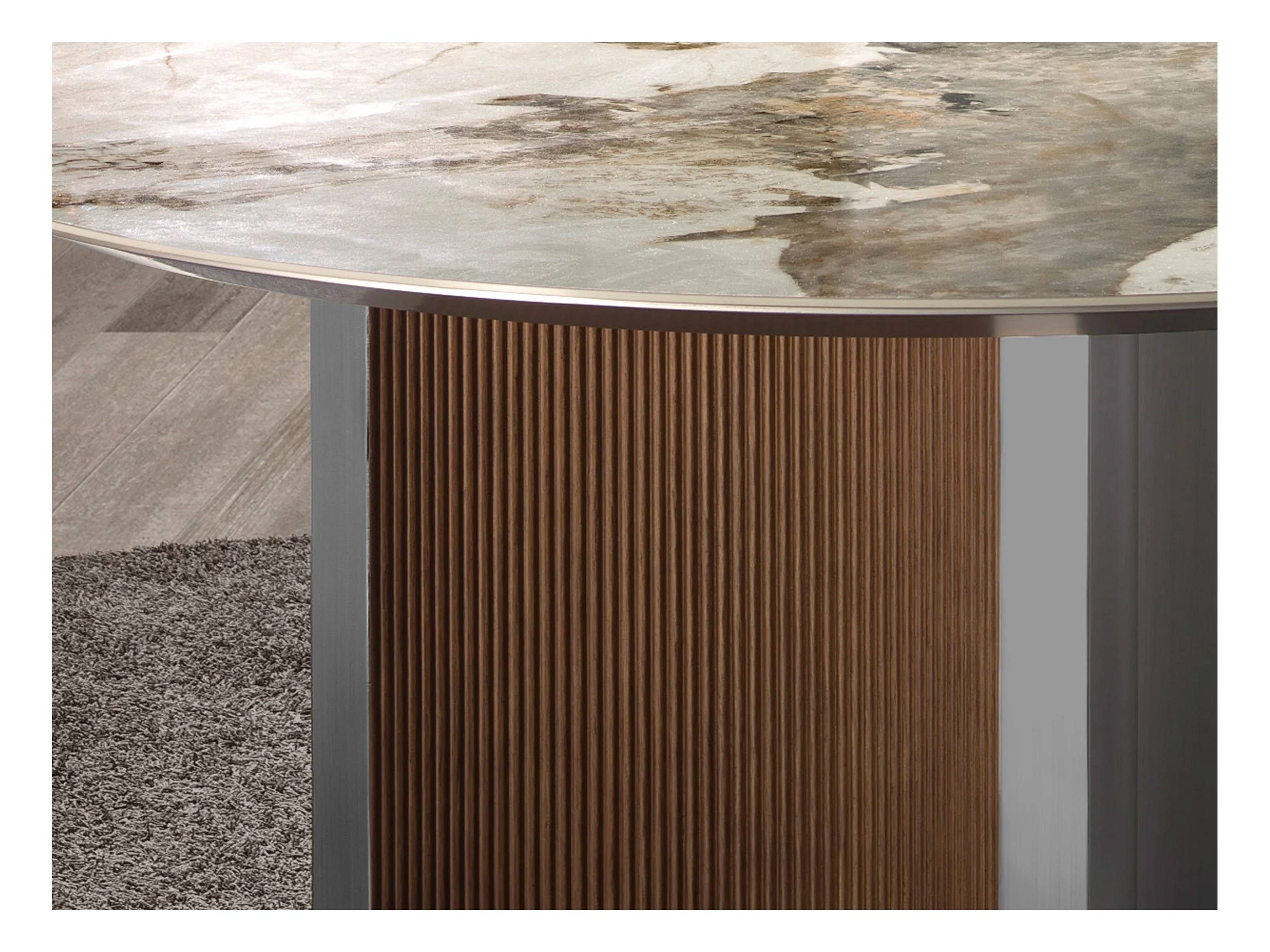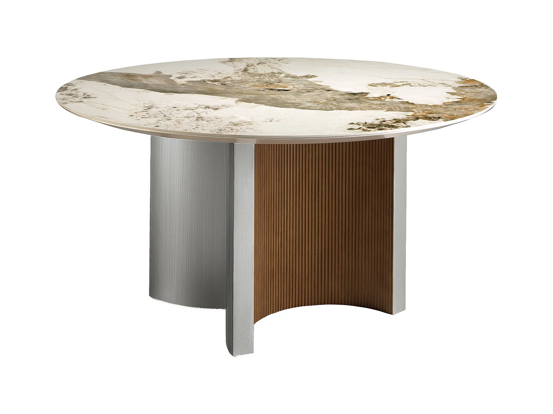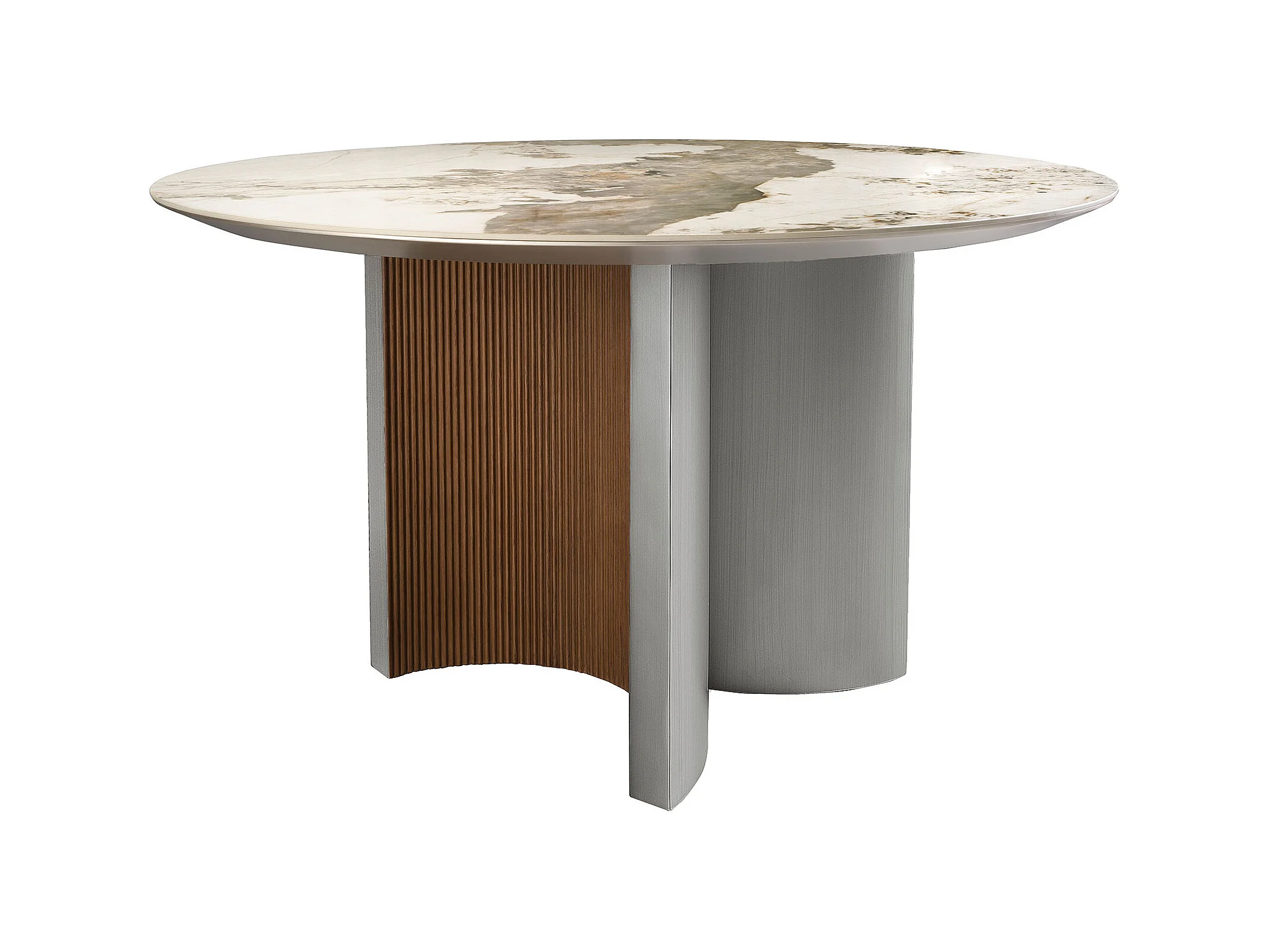 Runder Esstisch aus Porzellanmarmor, Nussbaum und silberfarbenem Holz 1148 ANGEL CERDA