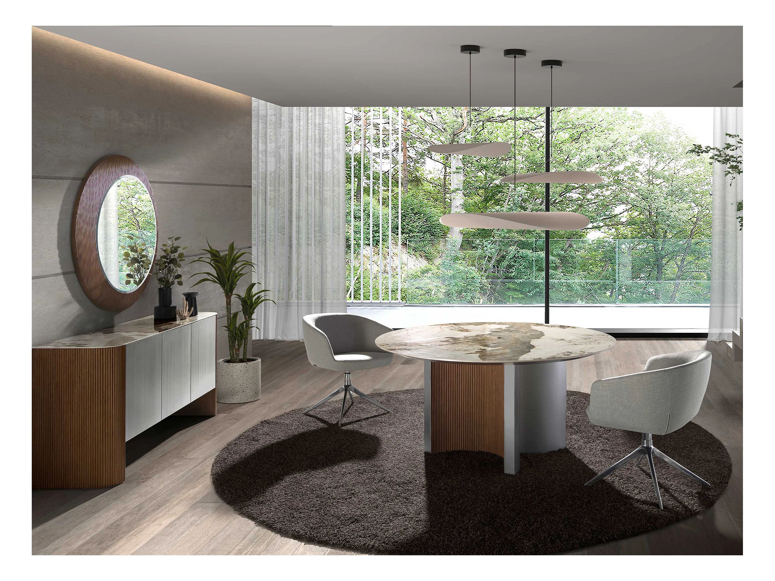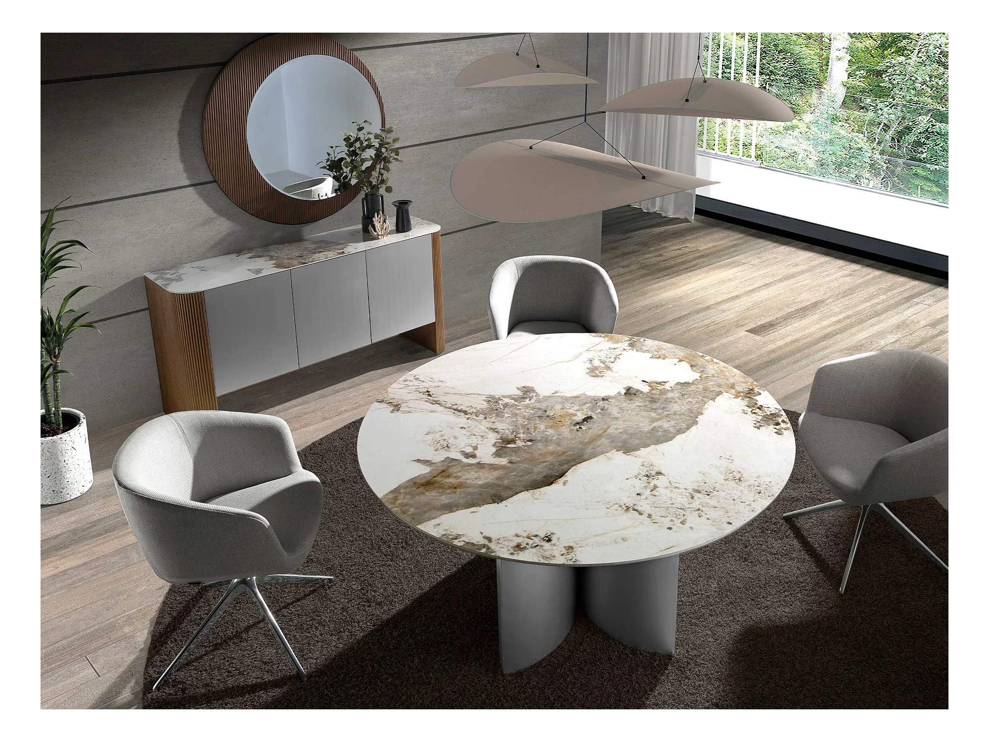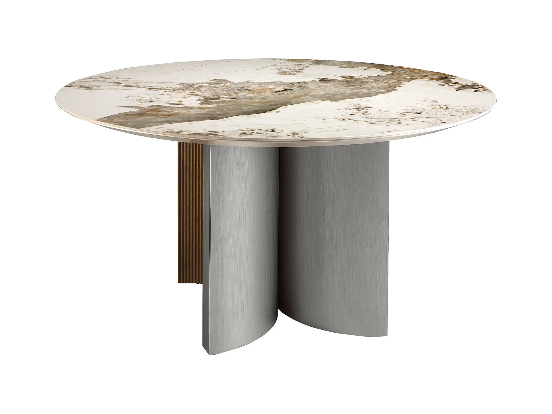 Runder Esstisch aus Porzellanmarmor, Nussbaum und silberfarbenem Holz 1148 ANGEL CERDA
