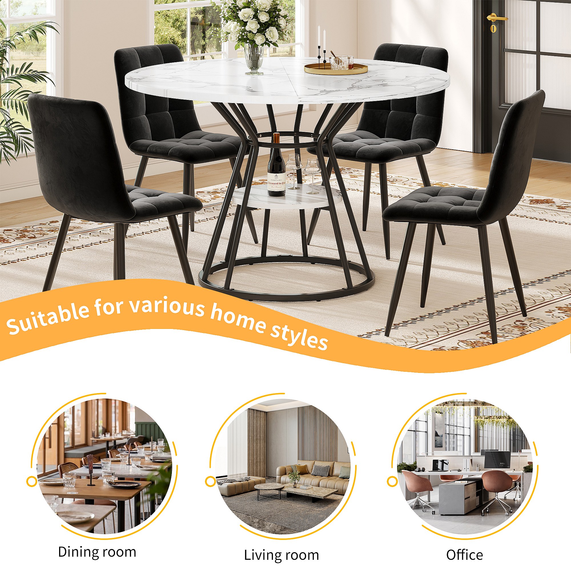 Runder Esstisch - Küchentisch - 100x100x76cm - Metallfüße - Moderner Stil - Marmormuster - schwarz
