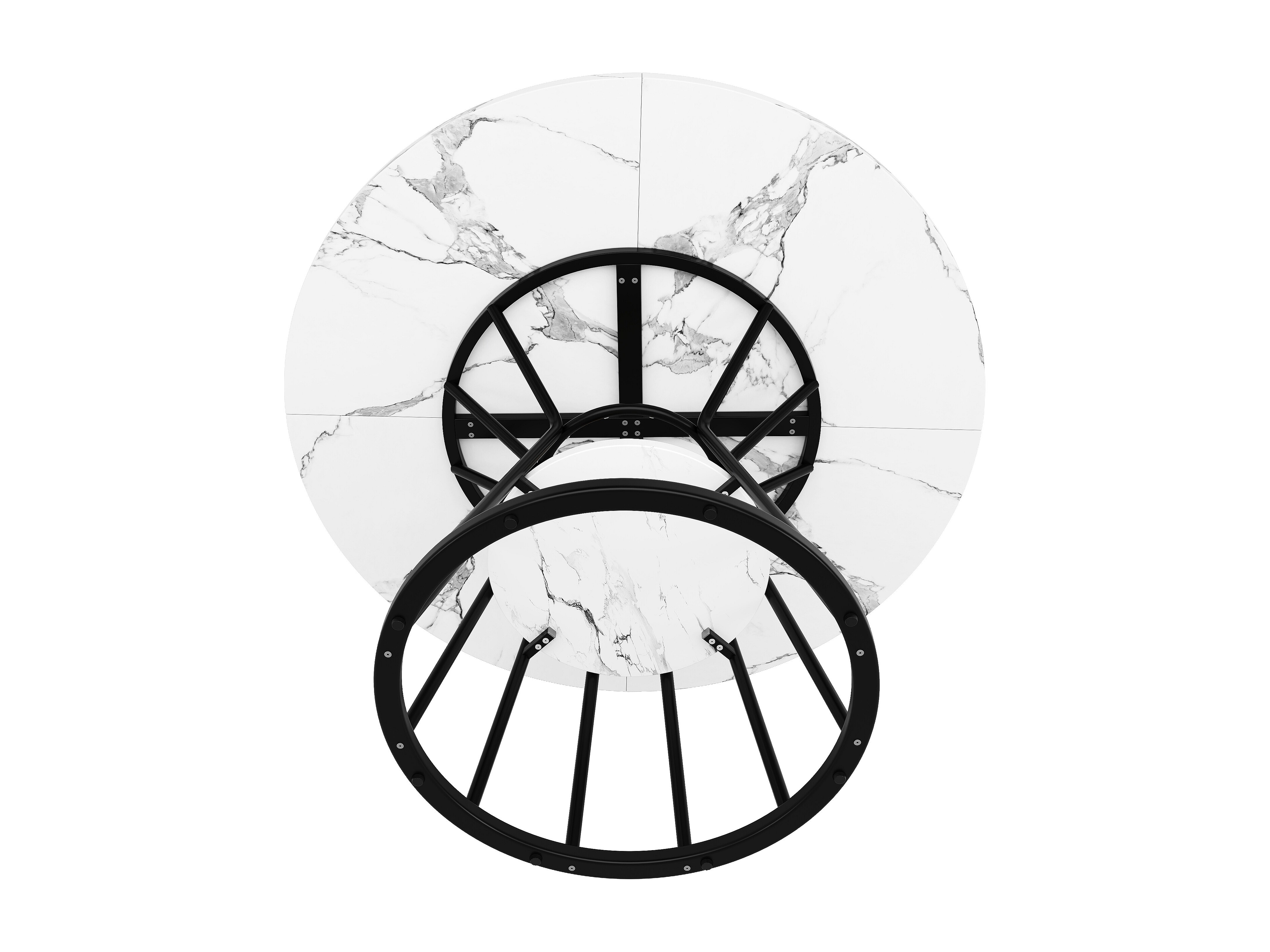 Runder Esstisch 100x100x76 cm - Metallgestell - Marmor-Optik-Furnier - Für 2-6 Personen - Weiß und Schwarz